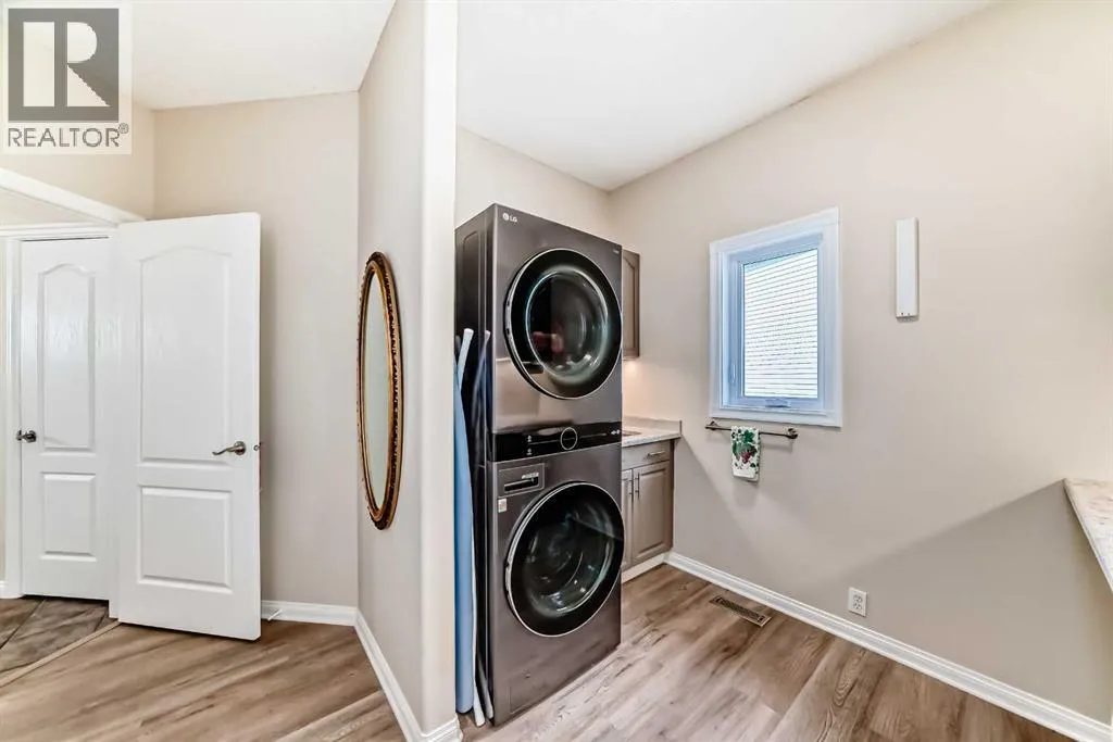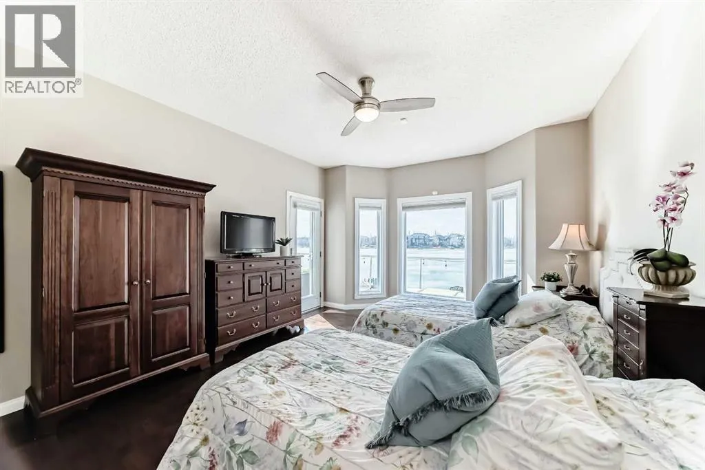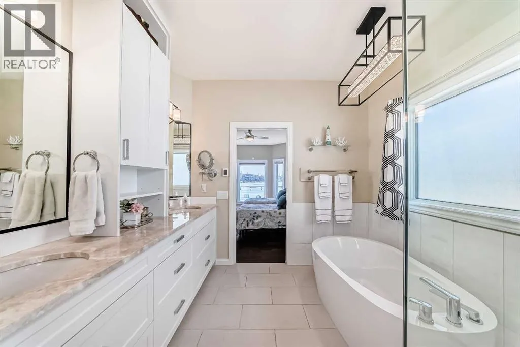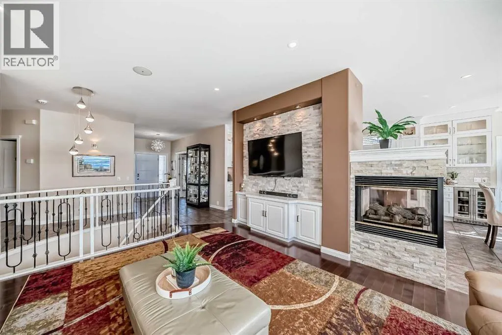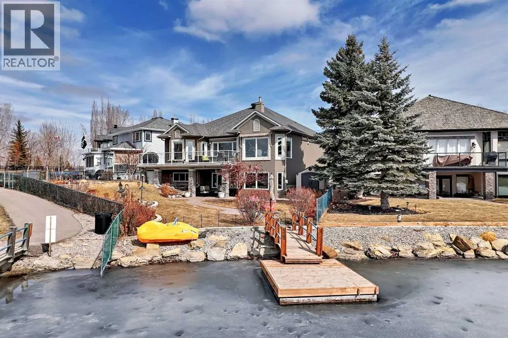 NOTHING BEATS LIVING ON THE LAKE! And this UPDATED, 4 Bdrm (1+3) WALKOUT BUNGALOW with over 3300 ft2 of living space is situated on one of THE MOST COVETED, 'SUNSET' facing lots in Lake Chaparral. Â Island Kitchen was completely renovated by 'MERIT KITCHENS CALGARY' (2022): White quartz countertops and contemporary white cabinets (stainless handles) w/ glass inserts and accent/undermount lighting, glossy subway tile, stainless steel appliance package (Induction stove, Miele warming oven + DW, wine fridge, extendible hood fan), pot lighting & pendulum lights all w/ dimmers. Â There is even extra cabinetry with matching quartz countertop and shelving in the walk-in pantry. Drawers in all lower cabinets. Kitchen nook has 3-sided fireplace with large windows overlooking the lake. Â Large open family room has hardwood flooring and rock accent wall. Â SW facing raised deck (28 feet long) with Electronic Awnings (2023) overlooking the lake is accessible from nook and primary bedroom (2 natural gas outlets). Â Main floor den and formal Dining Room with French doors. Â Ensuite bathroom was TAKEN DOWN TO THE STUDS and renovated (2023): heated flooring, Marble countertops, his/her sinks, lower cabinets all drawers, glass tiled shower stall with rain shower head, floating soaker tub (plumbed underneath) with chandelier & walk-in closet w motion sensor light (separate WC). Â Laundry room has new vinyl flooring, LG stacked W+D and laundry sink. Â ALL WEST FACING WINDOWS UP AND DOWN were recently replaced -- THEY ARE ALL TRIPLE PANED. Â Walkout basement has 3 bedrooms and 2 full baths (one with new shower stall and heated flooring). Â Large Games Room down has corner wet bar with cabinetry, full sized fridge, dishwasher and microwave -- handy for entertaining. Â Private, professionally landscaped pie-shaped back yard with brick patio/pathway (ALL RELAID IN 2023) and rebuilt PRIVATE DOCK (2022). Â OVERSIZED Double attached front garage (25'6"x22'3") has suspended storage racks and work bench . Â Other notable upgrades include: Newer roof installed with R50 insulation (sound proofed) & Hail resistant shingles (2022), carpet and new vinyl plank flooring installed downstairs (2022), Storage shed replaced (2022), New 50-gallon hot water tank (2025), New steel enforced door. (2023). New steel doors with double paned windows to deck and patio. Â This home has central AIR CONDITIONING and ALL POLY-B has been removed. Floor plans and RPR are in supplements. COME OUT THIS EASTER HOLIDAY WEEKEND and visit our OPEN HOUSES (held on Fri/Sat, April 3rd + 4th, 2-4PM). (id:27476)