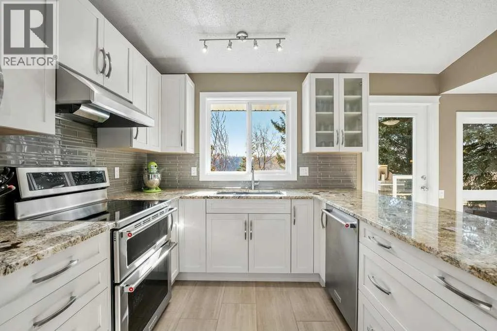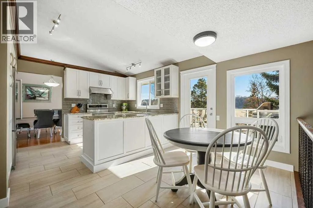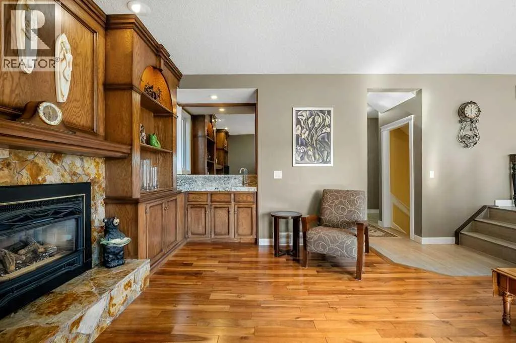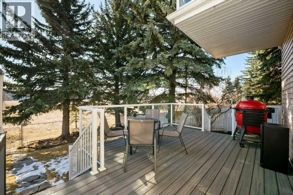 Welcome to this beautifully maintained and extensively updated home backing directly onto the natural beauty of Fish Creek Provincial Park in the Estates of Deer Runâoffering a rare blend of privacy, space, and everyday connection to nature. With pathways just steps from your backyard, a 10 min walk to the Bow River enjoy an exceptional outdoor lifestyle in one of Calgaryâs most sought-after settings.From the moment you arrive, the homes curb appeal stands out with vinyl siding, stone accents, and a double attached 22x22 insulated and drywalled garage. Inside, a vaulted front entry creates a bright and welcoming introduction, leading into a main floor finished with rich engineered hardwood flooring throughout the home.The front living room features a large bay window that fills the space with natural light, while the adjacent dining room is perfect for hosting. The updated kitchen (2016) is the heart of the home, showcasing white Legacy cabinetry with soft-close features and pull-outs, granite countertops, tiled backsplash, under-mount sil granite sink, and a KitchenAid appliance package including a French door fridge, dishwasher, and slide-in dual oven. A sunny breakfast nook overlooks the backyard with direct access to the deck.The sunken family room offers a cozy retreat with gas fireplace, Â a wet bar with granite countertopâideal for entertaining and a convenient patio door to your outdoor deck. A private office with original storage built-ins, a 2-piece bathroom, and a functional mudroom/laundry area off the garage complete the main floor.Upstairs features three spacious bedrooms, including a large rear primary retreat with engineered flooring, gas fireplace with stone surround, tinted patio doors to a private upper Dura deck to sit back and enjoy your views. Dual walk-through closets lead to the refreshed 3-piece en-suite bath. Two front facing kid's bedrooms offer ample space and sliding door closets which are located beside the upper 4-piece bathroom . Both bathrooms were updated in 2017 including composite marble countertops, skylights, modern vanities, and tiled surrounds.The developed basement adds versatility with a large recreation room featuring built-in bookcases, a second wet bar, a full 3-piece bathroom, and extensive storage.Step outside to your private backyard oasis backing onto Fish Creek Park. Enjoy the two-tier composite Trex deck with glass railing, natural gas hookup, and garden sinkâperfect for outdoor living. Multiple access points create seamless indoor-outdoor flow, while pathways connect you directly to the park.Additional features include asphalt shingles (2015), vinyl windows, no Poly-B plumbing, no aluminum wiring, central vacuum, and a dual-zone forced air system.A rare opportunity to own a spacious, upgraded home in an unbeatable locationâdonât miss out! (id:27476)