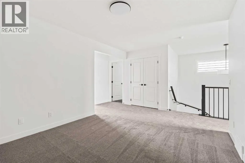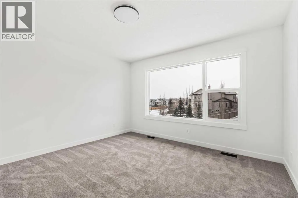 Welcome to 215 Silver Spruce Grove SW - a beautifully designed, brand-new home by Brookfield Residential, located in the desirable community of Silverado. Offering nearly 2,000 sq. ft. of thoughtfully planned living space above grade, this 4-bedroom, 3.5-bathroom Rundle 24 Prairie model features a fully developed walkout basement and a double attached garage, delivering the perfect blend of style, space, and functionality. The main floor welcomes you with a bright, open-concept layout designed for both everyday living and entertaining. At the heart of the home is a gourmet kitchen, complete with built-in oven and microwave, gas cooktop, chimney hood fan, upgraded fridge, and sleek quartz countertops throughout. An undermount Silgranite sink with a matte black Moen faucet adds a modern touch, while the walk-through pantry connecting to the mudroom enhances convenience. The kitchen flows seamlessly into the dining area and great room, where an electric ribbon fireplace and added pot lighting create a warm, inviting atmosphere. Elegant spindle railing adds architectural interest and guides to the second level. Upstairs, a spacious bonus room provides a functional separation between the primary suite and secondary bedrooms. The primary retreat features a walk-in closet and a well-appointed 5-piece ensuite with dual sinks, a fully tiled shower with niche, and a private water closet. Two additional bedrooms, a full 4-piece bathroom, and an upper-level laundry room - complete with washer and dryer - round out the upper floor, along with a convenient pocket door connecting the primary closet to the laundry. The fully developed walkout basement expands your living space with 9â foundation wall, a large recreation area, an additional bedroom, and a 4-piece bathroom - ideal for guests or multi-generational living. Outside, the home truly stands out with its rare setting - backing directly onto green space while also fronting green space for added privacy and serene views. The south-facing backyard is perfect for enjoying all-day sun, and the rear balcony is equipped with a gas line for your BBQ, making it ideal for entertaining or relaxing summer evenings. Located close to parks, schools, shopping, and major routes, this Silverado home offers comfort, convenience, and elevated design throughout. Both Builder Warranty and Alberta New Home Warranty are included, allowing you to purchase with confidence and peace of mind. Buy now and be settled right away into your brand new home! (id:27476)