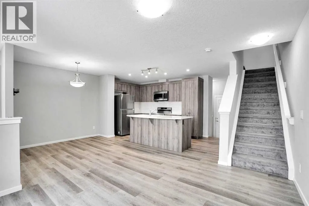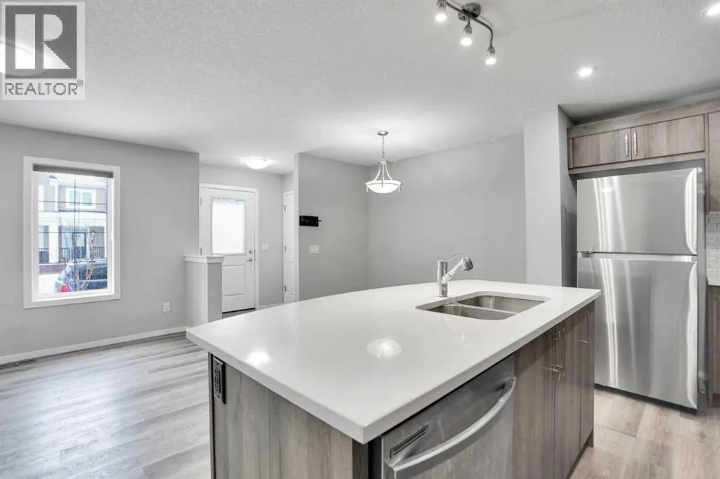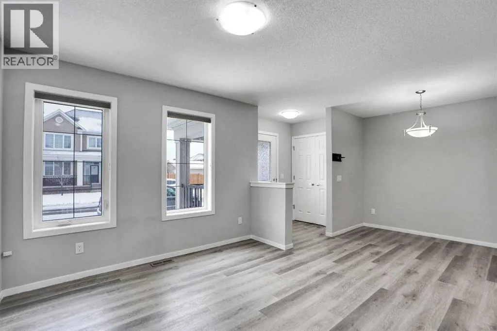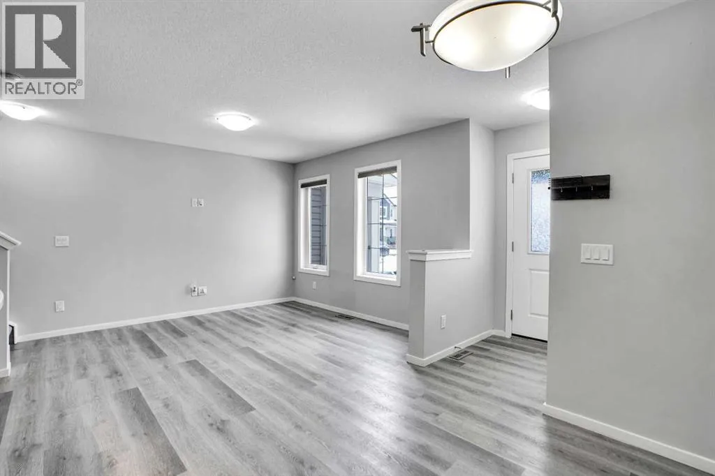 Welcome to this beautiful no-condo-fee townhouse, ideally located within walking distance to playgrounds, shopping, and more in the amenity-rich community of Cityscape. Featuring a double attached garage and no condo fees, this home offers both value and convenience. The bright and spacious main floor showcases a large living area with expansive windows, a separate dining space, and a well-appointed kitchen complete with an island. Youâll also find a 2-piece bathroom and a mudroom with direct access to the rear-attached garage. Upstairs, the home offers three generously sized bedrooms, two full bathrooms, a convenient laundry area, and a large balcony. The primary suite features a walk-in closet and a 4-piece ensuite. The unfinished basement provides endless potential for your future development ideas. Enjoy the convenience of nearby grocery stores, gas stations, pizza shops, and the vibrant shopping district. This home offers not just comfort, but a lifestyle in a warm and welcoming community. Some pictures are virtually stages. Donât miss outâthis one wonât last long! Book your private showing today. (id:27476)