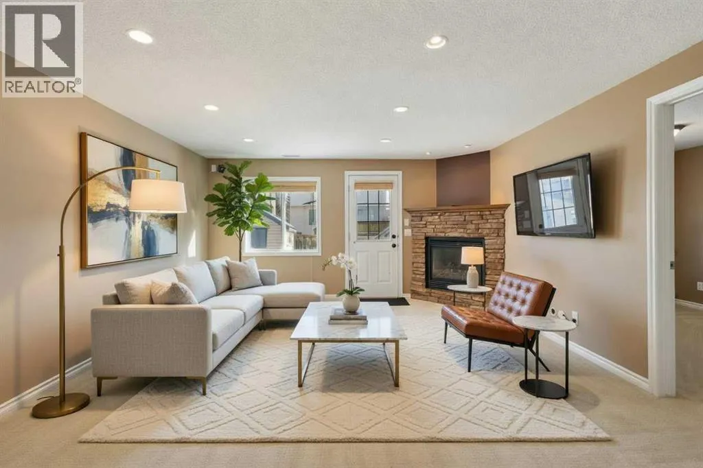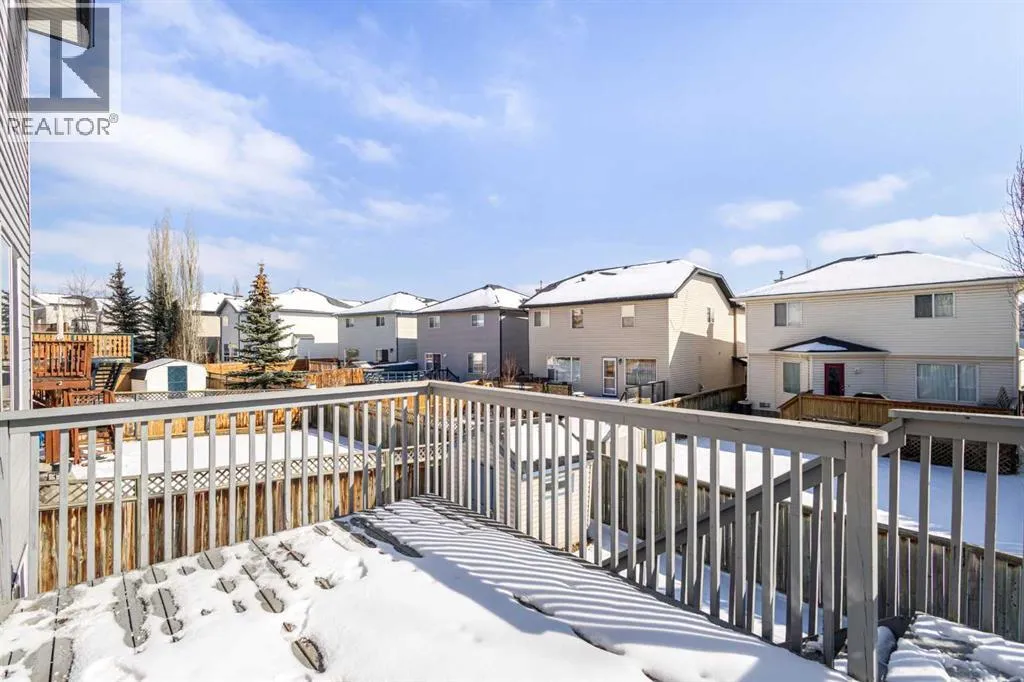 Fully finished walkout basement with a spacious recreation room, gas fireplace, full bathroom with heated tile floors, and a fourth bedroom. This home offers over 2,300 sq ft of total developed living space, with a total of 4 bedrooms, 3.5 bathrooms, and central A/C for year-round comfort.The main floor features a bright and inviting family room, a dedicated dining area, and a well-appointed kitchen complete with stainless steel appliances, an upgraded sink, eat-up bar, and a convenient walkthrough pantry. Large windows fill the living room with natural light, centered around a cozy gas fireplace, with direct access to the upper deck. A versatile den provides the perfect space for a home office or homework area, while the back entrance includes a laundry room and a 2-piece bathroom.Upstairs, youâll find three generously sized bedrooms and a full 4-piece bathroom. The spacious primary retreat easily accommodates a king-sized bed and features a walk-in closet along with a private 4-piece ensuite complete with a relaxing soaker tub.The walkout basement is fully developed and adds incredible flexibility with a large recreation room, gas fireplace, fourth bedroom, full bathroom with heated tile flooring, and additional storage space â ideal for guests or extended family.The exterior offers a mature, private yard with trees, a shed, an upper deck with gas line for BBQ, and a lower deck accessible from the walkout level. The insulated and drywalled double attached garage is roughed-in for a sink and features a painted floor.Additional updates include central air conditioning and a mid-efficiency furnace (2016), as well as siding and shingles replaced in 2016/2017.Located in a well-established, family-friendly neighborhood, this home offers convenient access to schools including Citadel Park and St. Brigid, nearby parks, and major shopping at Crowfoot Crossing. With quick connections to Stoney Trail, Sarcee Trail, and Country Hills Boulevard, commuting is easy. This is a fantastic opportunity to own a move-in ready home in a highly desirable community. Check out the virtual tour to experience it for yourself. (id:27476)