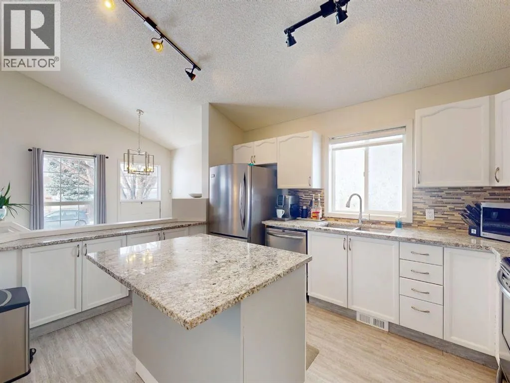 Located on a quiet crescent in the community of Hidden Valley, this renovated 4 bedroom and 2 full bathroom bi-level with modern decor and vaulted ceilings is a must see! Main floor highlights include vinyl luxury plank flooring, white kitchen cabinetry, granite countertops, stainless steel appliances, mosaic tile backsplash, a kitchen island with breakfast eating bar, spacious living room, large dining area, a common 4 piece bathroom and 3 bedrooms offering plenty of closet space. The lower level offers a large rec room with a fireplace surrounded by a built-in was unit, a flex space perfect for a home office or gym, a 3-piece bathroom, a large 4th bedroom and plenty of storage space. Enjoy the summer days in the fully fenced yard, brand new large composite deck with privacy dividers. Over 85k spent on the backyard and the brand new double detached garage and concrete retaining wall. Newly renovated bathroom upstairs with fresh paint throughout, Located close to schools, playgrounds, parks, shops, restaurants and more. This home needs nothing but new owners to make it complete. Book your viewing today before its gone!!!!! (id:27476)