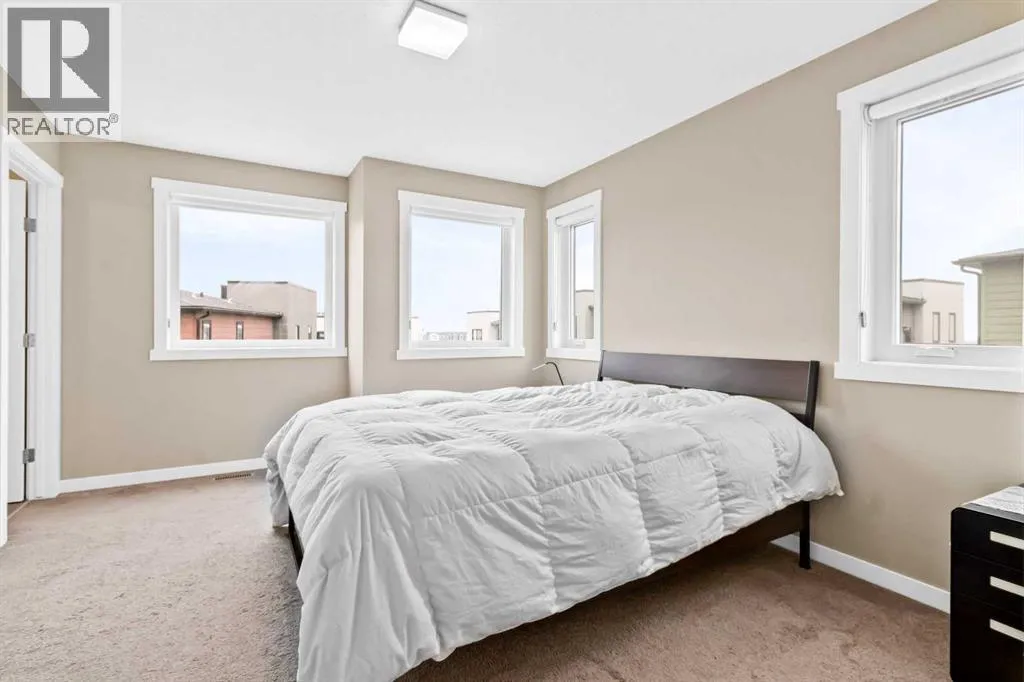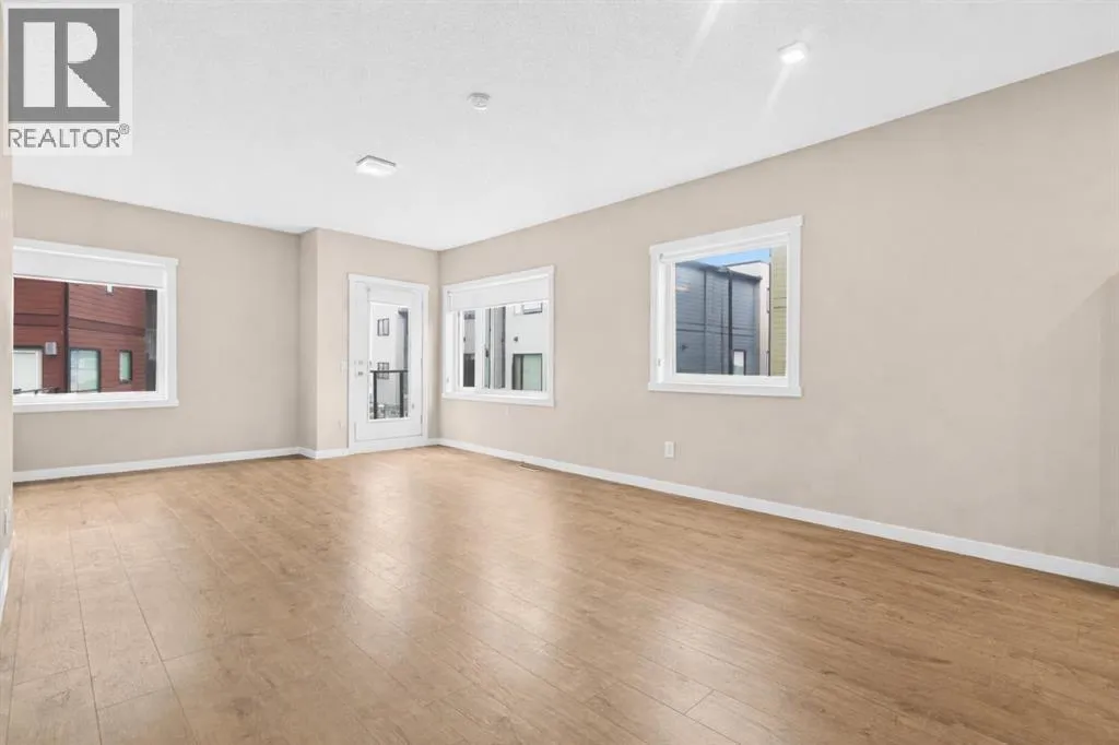 Welcome to this SPACIOUS CORNER UNIT townhome, ONE OF THE LARGER UNITS IN THE COMPLEX, located in the highly desirable community of Sherwood NW Calgary. This 3 bedroom, 2.5 bathroom home features a DOUBLE ATTACHED GARAGE, a den, and a bright OPEN CONCEPT FLOOR PLAN, making it an excellent opportunity for homebuyers or investors.As you step inside, youâre welcomed by a functional mudroom with direct access to the garage and a SUN FILLED DEN surrounded by large windows, ideal for a home office or flex space. The main living level showcases HIGH CEILINGS and OVERSIZED WINDOWS that fill the home with natural light. The OPEN CONCEPT layout is perfect for entertaining, with a formal dining area flowing into the spacious living room and modern kitchen featuring STAINLESS STEEL APPLIANCES, ample cabinetry, and generous counter space. This level is complete with a 2 piece bathroom, stacked laundry, and a LARGE PRIVATE BALCONY perfect for relaxing on warm days.Upstairs, youâll find THREE SPACIOUS BEDROOMS, including a generously sized primary suite with a WALK IN CLOSET and PRIVATE ENSUITE. Two additional bedrooms with large closets, a 4 piece bathroom, and extra storage complete the upper level.Conveniently located close to SHOPPING CENTRES, T&T SUPERMARKET, PUBLIC TRANSIT, PARKS, and all major amenities, with QUICK ACCESS TO STONEY TRAIL. A rare opportunity to own a premium corner unit townhome in NW Calgary. (id:27476)