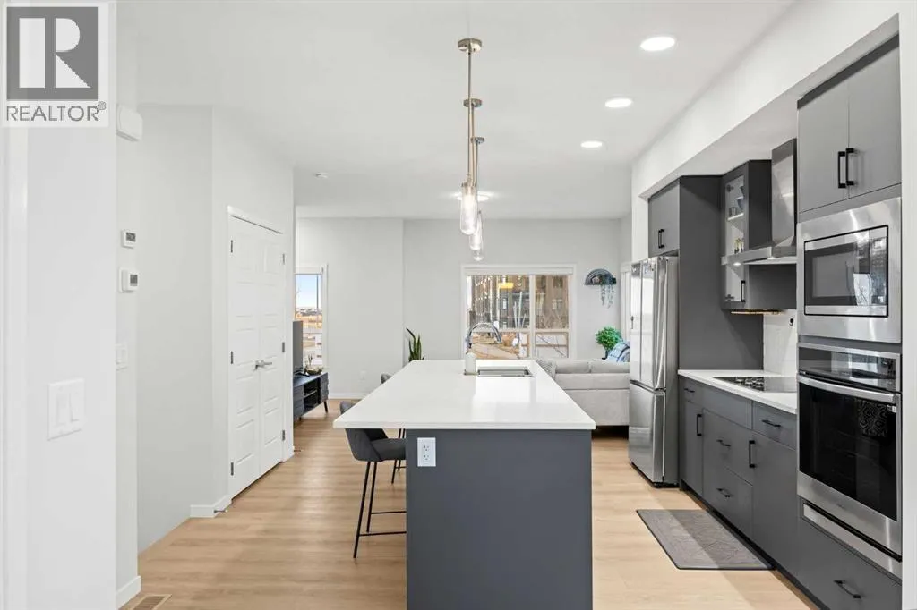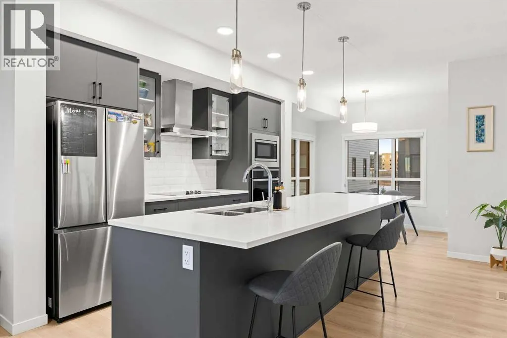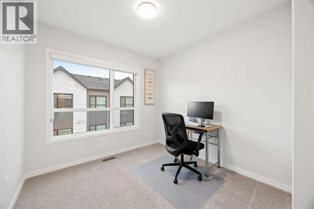 Wake up with the sun. Not a polite little beam through one window. The full performance. This east-facing corner townhome is basically a greenhouse for happy people. With windows on nearly every wall, you might actually forget where the light switches are.At 1,633 sq ft, this 3-bedroom home gives you space to live like an adult who has their life together. Or at least look like you do. The layout flows effortlessly, with room to host friends, stretch out on the couch, or dramatically announce, âThis is why we needed the extra space.âWorking from home? The main floor office is ready for Zoom calls, spreadsheets, or pretending to be on a serious business call while you are actually ordering lunch. Commute time is approximately 12 seconds.The oversized laundry room deserves its own appreciation post. Finally, a place where laundry can exist without taking over your entire personality. There is room to sort, fold, and still walk around like a civilized human.Summer heat will not win here. Central A/C keeps things cool while the sunshine pours in. You get the glow without the melt.Parking is equally drama free. An attached double car garage means no winter scraping marathons, and there is ample visitor parking right beside the townhome. Your friends have zero excuses now.Out back, there is a beautiful pond perfect for evening walks, deep conversations, or convincing yourself you are the outdoorsy type.And the location? Elite. You are minutes from the Seton VIP Cineplex for VIP movie nights, Real Canadian Superstore for âI only came for one thingâ grocery runs, Community Natural Foods when you are feeling healthy, and the South Health Campus for peace of mind. Add restaurants, shopping, schools, and the YMCA Calgary and you may never need to leave the neighbourhood.Quick access to Deerfoot Trail and Stoney Trail keeps you connected to the entire city without turning your commute into a life reflection session.There is still coverage remaining under the A lberta New Home Warranty Program, which basically means you get that comforting ânewer homeâ peace of mind.Pet friendly? Absolutely.⢠Up to 2 small or medium dogs⢠Or 1 large dog up to 35 kg⢠Up to 2 catsShort term rental friendly? Yes. Flexible is this homeâs middle name.Bright. Spacious. Convenient. Slightly showing off.If homes had personalities, this one would be the confident friend who always picks the best restaurant.Come see it before someone else with great taste beats you to it. (id:27476)