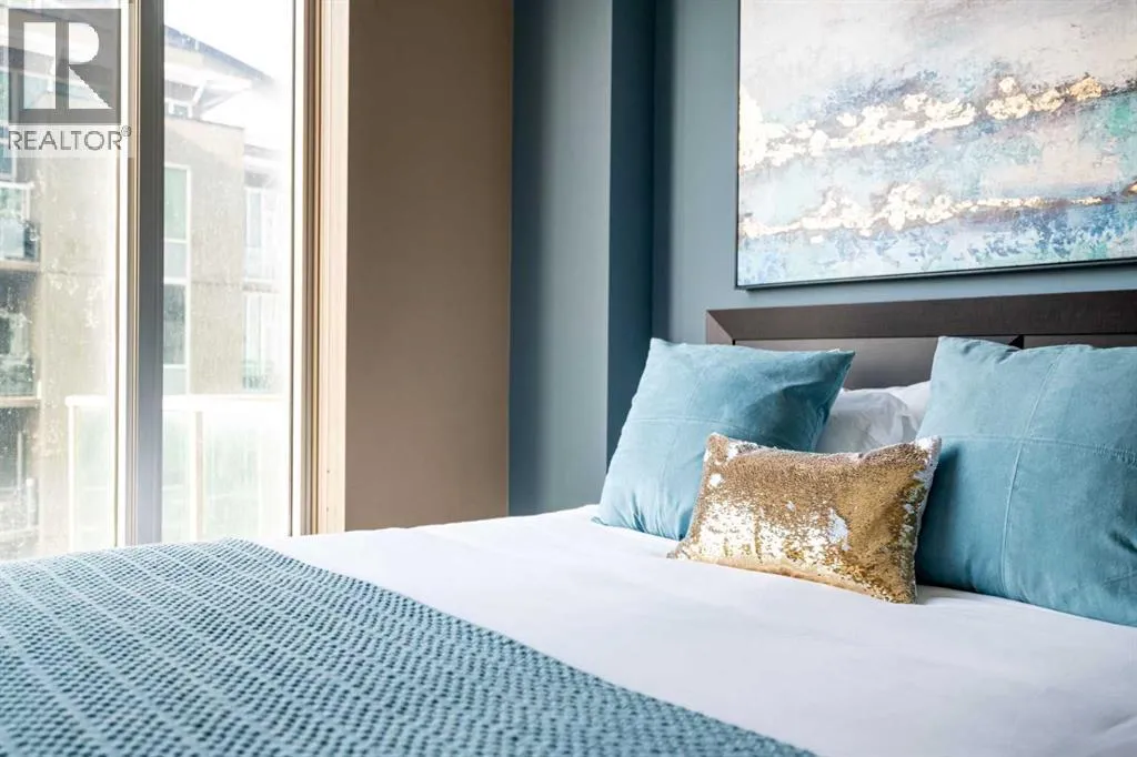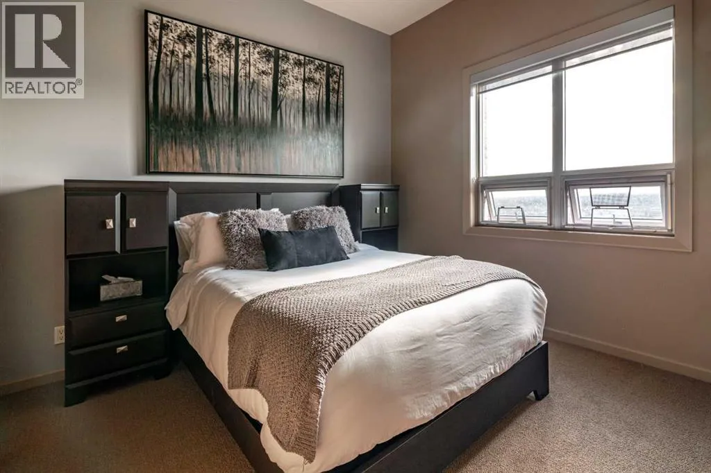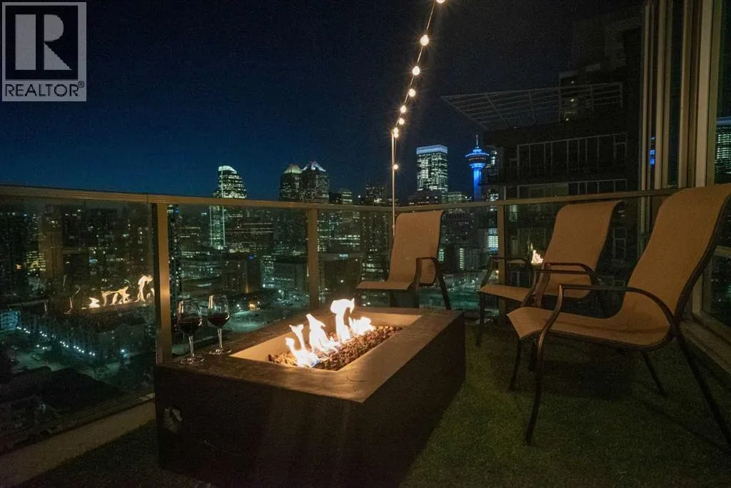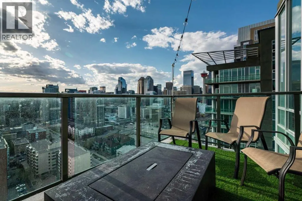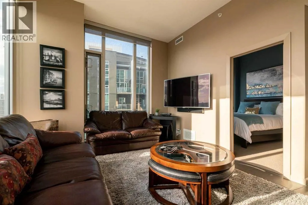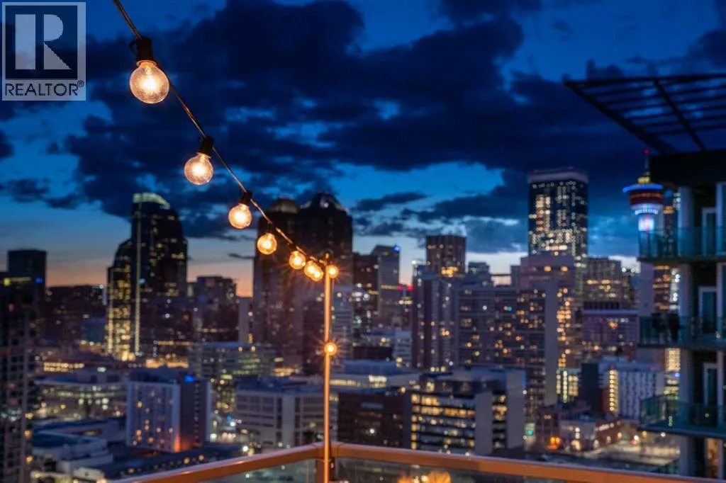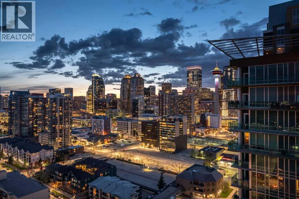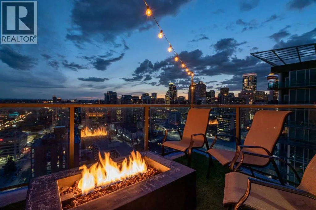 Welcome to your dream home in the heart of the Beltline! This stunning 2-bedroom, 2-bathroom condo offers over 900 sq. ft. of sleek, modern living with unparalleled city and mountain views. Perched high above the city, floor-to-ceiling windows and 10-ft ceilings create a bright, airy, and open atmosphere, showcasing breathtaking vistas of downtown, and the Rocky Mountains. Enjoy west-facing sunsets from your private balcony, the perfect spot to unwind after a long day. The thoughtfully designed layout features a spacious living area, a sleek modern kitchen, and air conditioning to keep you cool in the summer. The primary suite boasts a private ensuite, while the second bedroom offers versatility for guests or a home office. In-suite laundry adds convenience to this urban oasis. This upscale building offers titled underground parking, an assigned storage unit, and exclusive access to a fully equipped fitness center and hot tub. Located steps from the LRT, Stampede Grounds, nightlife, shopping, and entertainment, this is city living at its finest. Donât miss this opportunity to experience the ultimate urban lifestyle. (id:27476)