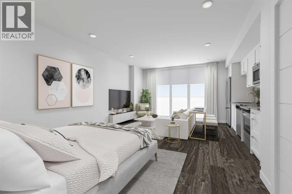 Built by Homes by Avi, this beautifully designed studio suite with the Coco floorplan offers modern living in the heart of Calgaryâs vibrant Culture and Entertainment District. Steps from the Calgary Stampede, BMO Centre, Scotiabank Saddledome, and the restaurants and nightlife of 17th Avenue, this location delivers exceptional walkability and urban convenience. Nestled within the sought after community of Mission, youâre also moments from boutique shops, acclaimed dining such as Mercato and Añejo, and the world class MNP Community & Sport Centre. Inside, the condo features premium finishes and thoughtful design throughout. A kitchen island/eating bar with white quartz countertops is complemented by sleek white cabinetry, chrome faucets and hardware, and full size stainless steel appliances. Floor to ceiling windows and durable luxury vinyl plank flooring create a bright, contemporary atmosphere. The bedroom area, a 4 piece bath, large closet/storage space & discreet in suite laundry room complete this studio suite. Included roller shade window coverings add everyday convenience. Concrete construction provides lasting durability, while central air conditioning ensures year round comfort. Additional highlights include an assigned storage locker. From this location, youâll love being able to walk to everything â from Missionâs cafés and shops to the energy of 17th Avenue. Enjoy the Bow River Pathway just minutes away or spend the day exploring the CORE Shopping Centre with more than 120 retailers, including Holt Renfrew. Whether training at the MNP Community & Sport Centre or meeting friends at local favorites like Ship & Anchor or Model Milk, this is urban living at its finest.Directions: (id:27476)