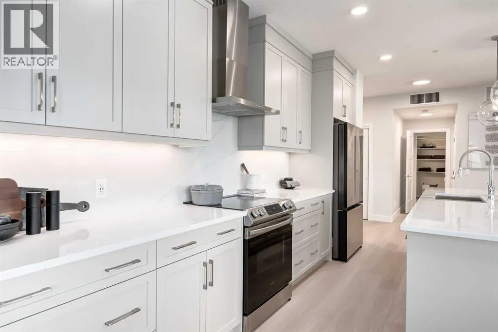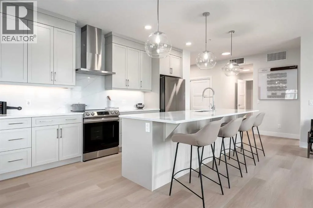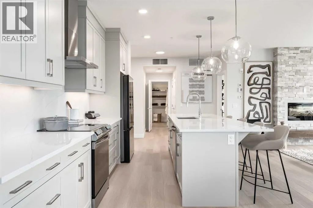 16 West is an impeccably designed boutique condominium by Cove Properties, one of Calgaryâs most respected multifamily builders, known for an unwavering commitment to quality craftsmanship and thoughtful design. Ideally situated in the sought after community of Greenwich NW, 16 West introduces a new standard of spacious, single level living, with homes ranging from 563 sq. ft. to 1,469 sq. ft., offering the perfect fit for those looking to downsize, upsize, or rightsize their lifestyle without compromising on space, comfort, or style. Beyond the residences, 16 West sets itself apart through exceptional construction, including an advanced sound attenuation program, along with in floor heating, rain screen technology, and secure SafeWalk parkades designed to enhance everyday comfort, durability, and peace of mind. Positioned on one of the most desirable sites in Greenwich, the building backs onto a municipal reserve, sits adjacent to a park, and offers unobstructed views of Canada Olympic Park (WinSport), the Rocky Mountains, and surrounding green spaces. Residents will enjoy direct access to walking paths, while being just a five minute walk to the Calgary Farmersâ Market West and the growing Greenwich retail district. Downtown Calgary, the University of Calgary, Market Mall, and Foothills Hospital are all just minutes away, offering exceptional connectivity. Your new BROADWAY floor plan is thoughtfully designed and features 1184 sq.ft. RMS and 1268 sq.ft. architectural measurement, delivering a true bungalow in the sky experience. Inside, you will find 2 generously sized beds, a spacious den/home office, and 2 full baths. The chef inspired kitchen is complemented by custom cabinetry, quartz countertops, designer tile, premium fixtures, and stainless steel appliances, while spa inspired bathrooms and in-suite laundry complete the home. A standout feature is the large south facing patio with views of the municipal reserve and COP/Winsport, perfect for seamless indoo r-outdoor living. 16 West offers a full selection of 1 bed, 1 bed + den, 2 bed, and 2 bed + den homes, all featuring spacious private outdoor areas with gas lines for BBQs, one titled parking stall, and a choice of 4 curated interior finishing packages including a wide range of upgrade options such as fireplaces and A/C. Construction is anticipated to begin in Q3 2026, with completion and possession projected for Q4 2027 to Q2 2028. Final legal plans and property taxes are yet to be confirmed. RMS measurements are based on architectural plans. Photos shown are from previous Cove Properties show suites and do not represent the exact unit. This is a rare opportunity to own a spacious bungalow style condominium in one of Calgaryâs most exciting and well connected new communities. Contact your agent today to learn more about our pre-construction pricing, all available floor plans, early purchaser incentives, and to explore customization options at the sales centre. (id:27476)