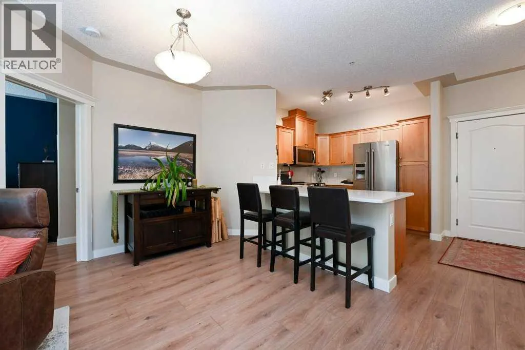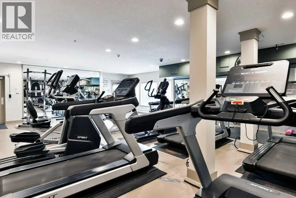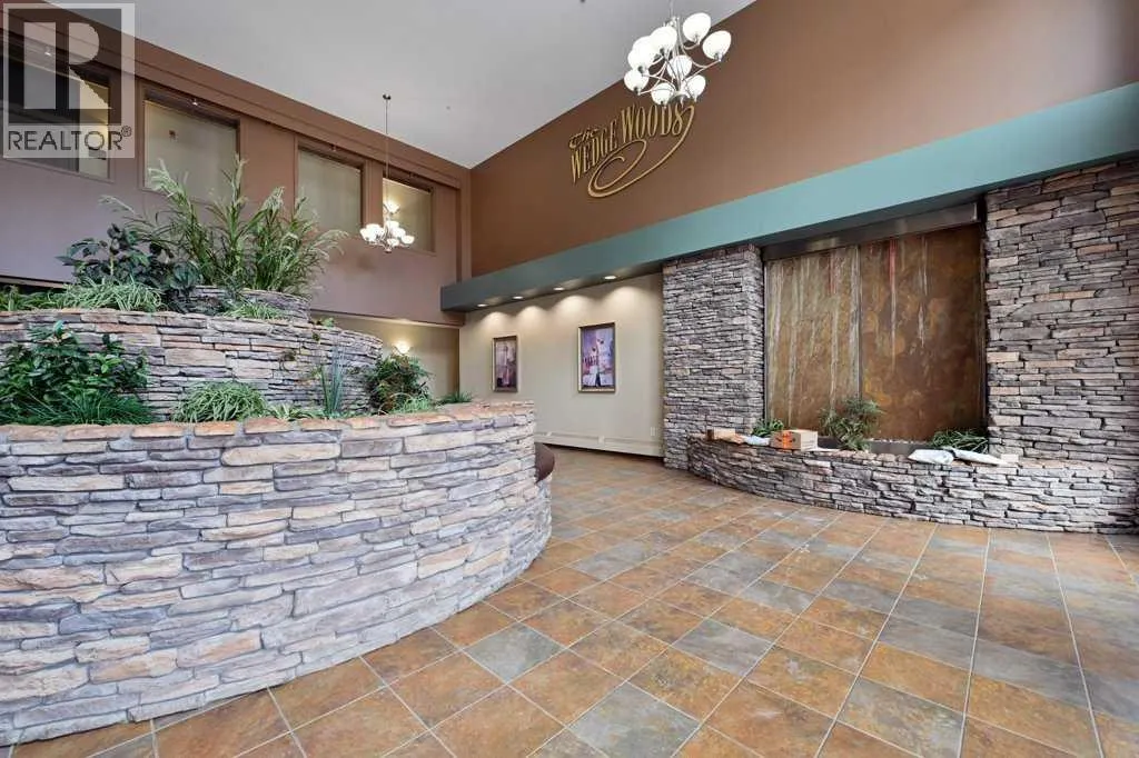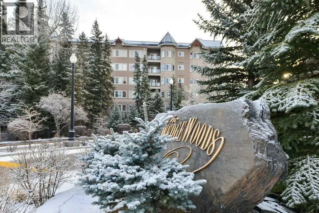 Welcome to The Wedgewoods, a well-managed complex in Discovery Ridge, backing directly onto Griffith Woods Park. This original-owner unit offers 1,028 sq. ft. of well-maintained living space with 2 bedrooms, 2 full bathrooms, in-suite laundry, titled underground parking with secure storage, and a private setting overlooking the park. The open plan is bright and functional, with flooring updated in the past two years. The kitchen has been updated with stone countertops, and all kitchen appliances have been replaced within the last three years. From the kitchen you overlook a spacious dining and living area featuring a stone gas fireplace. From the dining area, step out to a private balcony with gas hookup and uninterrupted views into Griffith Woods. The bedrooms are well separated for privacy; the second bedroom includes a built-in Murphy bed, allowing it to function as both a guest room and office. The primary suite overlooks the park and offers a walk-in closet and a full ensuite with soaker tub and separate shower. The titled underground parking stall includes secure storage directly in front. Amenities include a gym and community room in Building 30, and condo fees cover all utilities, including electricity. Living in Discovery Ridge leaves you 3 minutes from the Elbow River pathway system and offers a quiet, secluded setting with easy access to shopping, schools, and city transit. Mount Royal University and the Rockyview Hospital are less than 10 minutes away; you can be out of the city and on your way to Banff in minutes. The recently completed Calgary Ring Road gives you easy access to all quadrants of the city. (id:27476)