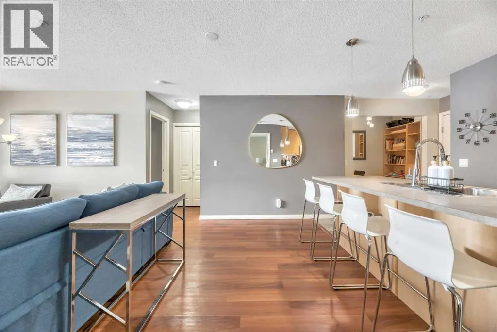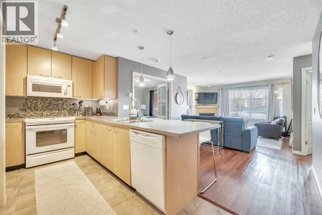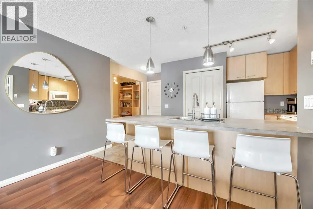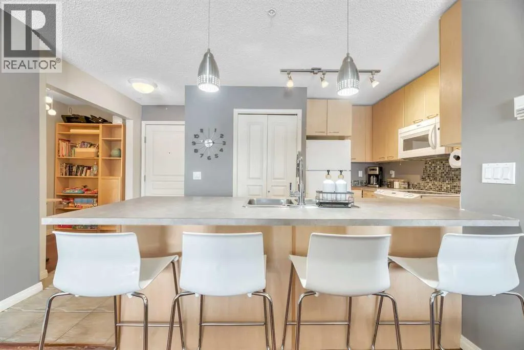 Welcome to this exceptional 2-bedroom, 2-bathroom ground-floor unit in Trafalgar Houseâperfectly located directly across from Mount Royal University, making it an outstanding opportunity for investors, students, or professionals seeking unmatched convenience.Designed with functionality in mind, the open-concept layout seamlessly connects the kitchen, dining, and living areas, complete with a cozy gas fireplace and large windows that bring in natural light. A dedicated home office/den with built-ins adds valuable flexibility for remote work or study.The spacious primary bedroom features a walk-through closet and private 3-piece ensuite, while the second bedroom includes its own walk-in closet and easy access to a full 4-piece bathroomâideal for roommates or guests.Step outside to your private covered patio, offering easy ground-level access and a natural extension of your living space.This unit stands out with two titled underground parking stallsâa rare and valuable featureâalong with a separate storage locker and in-suite laundry for added convenience.The building offers excellent amenities, including a fitness centre, party room, courtyard, and secured parking. With transit, shopping, and parks all nearby, the location is as practical as it is desirable.For investors, this property presents strong income potential, with similar units renting for approximately $2,300 per month, and the option to purchase the unit fully furnished creates an immediate turnkey rental opportunity. Call your realtor to view the condo docs and write your offer! (id:27476)