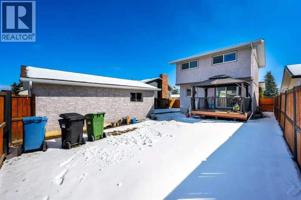 Welcome to this well-maintained 2-storey detached home in the heart of Rundle, perfectly located on a quiet street across from green space and a school. This property offers excellent value for families and investors alike, featuring a finished basement with an illegal suite and multiple recent upgrades. The main floor showcases an upgraded kitchen with quartz countertops and stainless steel appliances (fridge, hood fan, microwave), along with a functional layout, laminate flooring, a 2-piece bath, and access to a large deck with coverâideal for outdoor enjoyment. The upper level features 3 spacious bedrooms, a 4-piece bathroom, and luxury vinyl flooring throughout. The fully developed basement includes a separate kitchen, 3-piece bathroom, and bright living space with large windows, making it ideal for extended family or rental potential. Additional highlights include shared washer & dryer, new furnace (2023), newer hot water tank, and partial roof replacement (2025). Outside, enjoy a single oversized detached garage, paved back alley access, and a private backyard setup. Conveniently located close to schools, parks, LRT, public transit, and shopping, this is a fantastic opportunity in a well-established NE Calgary community. This house is is very close to both a Catholic school and a public school about a 5-minute walk. (id:27476)