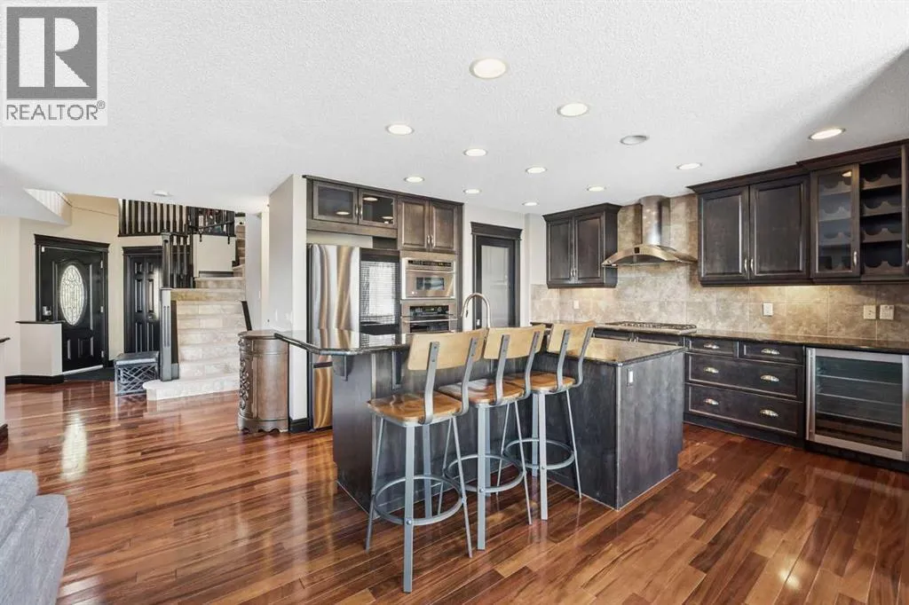 Welcome to 224 Everbrook Way SW in the desirable community of Evergreen, featuring a fully developed walkout basement with a 1-bedroom legal suite, an excellent opportunity for mortgage help, rental income or a comfortable space for an extended family. With its own kitchen and separate laundry, the suite offers privacy and flexibility while adding real long-term value to the home. This Jayman-built home features Brazilian Tigerwood flooring throughout the main level and a bright, open concept layout ideal for everyday living and entertaining. The kitchen features granite countertops, a stainless steel sink, charcoal maple cabinetry, and upgraded stainless steel appliances, with plenty of storage. The dining nook features soaring 11-foot ceilings, floor-to-ceiling windows, and access to the deck with views toward Fish Creek Park and the city. Both the deck and patio include gas BBQ hookups, while the family room offers built-in shelving and a cozy fireplace. The main floor is finished with a den featuring custom built-ins, perfect for a home office. Upstairs, you will find a spacious bonus room with built-in wiring and speakers, along with a primary suite complete with a walk-in closet and ensuite featuring a separate shower and jetted tub. Two additional spacious bedrooms and a 4-piece bathroom complete the upper level. The fully developed walkout basement legal suite includes its own kitchen and separate laundry, making it ideal for generating rental income or hosting extended family. Outside, the professionally landscaped backyard showcases high-end landscaping and a stunning waterfall, creating a private outdoor retreat. A beautifully upgraded home in an exceptional location. Book your private showing today. (id:27476)