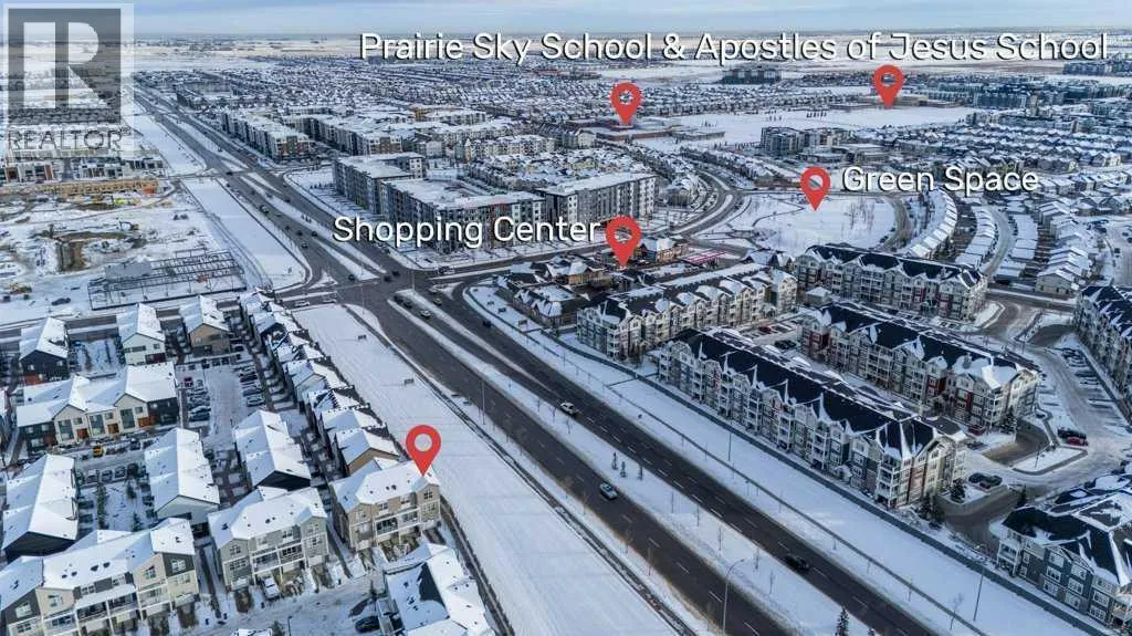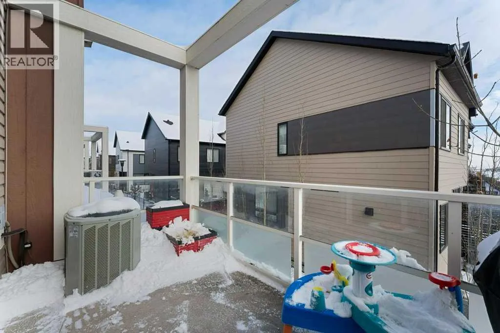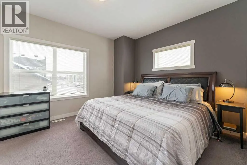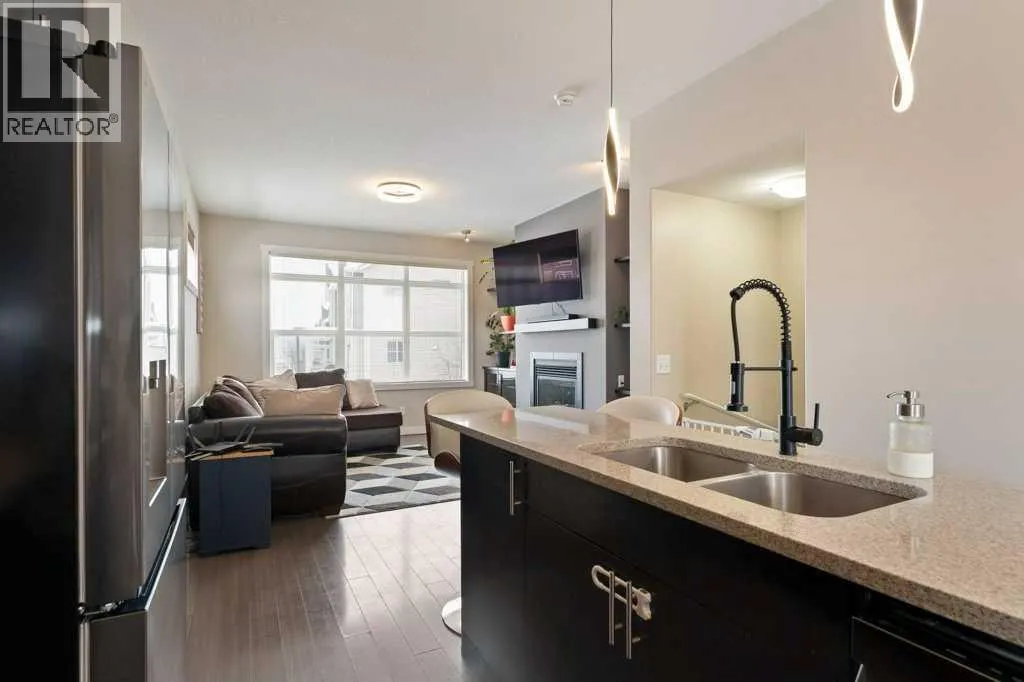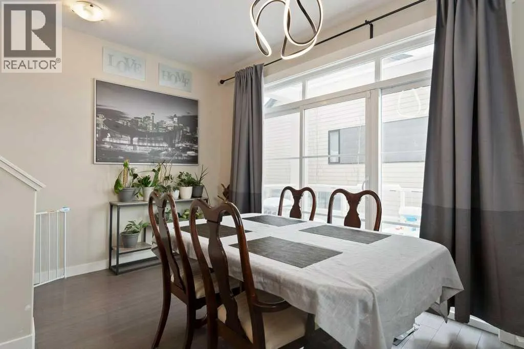 Nestled in the vibrant Community of Redstone, this stunning 2-bedroom, 3-bathroom end-unit townhouse offers a bright, airy sanctuary bathed in natural light from its abundance of extra windows, perfect for those who cherish sunlit spaces and SPECTACULAR MOUNTAIN VIEWS. Step into the ground floor, where a spacious front entry welcomes you alongside a versatile office or recreation area, ideal for unwinding or working from home. Convenience reigns here with a 2-piece bathroom for quick touch-ups, a utility room with new hot water heater, and the OVERSIZED ATTACHED HEATED GARAGE provides ample storage while featuring a handy water tap for effortless cleaning of outdoor itemsâmaking everyday chores a breeze. Ascend to the second floor, greeted by elegant laminate HARDWOOD FLOORING that flows seamlessly into the heart of the home: a chef's dream kitchen boasting rich dark cabinetry, luxurious QUARTZ COUNTERTOPS, and gleaming STAINLESS STEEL appliances, including NEW REFRIGERATOR, STOVE, and DISHWASHER. The expansive island invites casual seating at both ends, fostering easy conversations during meal prep, while the adjacent family-sized dining area captivates with its huge windows and patio doors spilling onto a generous deck with GAS LINE for you BBQâperfect for savoring eastern exposures and those serene morning coffees as the sun rises. Cozy up in the adjoining awesome living room, where a GAS FIREPLACE crackles invitingly beside CUSTOM BUILT-IN CABINETS, creating an intimate yet open gathering spot for family and friends. Upstairs, retreat to the tranquil MASTER BEDROOM with MOUNTAIN VIEWSâa wonderful haven complete with a 4-piece ensuite and double closets for all your wardrobe needs. The second spacious bedroom shares this level with another full 4-piece bathroom, ensuring privacy and comfort for guests or growing families. Rounding out this thoughtfully designed floorplan is a dedicated laundry and storage room, keeping life organized and stress-free. With its mod ern finishes, intelligent layout, and community perks including a pond with panoramic west-facing views of the mountains and downtown skyline, close proximity to schools and transportation routes, and quick access to downtown via major highwaysâthis Redstone gem is more than a home, it's a lifestyle upgrade just waiting for you. (id:27476)