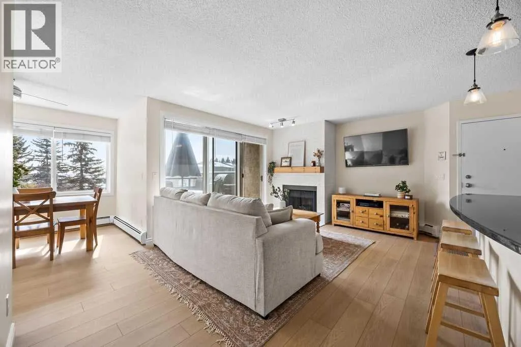 Set within an established and truly unique community, this is a quiet, elevated lifestyle just minutes from the city. This bright and beautifully maintained second-floor condo offers 2 bedrooms and 2 full bathrooms, thoughtfully designed for easy, low-maintenance living.Recent updates including new luxury vinyl plank flooring, fresh paint, and updated baseboards give the home a clean, modern feel, while large windows fill the space with natural light throughout.The living room is warm and inviting, centred around a wood-burning fireplace and flowing seamlessly into a generous dining areaâperfect for hosting or easily reimagined as a comfortable home office. The kitchen balances style and function, featuring granite countertops, maple cabinetry, a curved eating bar, subway tile backsplash, an upgraded dishwasher, and updated laundry appliances for everyday convenience.Both bedrooms offer excellent storage, including a spacious primary retreat with a built-in wardrobe and private ensuite. The bathrooms have been thoughtfully renovated, offering both a full tub and a stand-up shower for added flexibility. A second full bathroom is ideally located just across from the second bedroom, making it perfect for guests or shared living.Step outside to your southeast-facing balcony and enjoy morning sun along with open views across the surrounding neighbourhood and toward the horizon.Additional features include in-suite laundry, a large private storage locker, and a reserved parking stall in the heated parkadeâconveniently located on the same level as the unit for easy access.Residents of this pet-friendly complex (with board approval) enjoy beautifully maintained grounds with an ornamental pond and fountain, along with access to exceptional amenities including tennis courts, a fitness centre, indoor pool and hot tub, and a welcoming party room with fireplace. Condo fees include heat and water/sewer for added peace of mind.Originally built as the media village for the 1988 Winter Olympics, this iconic location offers a rare blend of history, community, and convenience. Just minutes to shopping, transit, recreation, and with quick access to downtown, this is a home that delivers both lifestyle and location. (id:27476)