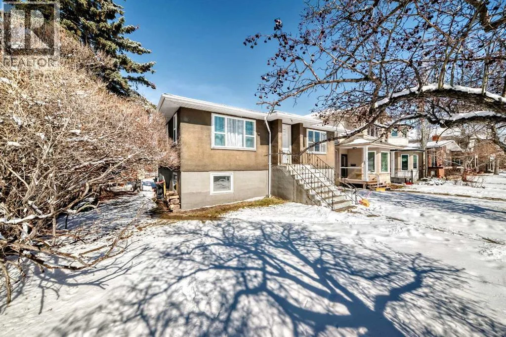 Check out this solidly built bungalow with a stucco exterior sitting on a huge 50 x 130 foot deep lot zoned R-CG and sitting at the end of a quiet cul de sac, great location in West Hillhurst. A lot of redevelopment is happening on this block and in the area in general. This is a very solid raised bungalow with a large living and kitchen area plus two generous bedrooms up, large family room and two more good sized bedrooms in the lower level and a large laundry / furnace room. So in total there is 4 bedrooms, two baths and a separate entry from the back in case you may want to set up a separate suite down. Because it is a raised bungalow the windows in the lower level are all quite large and bring in lots of light and in fact all the windows in this home are very good sizes, makes for a nice bright home. Whatever you may want to do with this home there are a lot of possibilities, renovate, add on, go up, tear down and create a brand new development the possibilities are endless. This home is situated close to so many amenities, transit, parks, schools, the river and it's bike paths and a easy commute to downtown, Sait, University of Calgary, foothills hospital, etc. Land is becoming scarce in the inner city, it is a good time to jump into the market. (id:27476)