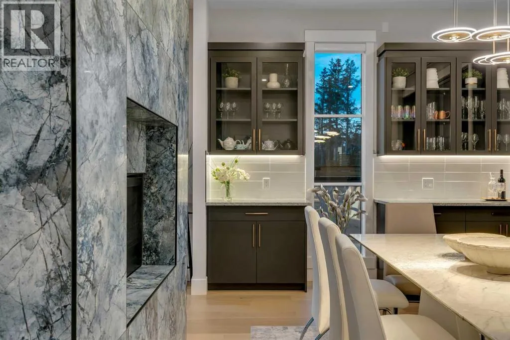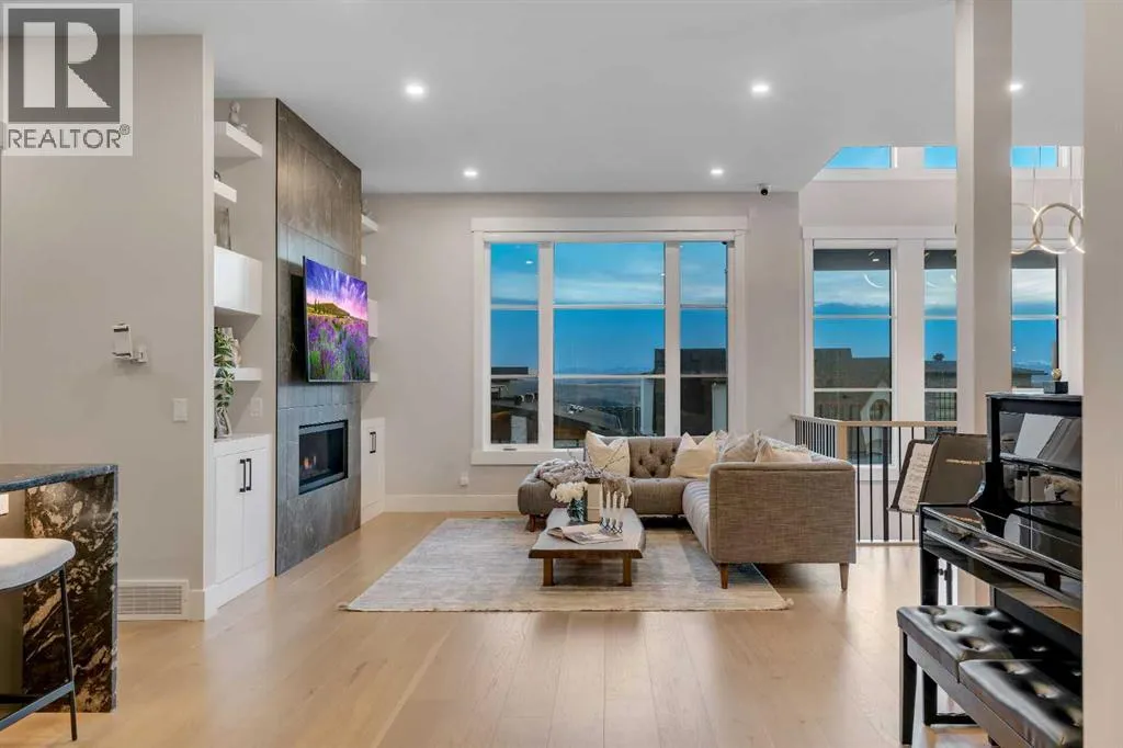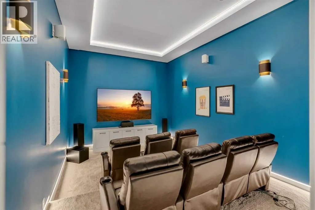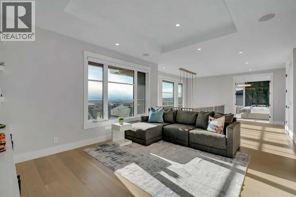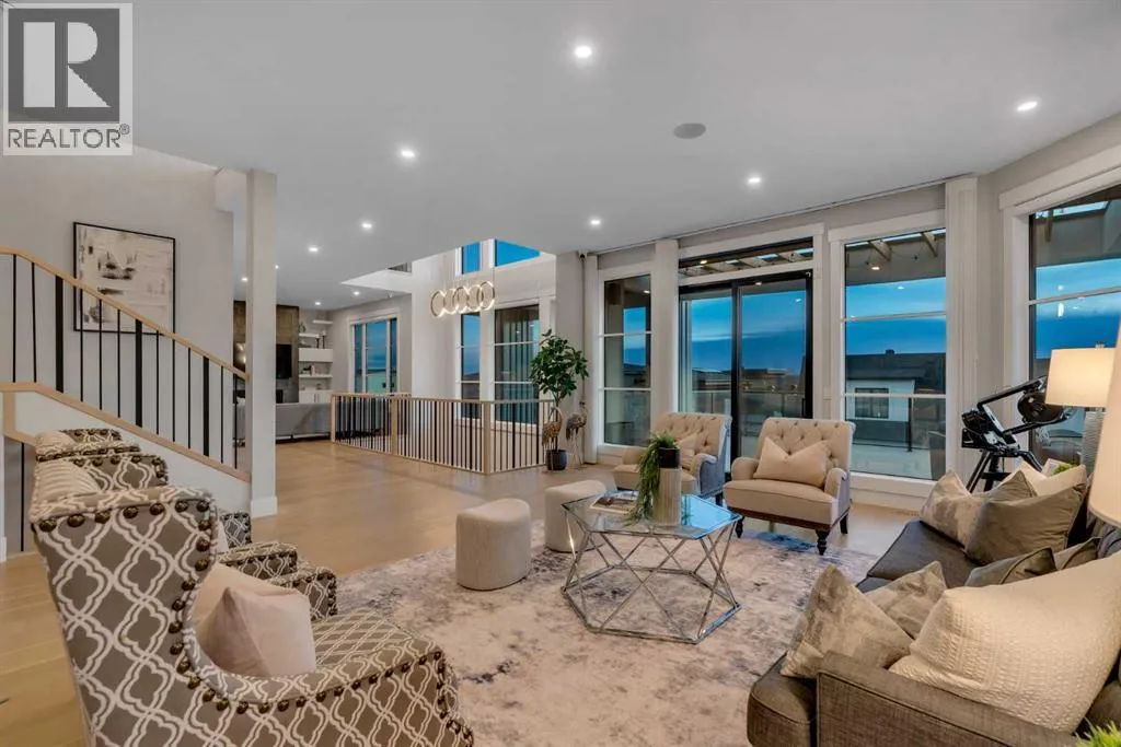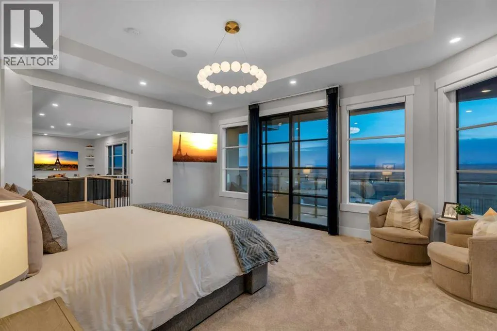*Watch the video* Dreams do come true. Welcome to one of the most exceptional and rarely available luxury homes in prestigious Springbank Hillâa stunning custom residence on a 80 FT wide lot that truly redefines elevated living. Showcasing breathtaking panoramic mountain views and unforgettable Rocky Mountain sunsets, this extraordinary property offers over 6,600 SQ FT of beautifully designed living space across three grand levels.Mountain Views | Over 6600 SQFT | 5 Bedrooms (with own ensuites) | Elevator | 2 Private Dens | Home Theatre + Gym | Multiple Living Areas | 4-Car Heated Garage | Designer Finishes | Chefâs Dream Kitchen | Butlerâs Pantry + Prep Kitchen | Private Lounge | Spa-Inspired Ensuite | Expansive Wraparound Balcony | Statement Lighting | Smart Home Automation | Walkout Basement | Solar Panels | Heated DrivewayAs you step inside you are greeted by a spectacular open-to-below foyer soaring approximately 30 feet, creating a rare sense of scale and elegance. Thoughtfully designed for both relaxation and upscale entertaining, this home features an elegant lounge with soaring 14-foot ceilings, built-in speakers, and ambient lighting that enhances the refined atmosphere. A custom-designed bar with sleek stone countertops, gold hardware, and backlit shelving serves as a true showpiece. This level also offers a private den, dedicated gym, fully equipped home theatre, and a spacious bedroom with a walk-in closet and full bathroom.Upstairs, the wide illuminated staircase adds a striking architectural touch. The main floor is flooded with natural light from expansive windows, creating a warm yet sophisticated feel. The great room impresses with floor-to-ceiling tile detail, a fireplace, and custom built-ins. A second den provides flexibility for work or study.The chefâs kitchen is a true centerpieceâfeaturing an oversized waterfall island, top-of-the-line appliances, full-height cabinetry, elegant countertops, designer lighting, and extensive storage. A but lerâs pantry and secondary prep kitchen complete with gas stove and additional appliances make this home ideal for entertaining.The upper level offers a spacious bonus room and four generously sized bedrooms, each with its own ensuite and walk-in closet. The primary retreat is further enhanced by a massive walk-in closet featuring custom built-in shelving, offering both style and exceptional organization. The well-appointed laundry room is designed with functionality in mind, complete with generous counter space, ample cabinetry, and a convenient sink. A spacious bonus room provides the perfect setting for movie nightsAdditional highlights include smart home automation, powered blinds, irrigated landscaping, and a wraparound south-facing deckâperfect for summer entertaining.This home presents an extraordinary opportunity to own a modern and elegant home with astonishing mountain views.This is more than just a homeâit is a statement of luxury, craftsmanship, and lifestyle all combined together. (id:27476)