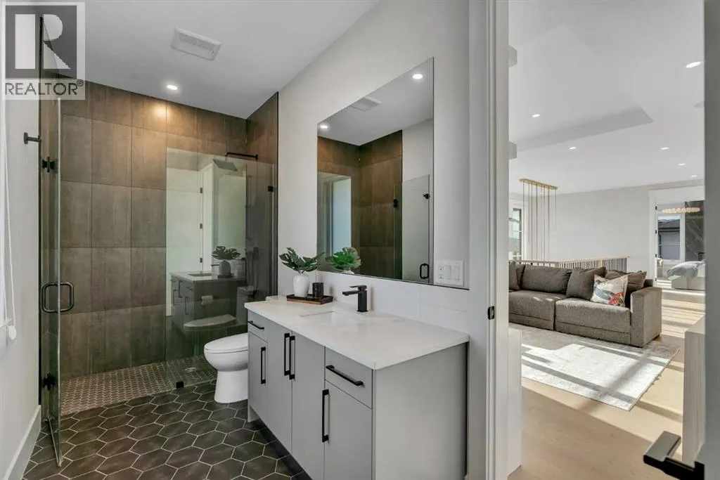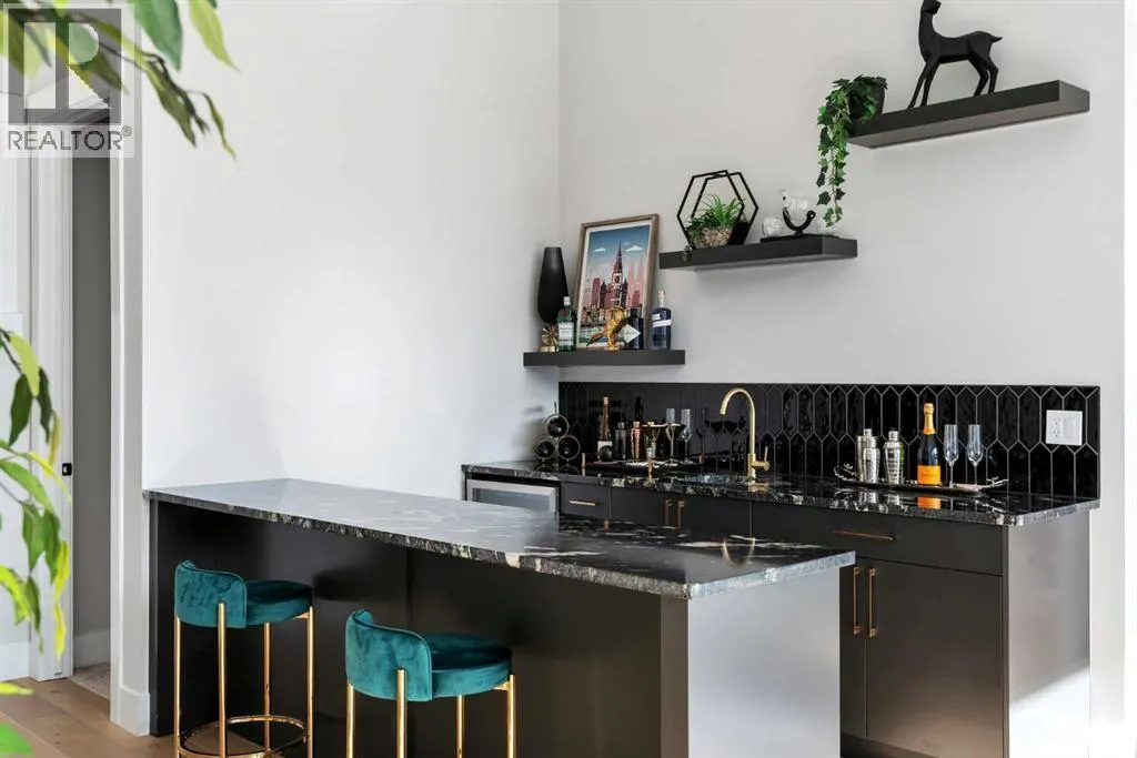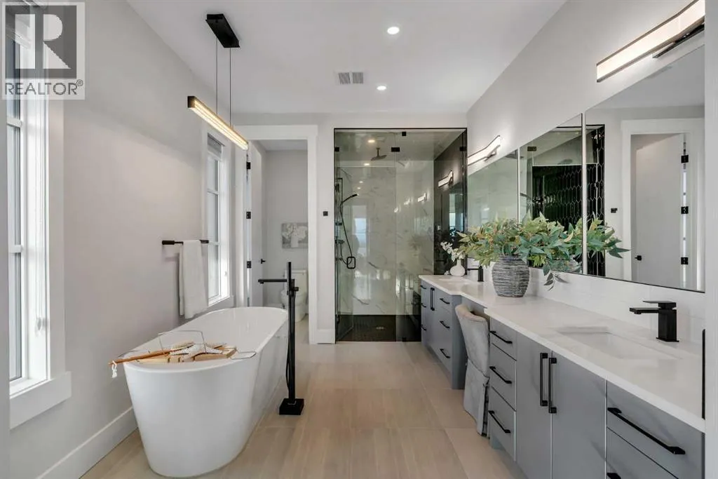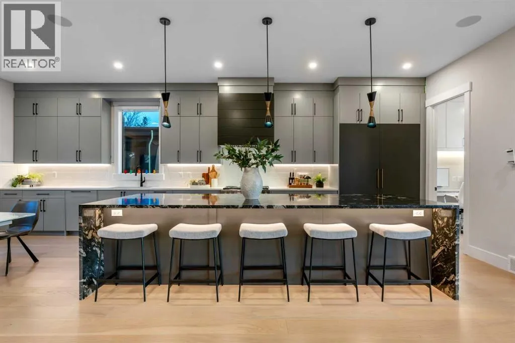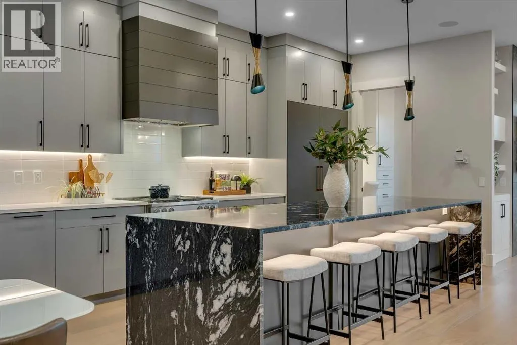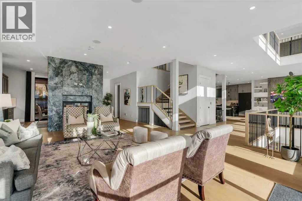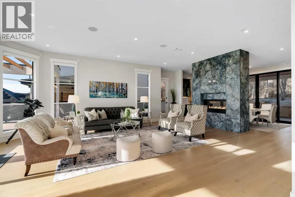 *Watch the video* Dreams do come true. Welcome to one of the most exceptional and rarely available luxury homes in prestigious Springbank Hillâa stunning custom residence on a 80 FT wide lot that truly redefines elevated living. Showcasing breathtaking panoramic mountain views and unforgettable Rocky Mountain sunsets, this extraordinary property offers over 6,600 SQ FT of beautifully designed living space across three grand levels.Mountain Views | Over 6600 SQFT | 5 Bedrooms (with own ensuites) | Elevator | 2 Private Dens | Home Theatre + Gym | Multiple Living Areas | 4-Car Heated Garage | Designer Finishes | Chefâs Dream Kitchen | Butlerâs Pantry + Prep Kitchen | Private Lounge | Spa-Inspired Ensuite | Expansive Wraparound Balcony | Statement Lighting | Smart Home Automation | Walkout Basement | Solar Panels | Heated DrivewayAs you step inside you are greeted by a spectacular open-to-below foyer soaring approximately 30 feet, creating a rare sense of scale and elegance. Thoughtfully designed for both relaxation and upscale entertaining, this home features an elegant lounge with soaring 14-foot ceilings, built-in speakers, and ambient lighting that enhances the refined atmosphere. A custom-designed bar with sleek stone countertops, gold hardware, and backlit shelving serves as a true showpiece. This level also offers a private den, dedicated gym, fully equipped home theatre, and a spacious bedroom with a walk-in closet and full bathroom.Upstairs, the wide illuminated staircase adds a striking architectural touch. The main floor is flooded with natural light from expansive windows, creating a warm yet sophisticated feel. The great room impresses with floor-to-ceiling tile detail, a fireplace, and custom built-ins. A second den provides flexibility for work or study.The chefâs kitchen is a true centerpieceâfeaturing an oversized waterfall island, top-of-the-line appliances, full-height cabinetry, elegant countertops, designer lighting, and extensive storage. A but lerâs pantry and secondary prep kitchen complete with gas stove and additional appliances make this home ideal for entertaining.The upper level offers a spacious bonus room and four generously sized bedrooms, each with its own ensuite and walk-in closet. The primary retreat is further enhanced by a massive walk-in closet featuring custom built-in shelving, offering both style and exceptional organization. The well-appointed laundry room is designed with functionality in mind, complete with generous counter space, ample cabinetry, and a convenient sink. A spacious bonus room provides the perfect setting for movie nightsAdditional highlights include smart home automation, powered blinds, irrigated landscaping, and a wraparound south-facing deckâperfect for summer entertaining.This home presents an extraordinary opportunity to own a modern and elegant home with astonishing mountain views.This is more than just a homeâit is a statement of luxury, craftsmanship, and lifestyle all combined together. (id:27476)