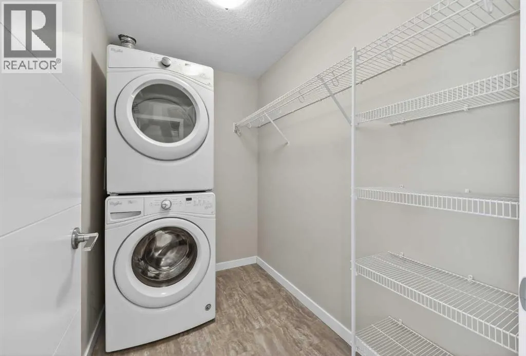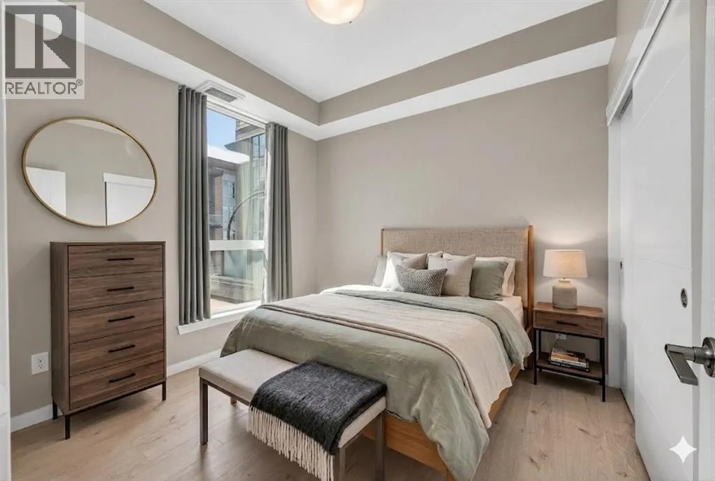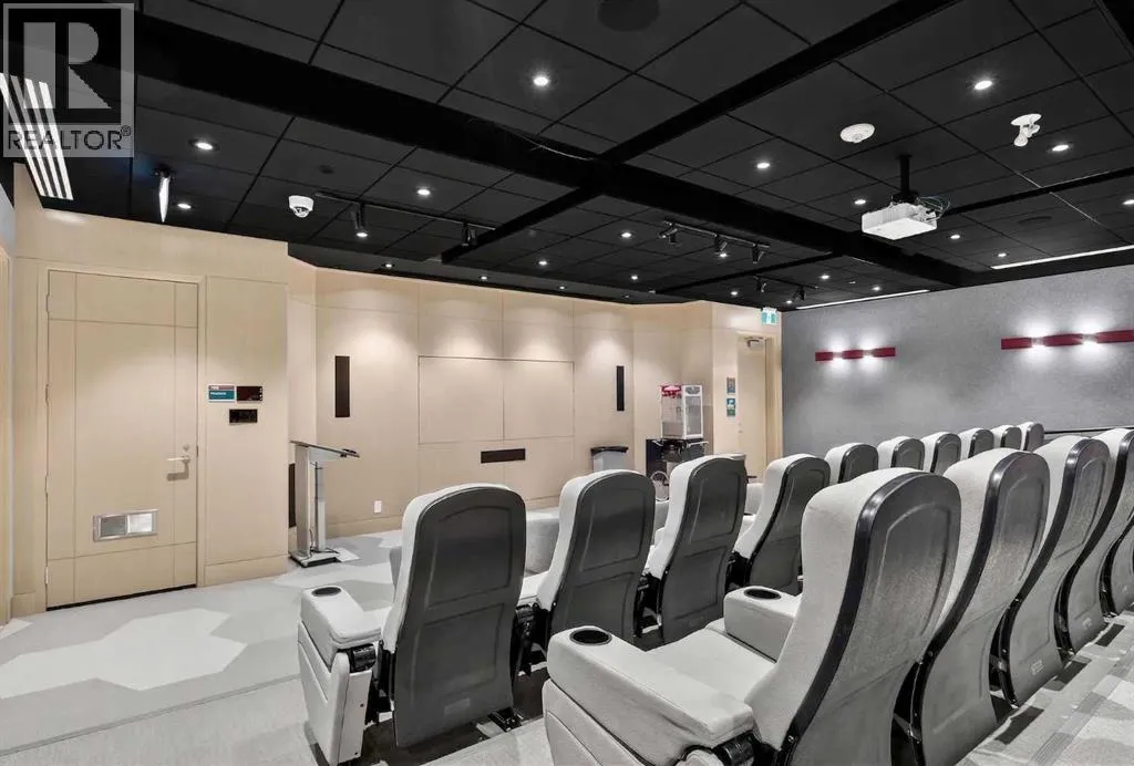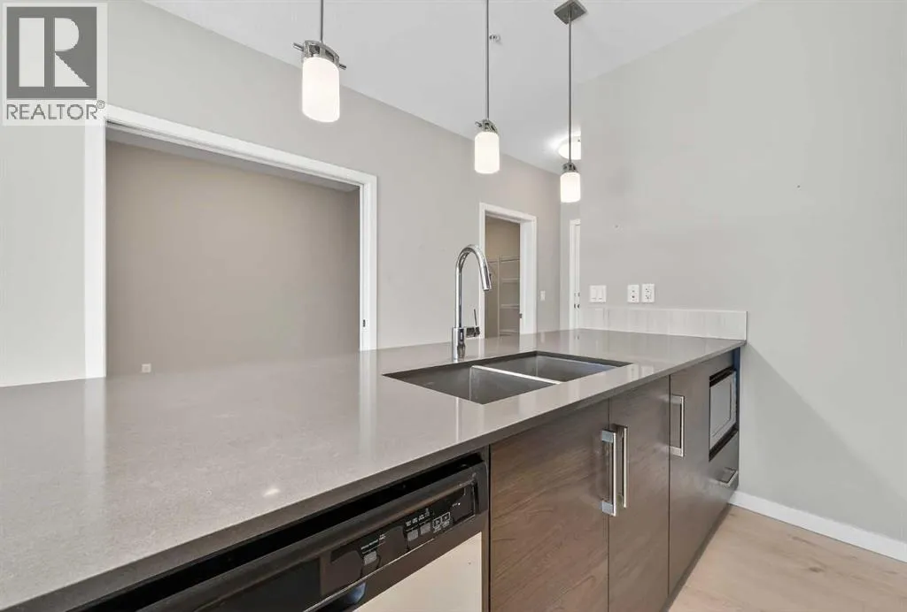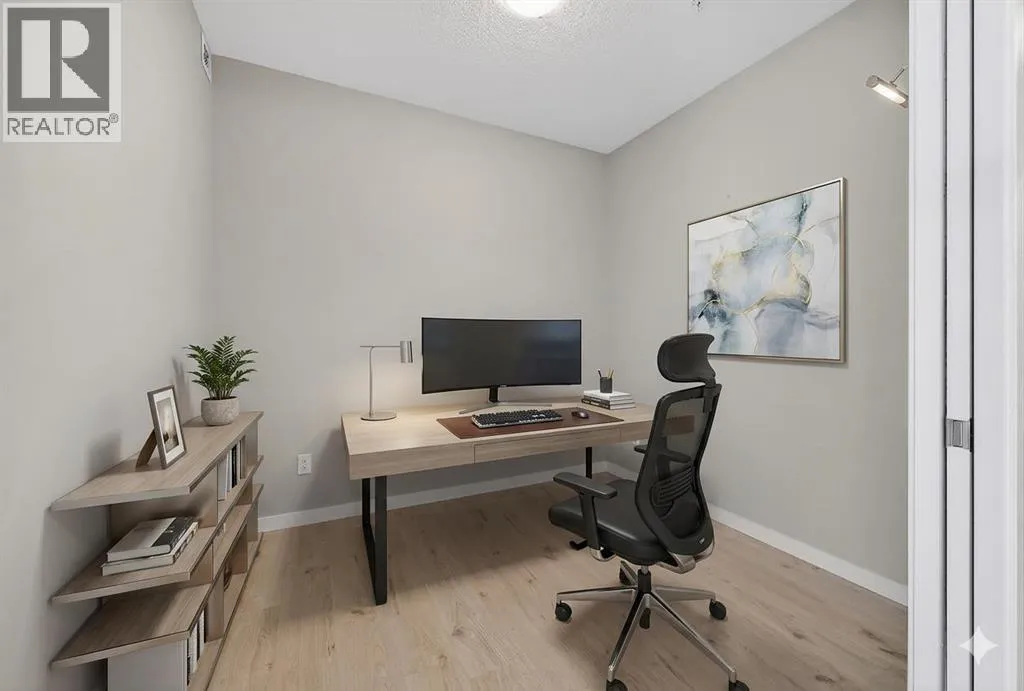 Impeccable 1 Bedroom Plus Den in Calgaryâs Premier Lake CommunityExperience the pinnacle of sophisticated living in this meticulously maintained residence. Boasting contemporary finishings and a highly functional floor plan, this unit feels exactly like a professional show suite. The open concept layout is designed for both seamless entertaining and comfortable daily life. The gourmet kitchen serves as the heart of the home with quartz countertops, designer flat panel cabinetry, a large breakfast bar, and premium stainless steel appliances.The versatile layout includes a dedicated den perfect for a home office, a quiet study, or guest accommodations. The bedroom is bright, spacious and large enough for a king sized bed and comes complete with a full length closet. Additional interior highlights include a well appointed 4 piece bathroom and a generous in suite laundry and storage room. Outside, a sunny, south facing private balcony offers the ideal spot for morning coffee or evening relaxation. This home also comes equipped with integrated air conditioning for year round comfort and includes one titled underground parking stall.Westman Village sets a new standard for luxury with its 40,000 square foot Village Centre. Residents enjoy access to a world class array of fitness and health facilities including a state of the art gym, an indoor walking track, a full size gymnasium, and a swimming pool featuring a two story water slide and hot tub. For social and creative pursuits, the centre offers a golf simulator, a wine tasting room, a library, a demonstration kitchen, an arts and crafts room, a theatre, a social/games room and a fully equipped workshop. The community also provides 24/7 security and concierge services, 200 visitor parking stalls, and convenient +15 skywalk connections.Located on the shores of Mahogany Lake, the communityâs main street puts everything you need at your doorstep. You can enjoy fine dining at Chairmanâs Steakhouse or live muusic at Alvin âs Jazz Club. Daily conveniences are abundant with local favorites like Analog Coffee, Diner Deluxe, and Pie Junkie nearby. The village also hosts a full suite of medical, dental, and professional services to ensure a truly walkable lifestyle. Not to mention full access to the lake, with tennis courts, fishing, swimming and skating. Welcome to your new home! (id:27476)