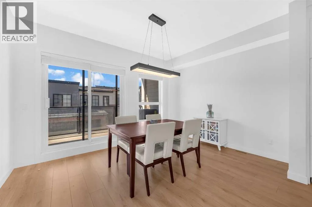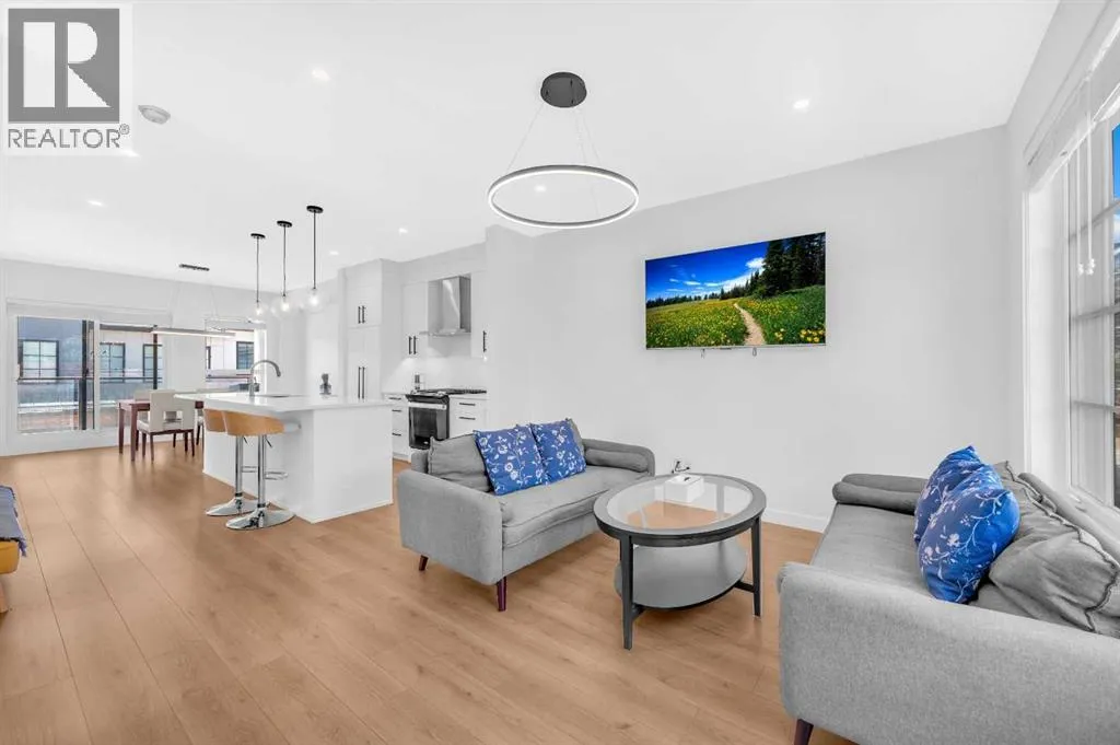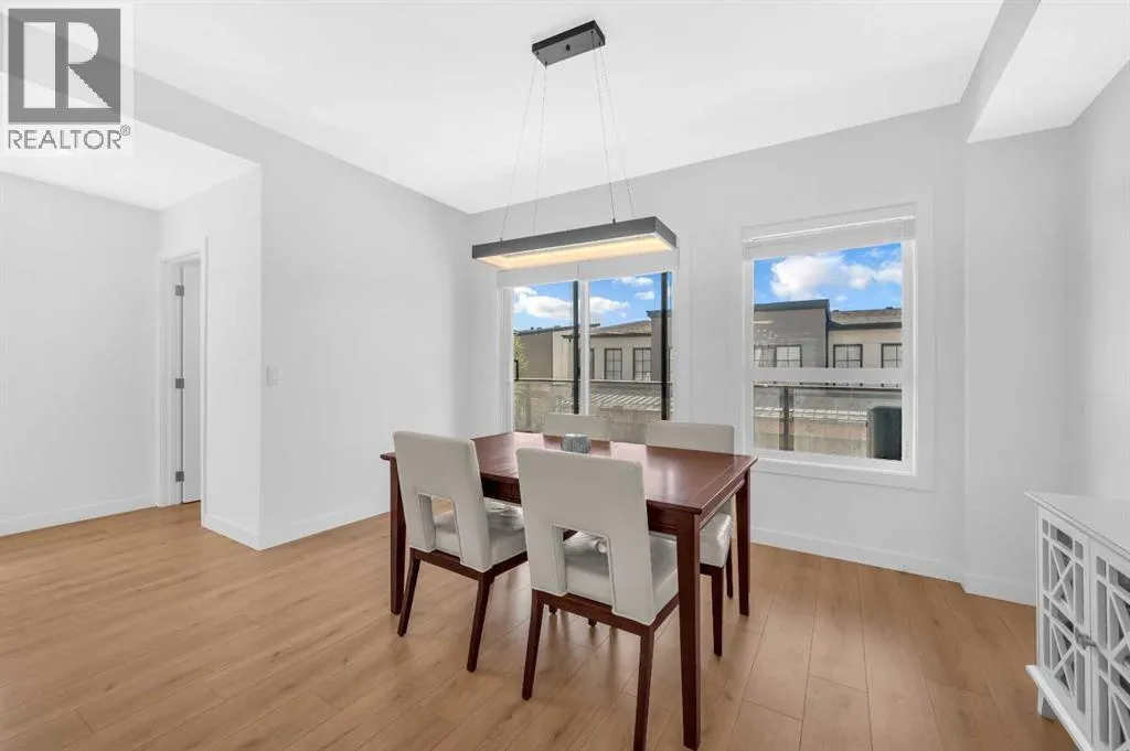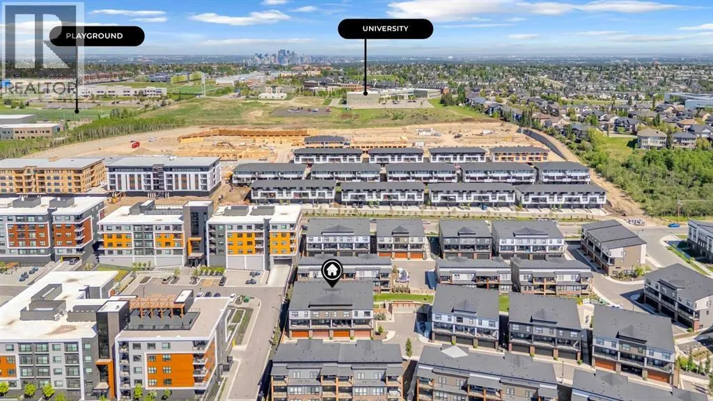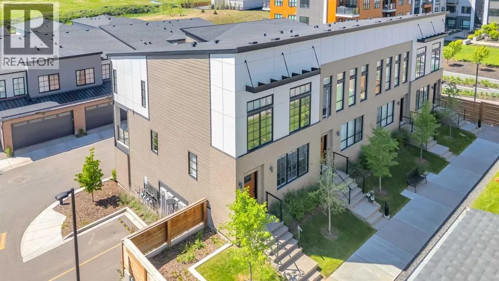 ****BEST VALUE IN SPRING BANK HILLS**** Luxury Townhouse in Springbank Hills. This stunning corner unit townhouse boasts over 1,600 sq ft of living space, featuring an open floor plan with luxury vinyl plank flooring throughout the house. The gallery-style kitchen is a chef's paradise, equipped with upgraded ceiling-high cabinets, built in refrigerator, quartz countertops, gas cooking range and a massive center island. The spacious living room and extra windows offer plenty of natural light. The dining area can comfortably fit a 6-seat table, leading to oversized patio provide ample space to entertain family and friends, creating unforgettable memories.. The upper level features an oversized master bedroom with a bath oasis, customized shower with glass enclosure, and walk-in closet, also has a dedicated office space. A second primary bedroom with unobstructed view of rocky mountain, walk-in closet and ensuite bathroom provides ample space for family members. Washer/dryer on the upper level add to the convenience. This townhouse also features a heated triple car garage, central air conditioning, right beside visitor parking and well managed complex. Located in the sought-after Springbank Hills community, residents enjoy easy access to top-rated schools, universities, shopping centers, and Stoney Trail. Don't miss this incredible opportunity to own a luxury townhouse in one of Calgary's most desirable communities! (id:27476)
