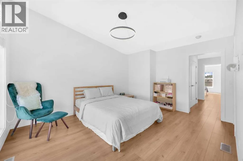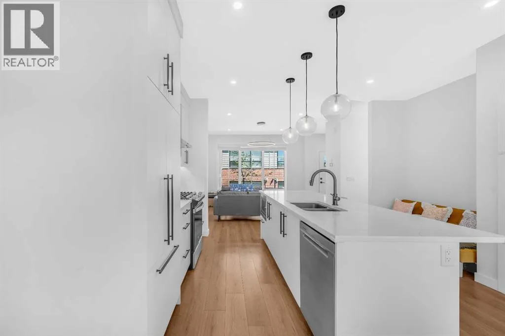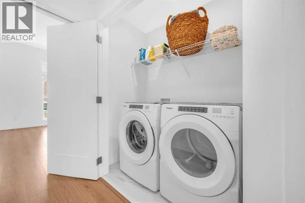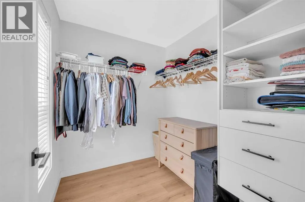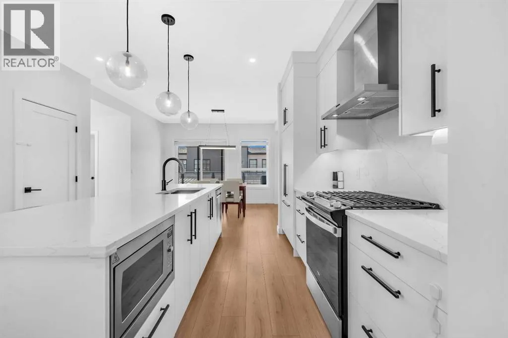 ****BEST VALUE IN SPRING BANK HILLS**** Luxury Townhouse in Springbank Hills. This stunning corner unit townhouse boasts over 1,600 sq ft of living space, featuring an open floor plan with luxury vinyl plank flooring throughout the house. The gallery-style kitchen is a chef's paradise, equipped with upgraded ceiling-high cabinets, built in refrigerator, quartz countertops, gas cooking range and a massive center island. The spacious living room and extra windows offer plenty of natural light. The dining area can comfortably fit a 6-seat table, leading to oversized patio provide ample space to entertain family and friends, creating unforgettable memories.. The upper level features an oversized master bedroom with a bath oasis, customized shower with glass enclosure, and walk-in closet, also has a dedicated office space. A second primary bedroom with unobstructed view of rocky mountain, walk-in closet and ensuite bathroom provides ample space for family members. Washer/dryer on the upper level add to the convenience. This townhouse also features a heated triple car garage, central air conditioning, right beside visitor parking and well managed complex. Located in the sought-after Springbank Hills community, residents enjoy easy access to top-rated schools, universities, shopping centers, and Stoney Trail. Don't miss this incredible opportunity to own a luxury townhouse in one of Calgary's most desirable communities! (id:27476)