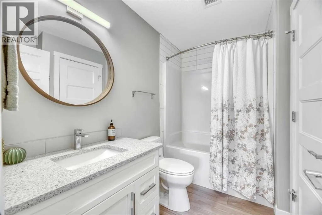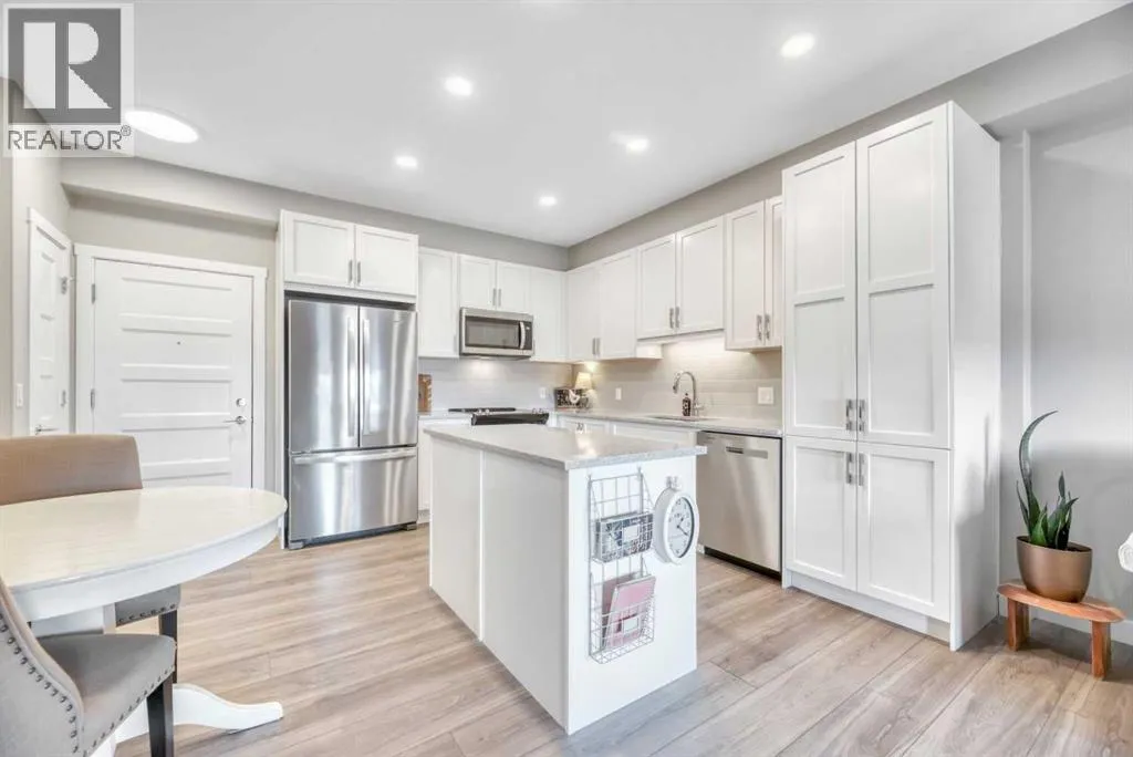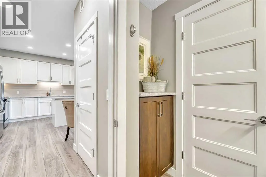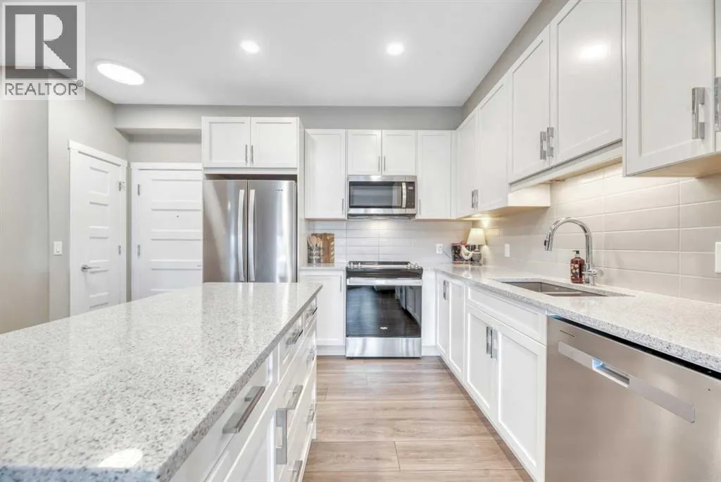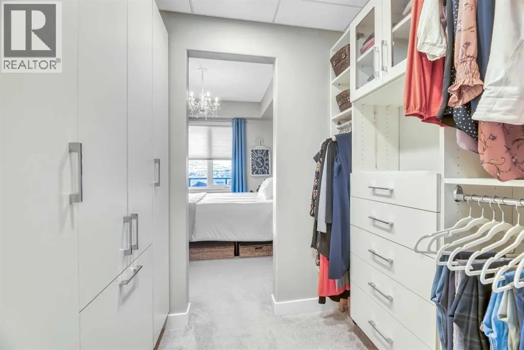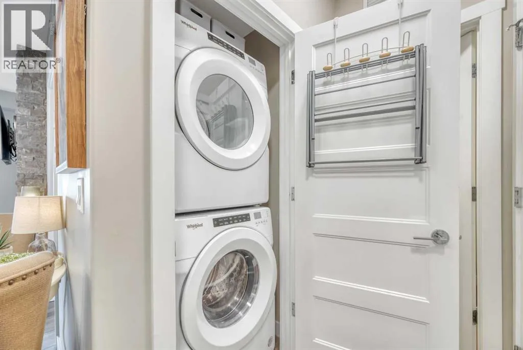 Beautifully upgraded top-floor 1-bedroom, 1-bathroom condo in the sought-after Bow360 building, located in the prestigious community of Wolf Willowâa premier golf course neighbourhood in SE Calgary. Perfectly suited for a first-time buyer or young professional, this stunning home offers a bright and airy open-concept layout with 9-foot ceilings, large windows, and modern designer finishes throughout. The kitchen features crisp white cabinetry, upgraded flooring, and a clean, contemporary aesthetic that flows seamlessly into the living space. Cozy up by the elegant stone-faced gas fireplace or step out onto your spacious west-facing balcony to enjoy breathtaking sunset views. Additional features include in-suite laundry, air conditioning, titled underground parking, secure storage, and custom built-in closet organizers for added functionality and style. Low condo fees include everything except electricity, making this an easy and affordable lifestyle choice. Surrounded by incredible amenities, including the Blue Devil Golf Course, scenic walking and biking trails, and quick access to Stoney Trail and Deerfoot Trailâthis location truly has it all. This is the perfect blend of style, comfort, and convenienceâan ideal place to call home. (id:27476)