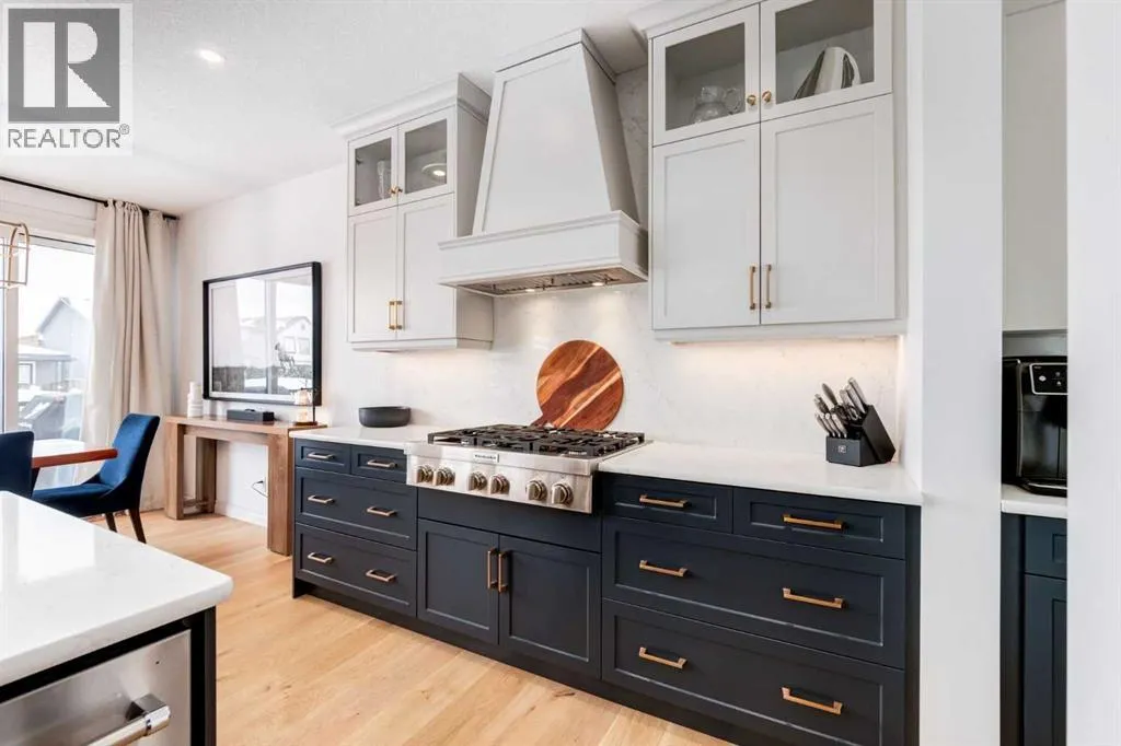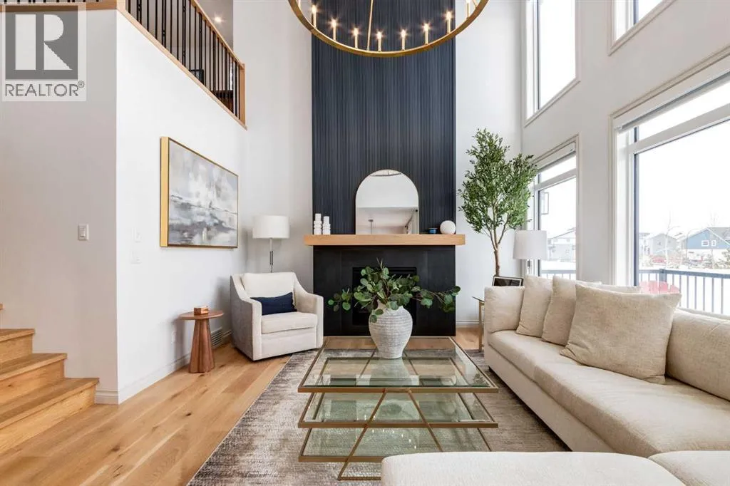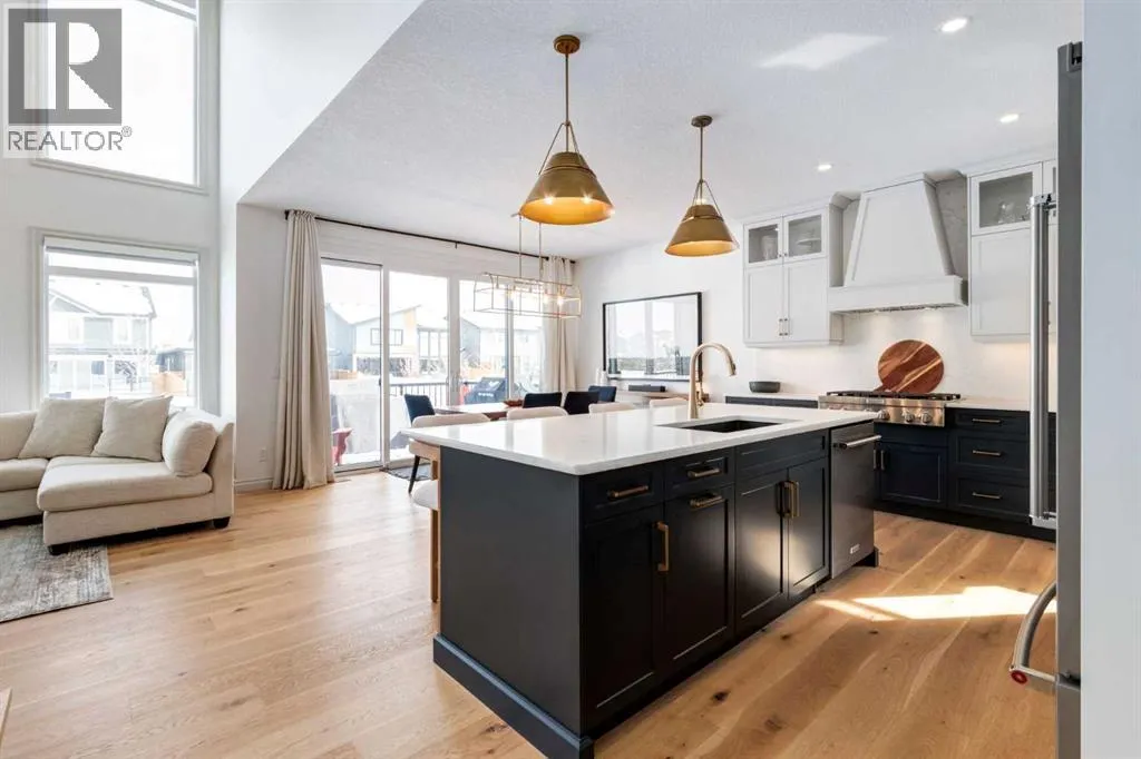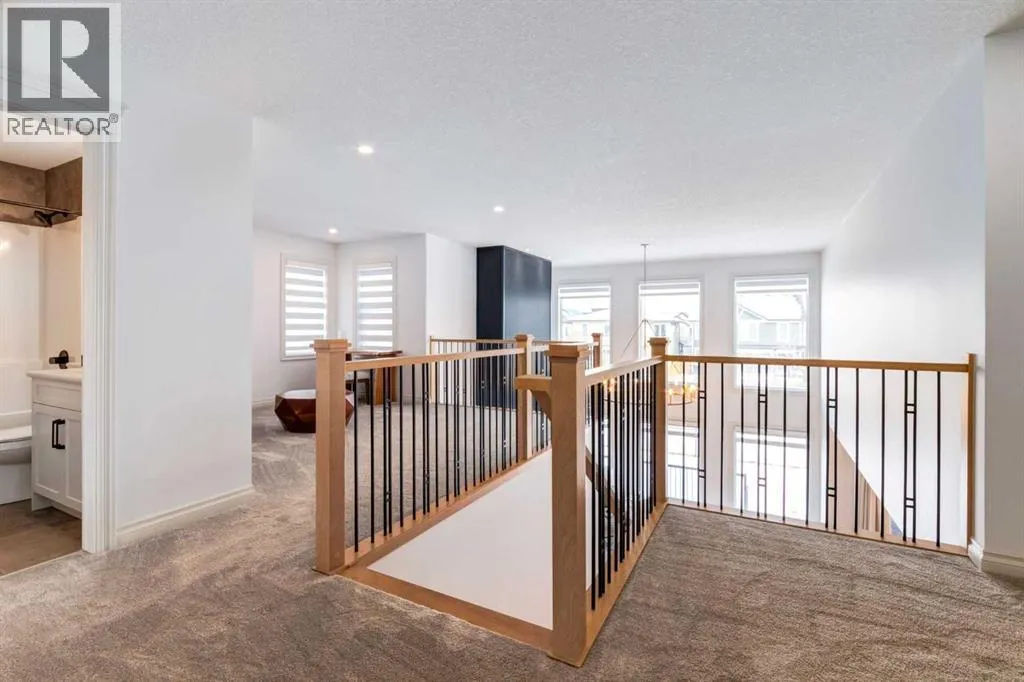 Welcome to this exceptional estate home in the sought after community of Rockland Park, masterfully built by Morrison Homes, offering a perfect blend of luxury and functionality and backing onto greenspace for added privacy and a serene setting. From the moment you step inside, you are welcomed by rich hardwood floors that flow throughout the main level, setting the tone for the homeâs exceptional craftsmanship. A spacious office/den, enclosed by striking double glass doors, provides the perfect space to work or unwind. As you continue, the home opens dramatically into a breathtaking open-to-above living room, where soaring ceilings and a stunning floor-to-ceiling fireplace with custom panelling create a true showpiece. Expansive windows flood the space with natural light, while motorized blinds throughout add an extra layer of comfort and convenience. The beautifully appointed kitchen is truly the heart of the home, showcasing custom cabinetry with elegant gold hardware and upgraded stainless steel appliances, perfect for the chef in the family. A custom wood hood fan serves as a striking focal point, while the butlerâs pantry, complete with a beverage fridge, and a separate walk-in pantry offer exceptional storage and functionality, adding both style and convenience. The space flows effortlessly into the spacious dining area and out onto the full width deck, creating the perfect setting to gather with family and friends. A functional mudroom with built-in lockers and a 2-piece powder room featuring premium finishes completes the main level. Upstairs features a bright and versatile bonus room open to below, a well designed laundry room with a folding counter, two generously sized secondary bedrooms, and a luxurious primary retreat complete with a spa-inspired ensuite and a custom walk-in closet with built-ins. The fully finished basement further expands your living space, offering a theatre area, a wet bar complete with sink and fridge and an additional bedroom or gym, featuring a large walk-in closet, upgraded electrical, and gym-ready flooring. Additional highlights include dual furnaces and two air conditioning units for year-round comfort. As a standout feature, this home was selected by Morrison Homes to be professionally photographed for the BILD Awards, an acknowledgment of its exceptional design and craftsmanship. This is a rare opportunity to own a truly turn-key, highly upgraded estate home, still under warranty, in one of Calgaryâs most desirable new communities. (id:27476)