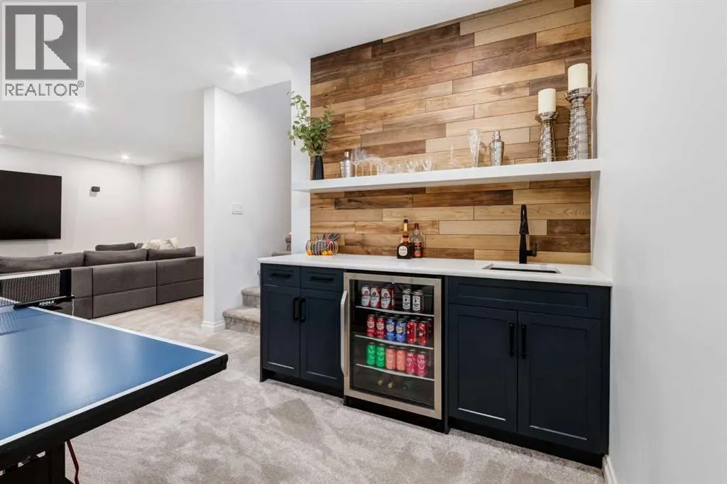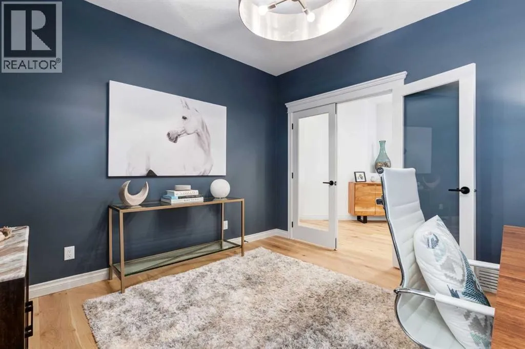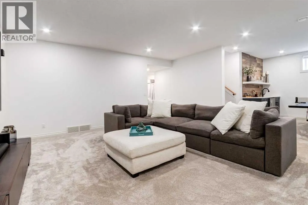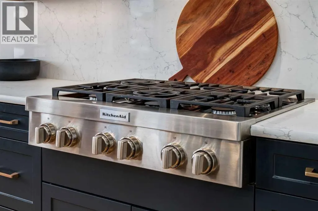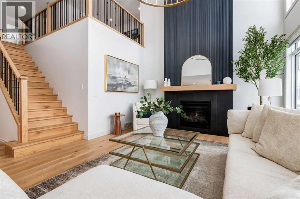 Welcome to this exceptional estate home in the sought after community of Rockland Park, masterfully built by Morrison Homes, offering a perfect blend of luxury and functionality and backing onto greenspace for added privacy and a serene setting. From the moment you step inside, you are welcomed by rich hardwood floors that flow throughout the main level, setting the tone for the homeâs exceptional craftsmanship. A spacious office/den, enclosed by striking double glass doors, provides the perfect space to work or unwind. As you continue, the home opens dramatically into a breathtaking open-to-above living room, where soaring ceilings and a stunning floor-to-ceiling fireplace with custom panelling create a true showpiece. Expansive windows flood the space with natural light, while motorized blinds throughout add an extra layer of comfort and convenience. The beautifully appointed kitchen is truly the heart of the home, showcasing custom cabinetry with elegant gold hardware and upgraded stainless steel appliances, perfect for the chef in the family. A custom wood hood fan serves as a striking focal point, while the butlerâs pantry, complete with a beverage fridge, and a separate walk-in pantry offer exceptional storage and functionality, adding both style and convenience. The space flows effortlessly into the spacious dining area and out onto the full width deck, creating the perfect setting to gather with family and friends. A functional mudroom with built-in lockers and a 2-piece powder room featuring premium finishes completes the main level. Upstairs features a bright and versatile bonus room open to below, a well designed laundry room with a folding counter, two generously sized secondary bedrooms, and a luxurious primary retreat complete with a spa-inspired ensuite and a custom walk-in closet with built-ins. The fully finished basement further expands your living space, offering a theatre area, a wet bar complete with sink and fridge and an additional bedroom or gym, featuring a large walk-in closet, upgraded electrical, and gym-ready flooring. Additional highlights include dual furnaces and two air conditioning units for year-round comfort. As a standout feature, this home was selected by Morrison Homes to be professionally photographed for the BILD Awards, an acknowledgment of its exceptional design and craftsmanship. This is a rare opportunity to own a truly turn-key, highly upgraded estate home, still under warranty, in one of Calgaryâs most desirable new communities. (id:27476)