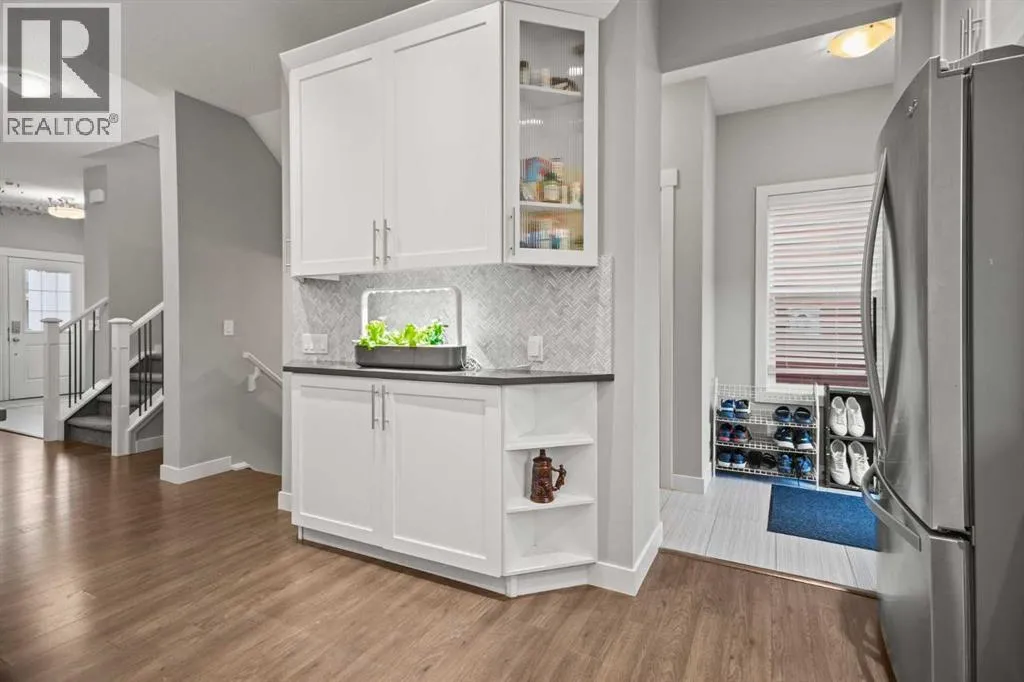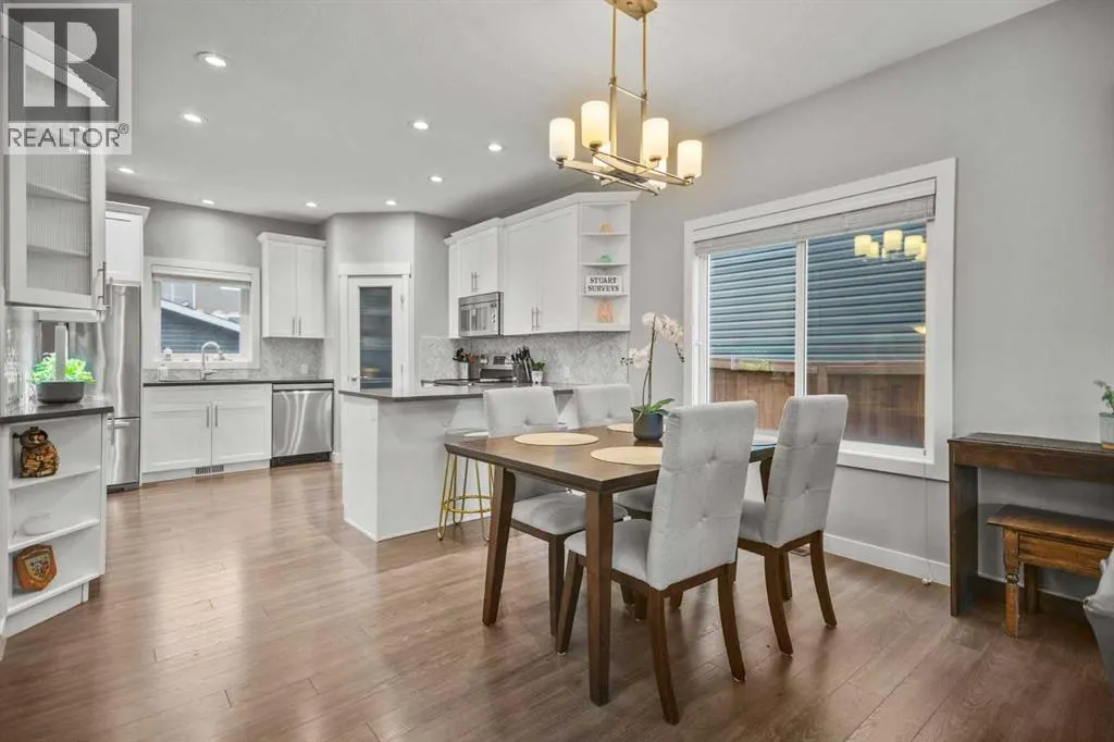*OPEN HOUSE SATURDAY APRIL 4th from 12pm to 2pm * Welcome to 412 Evanston Way NW â a beautifully upgraded and FULLY DEVELOPED detached home offering over 2,200 SQ.FT of stylish living space in one of Calgaryâs most sought-after, family-friendly communities. Perfectly positioned just steps from schools, parks, playgrounds, and everyday amenities, this home combines comfort, function, and TIMELESS DESIGN.The bright, open-concept main floor showcases a welcoming living area centered around a cozy gas FIREPLACE, flowing seamlessly into a designer kitchen with crisp white shaker cabinetry, a modern HERRINGBONE backsplash, extended breakfast bar, walk-in PANTRY, and a full stainless steel appliance package including an induction stove and a new dishwasher. A tiled front foyer and rear mudroom add everyday convenience and organization for busy family life.Upstairs, discover three generous bedrooms, including a west-facing primary retreat featuring a spa-inspired ensuite with DUAL SINKS, soaker tub, glass walk-in shower, and a spacious walk-in closet. The upper level also includes a 4-piece main bath and a convenient laundry room.The professionally finished basement, completed in recent years, extends your living space with a large family or recreation area, a beautiful full bathroom, and a 4th BEDROOM â ideal for guests or growing families.Step outside to enjoy the sunny WEST-FACING BACKYARD and an OVERSIZED DOUBLE GARAGE, offering plenty of room for vehicles, tools, and storage. The BRAND NEW ROOF (10 year warranty), gutters and vinyl siding were all just recently completed. Set in the heart of Evanston, this home offers a true sense of community with lush green spaces, walking paths, and quick access to Evanston Towne Centre and Creekside Shopping Centre. This is move-in ready living at its finestâclose to everything and perfectly connected via Stoney Trail for effortless commuting across the city. (id:27476)
