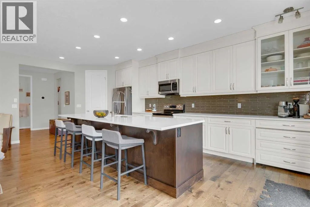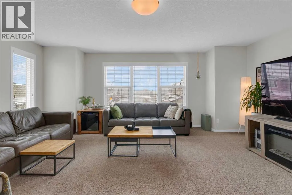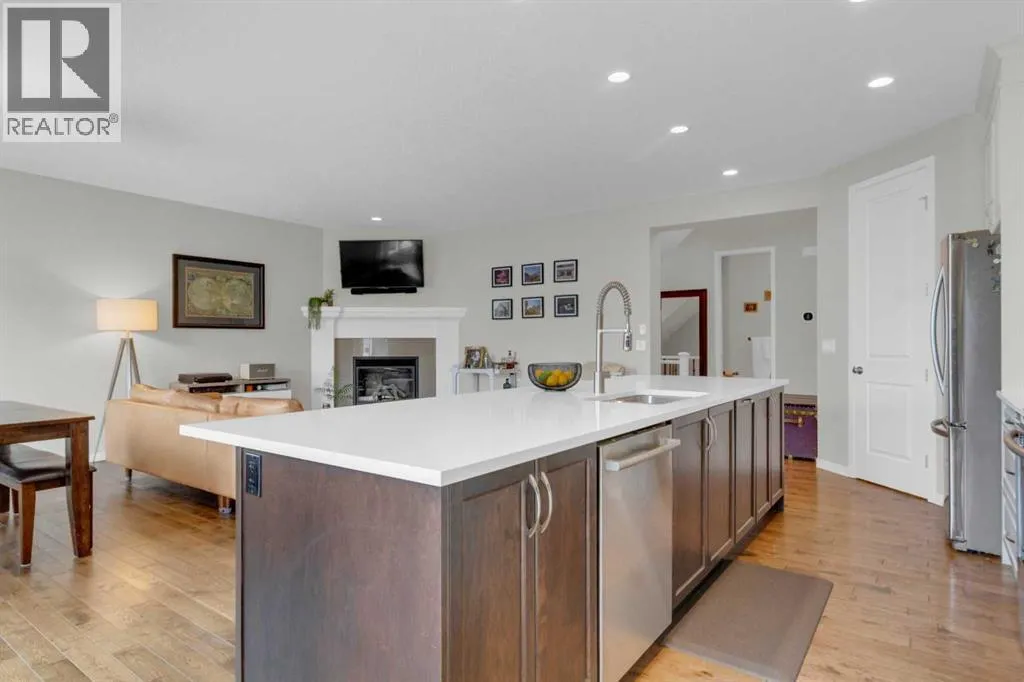 This is a property that is sure to impress! The main foyer welcomes you and is just a suggestion of the caliber of this home. This home presents a beautifully laid out, open floor plan and you will love the kitchen which offers a real "WOW" factor with it's abundance of cabinets and massive island with breakfast bar seating! The ambiance is apparent throughout the home with its modern decor and the main level featuring engineered hardwood floors, an open dining area and a spacious great room to relax and enjoy the warmth of the corner fireplace, all open to the kitchen. On the upper level, there is everything you would expect... a spacious bonus room with lovely large windows offers the perfect area for the family to "kick back" and watch your favourite movies or enjoy game nights! The primary bedroom offers a 5 piece spa like ensuite, featuring double sinks, a stand alone shower and relaxing soaker tub. You will also appreciate the organization that the wall units provide in the walk in closet, which are included. Two additional bedrooms and a 4 piece bathroom complete this upper level. Sliding glass doors off the kitchen open to a two tiered deck, on the upper level there is a gas line which will provide the perfect location for your barbeque, then step down to the lower level which offers a bit more privacy and plenty of room for patio furniture. Head down to the lower level where you will find a large open area with roughed in plumbing for future development. A few more features to be aware of, are the triple pane windows, concrete walkway to the rear yard, pie shaped lot and walk through pantry. This property checks all the boxes and is a must see! (id:27476)