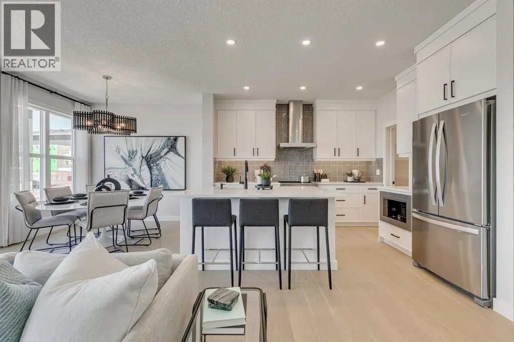 Welcome to 142 Belmont Passage SW, a beautifully designed brand-new two-storey home by Trico Homes located in the growing southwest community of Belmont. Thoughtfully crafted with modern finishes, a functional open-concept layout, and a fully finished legal basement suite, this home offers exceptional flexibility for families, investors, or those seeking multi-generational living.The main level welcomes you with high ceilings and durable engineered hardwood flooring, creating a bright and inviting atmosphere throughout the open floor plan. The spacious living room features a stylish electric fireplace, adding warmth and character to the main gathering space. The contemporary kitchen is designed for both everyday convenience and entertaining, showcasing quartz countertops, a large kitchen island with breakfast bar seating, sleek cabinetry, and modern appliances. The adjoining dining area provides ample space for family meals or hosting friends. Step outside to the rear deck with BBQ gas line, perfect for outdoor dining and summer gatherings.Upstairs, the home continues to impress with thoughtfully designed living spaces. The primary bedroom retreat offers a relaxing sanctuary complete with a walk-in closet and private ensuite featuring a double vanity and soaking tub. Additional bedrooms provide comfortable accommodation for family members or guests, while convenient upper-level laundry enhances everyday functionality.One of the standout features of this home is the fully finished legal basement suite with separate entrance, providing excellent potential for rental income or extended family living. The additional living space increases the homeâs versatility and long-term value.Additional highlights include closet organizers, quartz counters throughout, an open-concept design, and a double attached garage with parking for multiple vehicles. The property also includes a $1,000 landscaping certificate, helping you complete the outdoor space to your liking.Sit uated in the family-friendly community of Belmont, residents enjoy access to parks, playgrounds, walking and biking paths, nearby schools, and convenient shopping options. The communityâs location provides easy access to major roadways, making commuting throughout Calgary simple while maintaining a quiet suburban atmosphere.With modern design, a legal suite, and an excellent location, 142 Belmont Passage SW presents an outstanding opportunity to own a new home with built-in investment potential. (id:27476)