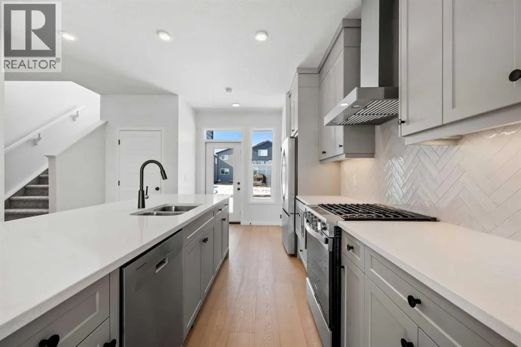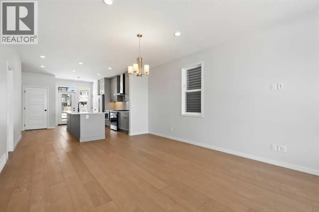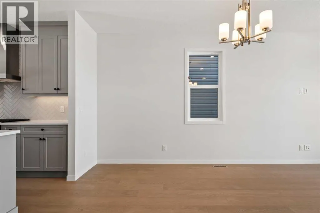 *OPEN HOUSE: Saturday, April 4th from 12-2PM* Located in the vibrant and nature-inspired community of Wolf Willow, 114 Wolf Hollow Terrace SE offers a beautifully designed brand-new two-storey home that blends modern finishes with a functional layout ideal for todayâs lifestyle. With 1,585 sq. ft. of thoughtfully planned living space and immediate possession available, this home is perfect for buyers seeking contemporary comfort in a well-connected southeast Calgary neighbourhood.The main level features a bright and welcoming open-concept design enhanced by high ceilings, large windows, and durable engineered hardwood flooring throughout the primary living areas. The kitchen is both stylish and practical, showcasing quartz countertops, a central island with breakfast bar seating, modern cabinetry, and a gas stove, making it ideal for everyday cooking and entertaining. The adjoining dining and living areas create a seamless flow, providing comfortable space for gatherings or relaxing evenings at home. A BBQ gas line adds convenience for future outdoor enjoyment.Upstairs, the home offers well-appointed living spaces designed for comfort and flexibility. The primary bedroom retreat includes a walk-in closet with built-in organizers and a private ensuite featuring a double vanity and soaking tub, creating a peaceful space to unwind. Additional bedrooms are generously sized and thoughtfully positioned, while upper-level laundry adds everyday convenience.The unfinished basement with separate entrance provides excellent potential for future development, allowing homeowners to customize additional living space to suit their needs. Whether envisioned as a recreation room, home office, or extended living area, the lower level offers valuable flexibility for future growth.Additional highlights include modern flooring throughout, quartz counters in the kitchen and bathrooms, a welcoming front porch, and off-street parking. The home has been designed as a no animal and no smoking property, offering a clean and well-maintained environment.Wolf Willow is known for its access to parks, playgrounds, walking and biking pathways, nearby schools, and convenient shopping, all while being close to the Bow River valley and scenic natural surroundings. The community offers a balance of outdoor recreation and urban accessibility, making it an increasingly popular choice for homeowners.With its modern design, quality craftsmanship, and opportunity for future customization, 114 Wolf Hollow Terrace SE presents an excellent opportunity to own a new home in one of Calgaryâs most desirable emerging communities. (id:27476)