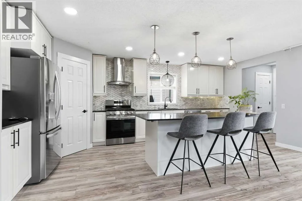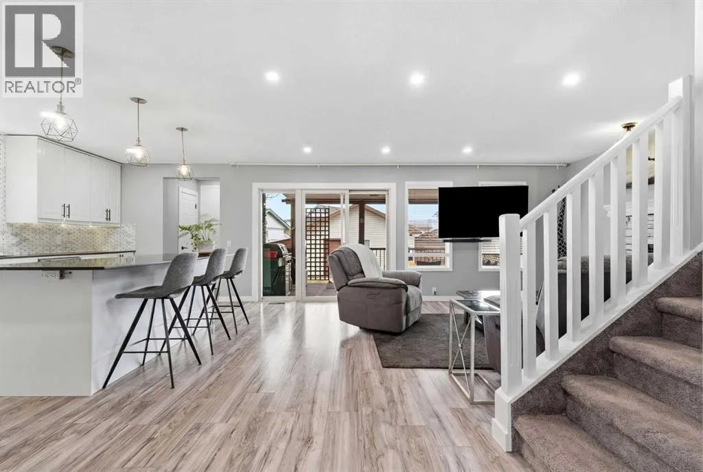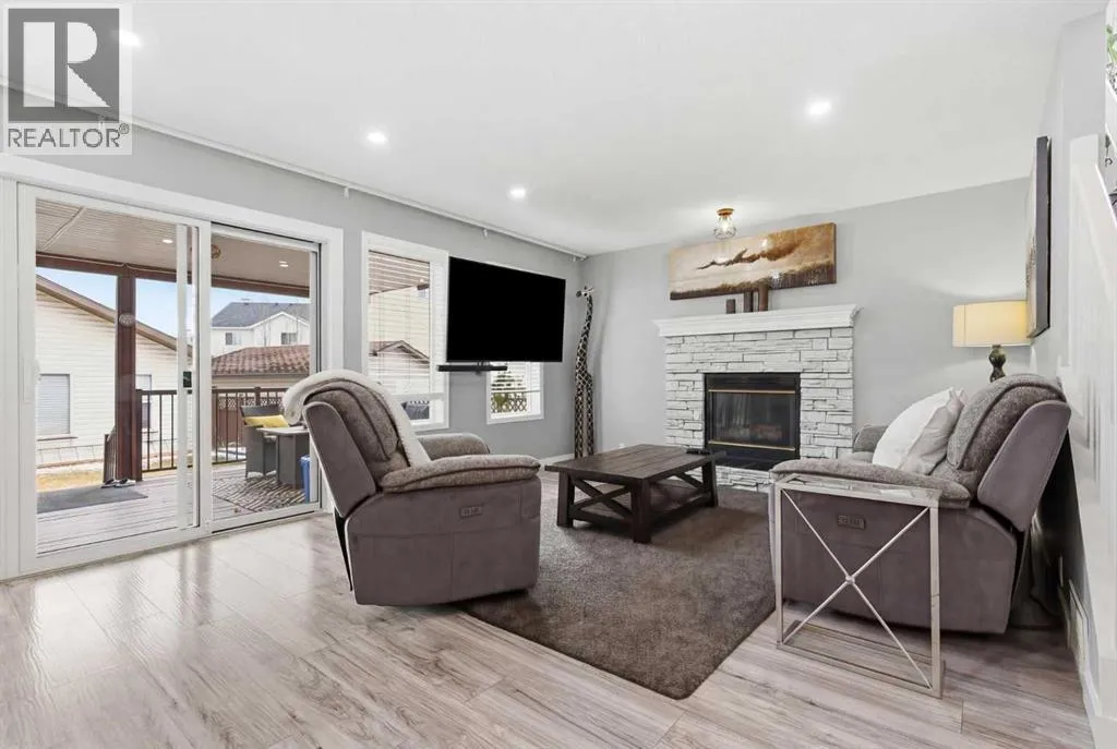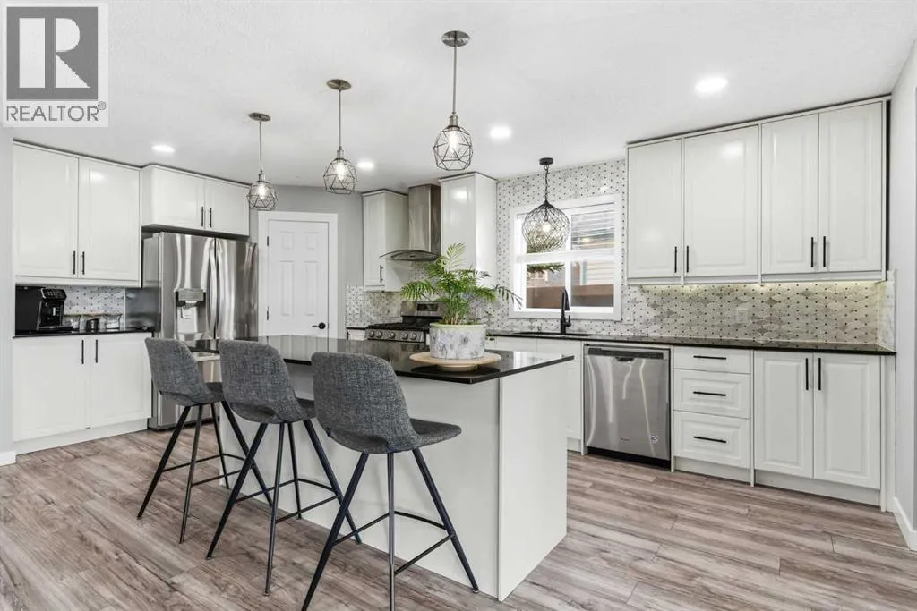 Welcome to the charming and family-friendly community of McKenzie Towne. This beautifully maintained 4-bedroom, 3.5-bathroom home is ideally situated on a quiet street facing Prestwick Park, offering plenty of green space right outside your door and just a short stroll to the nearby pond.The main floor offers a bright and open-concept layout, featuring an updated kitchen with modern finishes, white cabinetry, and ample workspace. The spacious living room is filled with natural light from large windows and anchored by a cozy gas fireplace. Youâll also find a private front office, a separate dining area, and a convenient 2-piece bathroom on the main level. Laminate flooring throughout the main floor, along with updated railings, adds a fresh and modern feel.Upstairs, the generous primary bedroom includes a walk-in closet and a beautifully updated ensuite complete with dual vanities and a stand-up shower. Two additional bedrooms, an updated 4-piece bathroom, and the convenience of an upstairs laundry room with washer and dryer complete the upper level. New carpet throughout the upper floor adds comfort and style.The fully developed basement features a separate entrance and offers excellent flexibility with a fourth bedroom, full bathroom, large flex space, and a wet bar. With laundry roughed-in for a second set, this level provides strong potential for future secondary suite development, subject to city approval and permitting.A great opportunity to own a well-cared-for home in a desirable location with parks, pathways, and everyday amenities just minutes away. Schedule your private showing today! (id:27476)