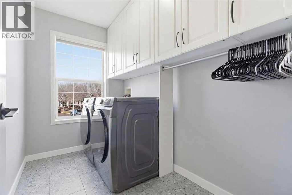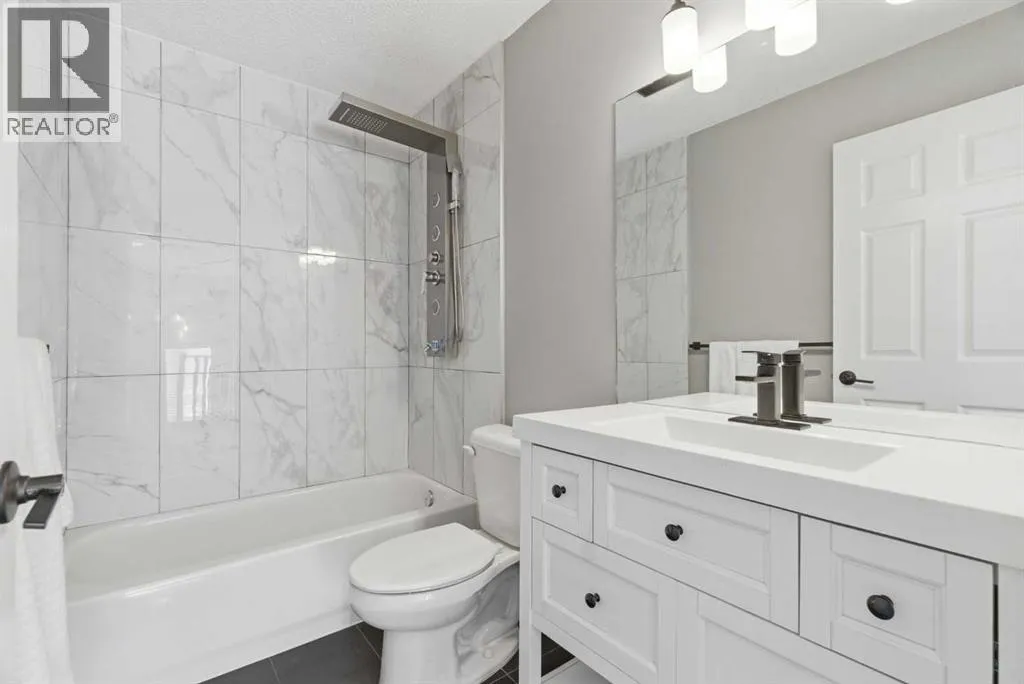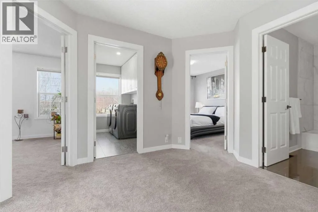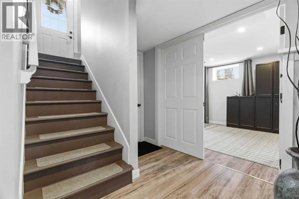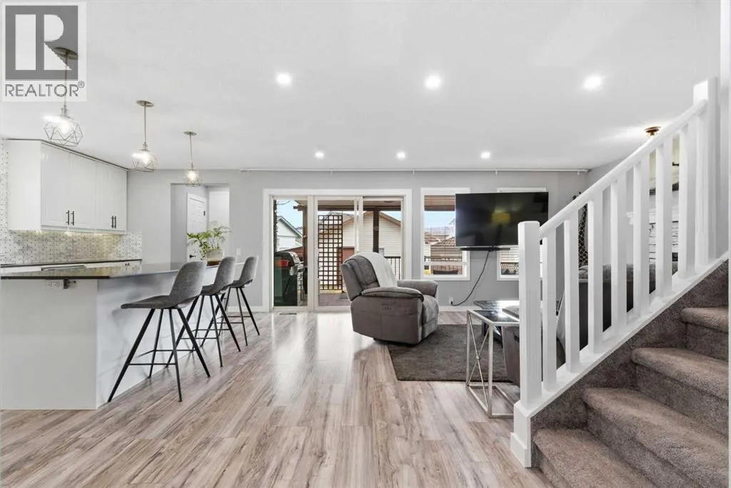 Welcome to the charming and family-friendly community of McKenzie Towne. This beautifully maintained 4-bedroom, 3.5-bathroom home is ideally situated on a quiet street facing Prestwick Park, offering plenty of green space right outside your door and just a short stroll to the nearby pond.The main floor offers a bright and open-concept layout, featuring an updated kitchen with modern finishes, white cabinetry, and ample workspace. The spacious living room is filled with natural light from large windows and anchored by a cozy gas fireplace. Youâll also find a private front office, a separate dining area, and a convenient 2-piece bathroom on the main level. Laminate flooring throughout the main floor, along with updated railings, adds a fresh and modern feel.Upstairs, the generous primary bedroom includes a walk-in closet and a beautifully updated ensuite complete with dual vanities and a stand-up shower. Two additional bedrooms, an updated 4-piece bathroom, and the convenience of an upstairs laundry room with washer and dryer complete the upper level. New carpet throughout the upper floor adds comfort and style.The fully developed basement features a separate entrance and offers excellent flexibility with a fourth bedroom, full bathroom, large flex space, and a wet bar. With laundry roughed-in for a second set, this level provides strong potential for future secondary suite development, subject to city approval and permitting.A great opportunity to own a well-cared-for home in a desirable location with parks, pathways, and everyday amenities just minutes away. Schedule your private showing today! (id:27476)