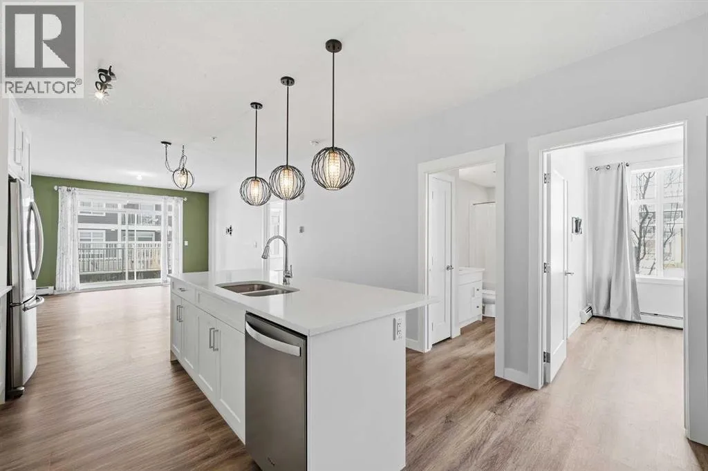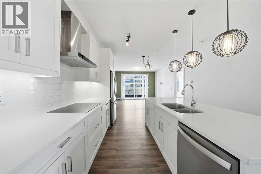 Welcome to one of Calgaryâs most sought-after lake communities Auburn Bay, where lifestyle and convenience come together beautifully. This exceptional ground-floor, corner-unit condo offers the perfect blend of comfort, style, and accessibility. Featuring 2 bedrooms, 2 bathrooms, and an expansive 25â private patio, this home is ideal for enjoying indoor-outdoor living, whether you have a four-legged companion or simply love extra outdoor space. Step inside and experience modern, high-quality finishes throughout, including luxury vinyl plank flooring, high ceilings, and an abundance of natural light from the many windows. The thoughtfully designed kitchen is a true standout, complete with a large central island, quartz countertops, stainless steel appliances, wall oven, built-in microwave, and sleek cabinetry, perfect for both everyday living and entertaining. The bright and inviting living area seamlessly connects to your private patio, while the spacious primary suite features a walk-in closet and a beautifully appointed ensuite with double sinks and an oversized glass and tile shower. A well-sized second bedroom and full bathroom offer flexibility for guests, a home office, or additional living space. This nearly-new (2020) unit also includes in-suite laundry, TWO underground parking stalls (tandem), and a separate storage locker, offers exceptional value and convenience rarely found in condo living. Additional amenity includes a secure bike storage. Located just steps from walking paths, parks, shopping, dining, and Auburn Bayâs exclusive lake access, youâll enjoy year-round activities including swimming, boating, fishing, and skating. Plus, youâre only minutes from Setonâs YMCA, South Health Campus, and an array of amenities. Whether youâre a first-time buyer, downsizer, or investor, this is an incredible opportunity to own in one of Calgaryâs premier lake communities. Book your private showing today and experience the Auburn Bay lifestyle for yourse lf. (id:27476)