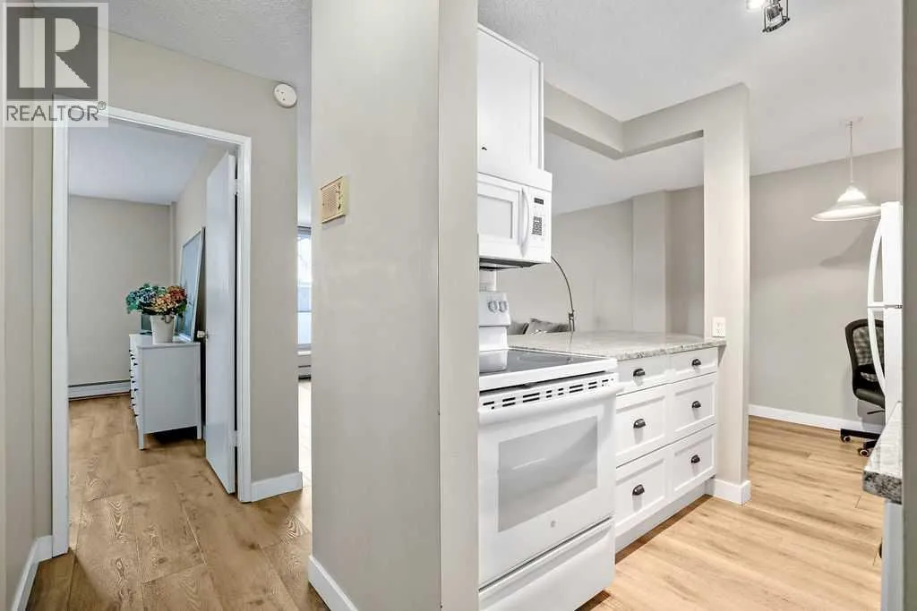 Welcome to your new home in the heart of Hillhurst! Nestled in one of Calgaryâs most vibrant inner-city communities, this stylish 1-bedroom, 1-bath condo offers the perfect blend of modern living and unbeatable urban convenience.This 645 sq. ft. residence features durable and attractive vinyl plank flooring throughout, and a bright, open-concept layout highlighted by massive windows that flood the space with natural light. The updated kitchen showcases newer cabinetry with ample storage, beautiful stone countertops, and a functional design ideal for both everyday living and entertaining. Enjoy a top-floor location overlooking Riley Park, complete with stunning downtown city viewsâa true million-dollar view without the price tag. The fully renovated 4-piece bathroom features a deep soaker tub, striking tile work, and a large vanity offering excellent storage. Located just steps from Kensingtonâs shops, restaurants, and cafés, walking distance to the CTrain, and only minutes from SAIT (5 minutes) and the University of Calgary (10 minutes), this well-managed complex is ideal for first-time buyers, professionals, or investors looking to enter the rental market. Whether youâre seeking a vibrant urban lifestyle or a smart investment in a prime inner-city location, this Hillhurst condo delivers on location, views, and value. (id:27476)