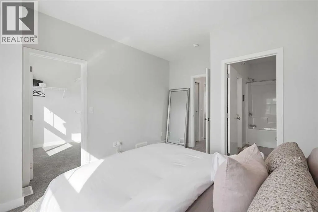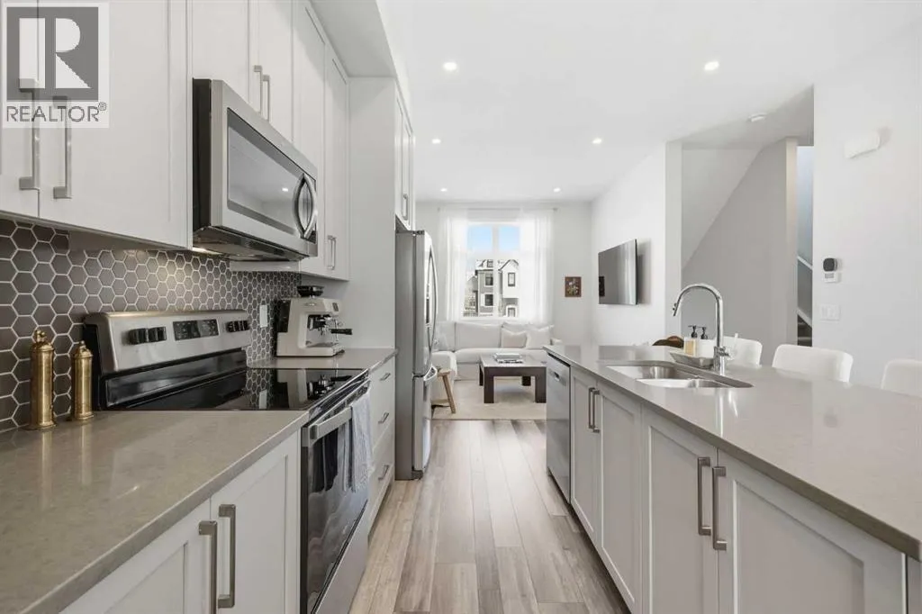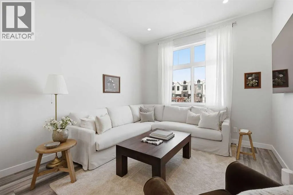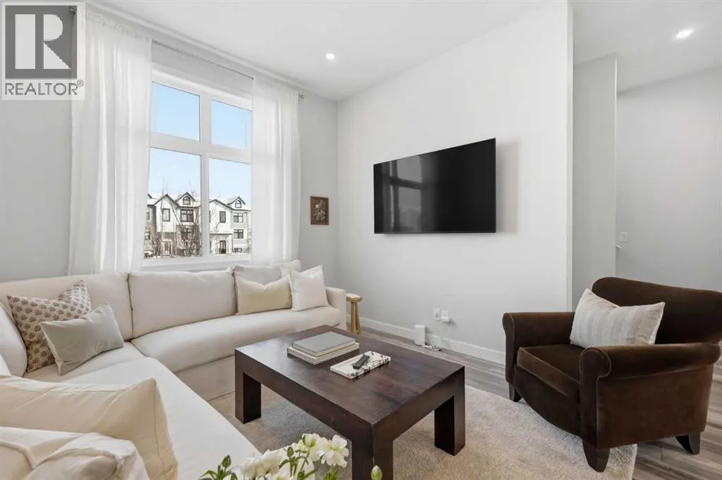 OPEN HOUSE SATURDAY, APRIL 4TH FROM 11 AM - 1 PM. Located in Douglasdaleâs sought after Les Jardins community, this impeccably finished and stylish 2 bedroom, 2.5 bath townhome with a double attached garage offers exceptional convenienceâjust minutes from the shops and services of Douglas Square and Quarry Park. The open and airy main level features vinyl plank flooring and high ceilings, creating a bright, welcoming atmosphere. A spacious living area flows seamlessly into the beautifully appointed kitchen, complete with quartz countertops, a large island with eating bar, generous cabinetry, and stainless steel appliances. The adjacent dining area is ideal for family meals or entertaining. A 2 piece powder room completes the main floor. Upstairs, youâll find two well sized bedrooms, a 4 piece bath, and convenient laundry facilities. The primary bedroom includes a walk through closet leading to a private 4 piece ensuite. The second bedroom enjoys direct access to the main bath, offering a thoughtful semi ensuite layout. The lower level, with direct garage access, features a versatile flex spaceâperfect for a home office, fitness area, or cozy media room. Additional highlights include central air conditioning, Smart Home technology, a sunny south facing balcony, and a charming front patio overlooking the communityâs 2 acre central garden. Residents of Les Jardins enjoy outstanding amenities, including a state of the art fitness centre with outdoor terrace, a dedicated dog park, and a community garden. Schools, shopping, public transit, and the scenic Bow River pathway system, Fish Creek Provincial Park, and Carburn Park are all close by, with quick access to Deerfoot and Glenmore Trails for effortless commuting. (id:27476)