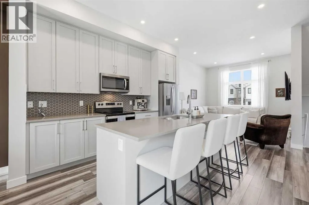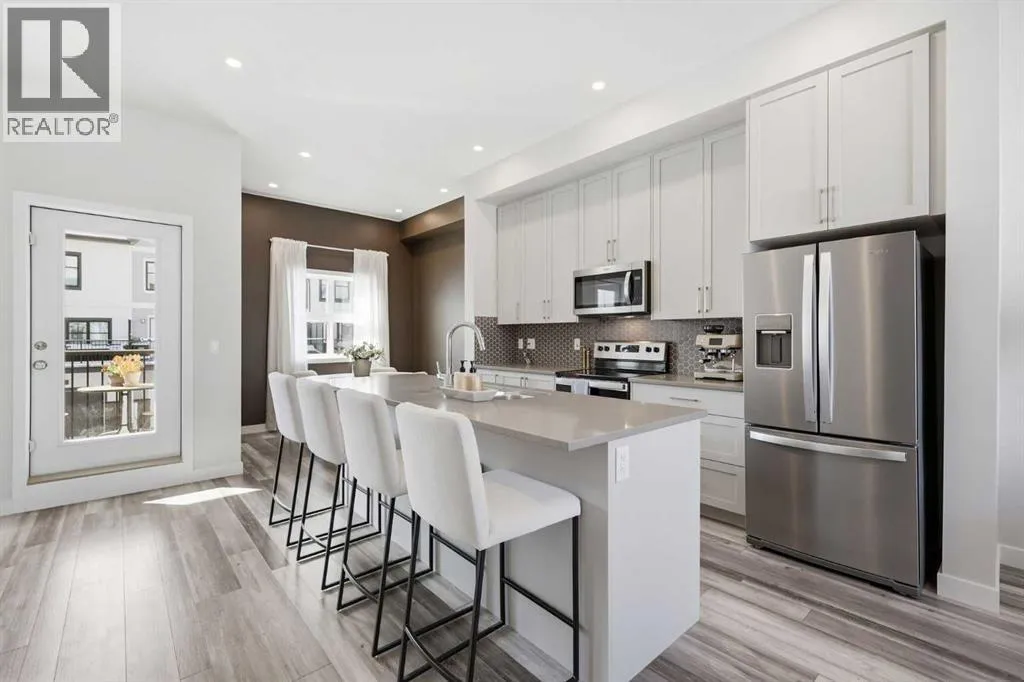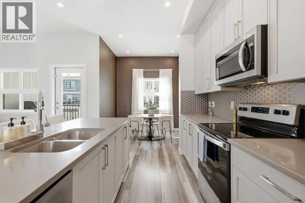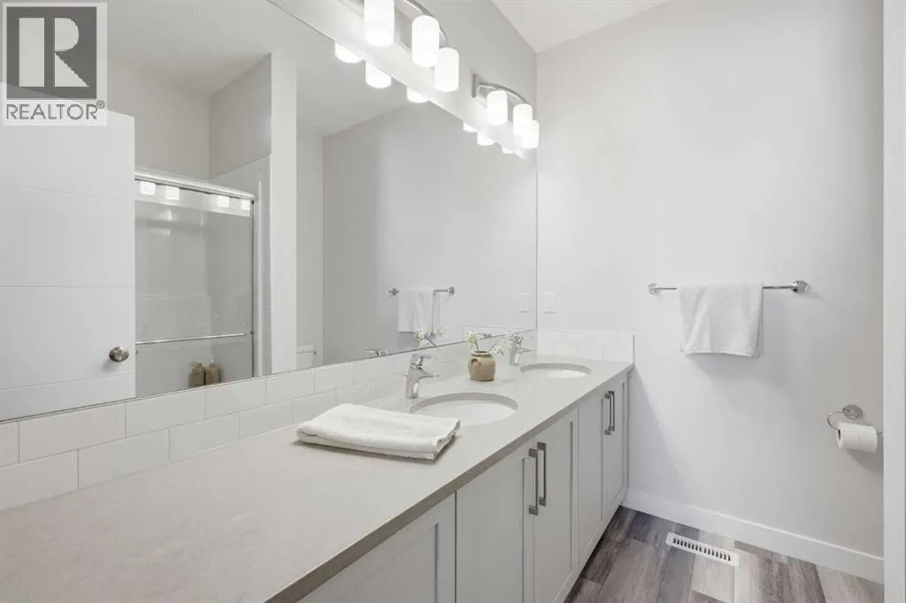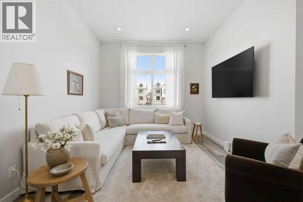 OPEN HOUSE SATURDAY, APRIL 4TH FROM 11 AM - 1 PM. Located in Douglasdaleâs sought after Les Jardins community, this impeccably finished and stylish 2 bedroom, 2.5 bath townhome with a double attached garage offers exceptional convenienceâjust minutes from the shops and services of Douglas Square and Quarry Park. The open and airy main level features vinyl plank flooring and high ceilings, creating a bright, welcoming atmosphere. A spacious living area flows seamlessly into the beautifully appointed kitchen, complete with quartz countertops, a large island with eating bar, generous cabinetry, and stainless steel appliances. The adjacent dining area is ideal for family meals or entertaining. A 2 piece powder room completes the main floor. Upstairs, youâll find two well sized bedrooms, a 4 piece bath, and convenient laundry facilities. The primary bedroom includes a walk through closet leading to a private 4 piece ensuite. The second bedroom enjoys direct access to the main bath, offering a thoughtful semi ensuite layout. The lower level, with direct garage access, features a versatile flex spaceâperfect for a home office, fitness area, or cozy media room. Additional highlights include central air conditioning, Smart Home technology, a sunny south facing balcony, and a charming front patio overlooking the communityâs 2 acre central garden. Residents of Les Jardins enjoy outstanding amenities, including a state of the art fitness centre with outdoor terrace, a dedicated dog park, and a community garden. Schools, shopping, public transit, and the scenic Bow River pathway system, Fish Creek Provincial Park, and Carburn Park are all close by, with quick access to Deerfoot and Glenmore Trails for effortless commuting. (id:27476)