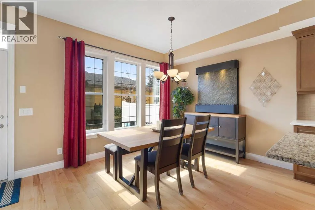 This executive-style townhome in prime Quarry Park features 3 bedrooms, 3.5 bathrooms, a double detached garage, fully finished basement, and a fenced south-facing yard.Designed for the discerning buyer, this home offers a rare dual primary bedroom layout upstairs, each with large closets and private access, along with the convenience of upper-level laundry. The fully developed basement adds a third bedroom, full bathroom, spacious recreation room, and additional storage, ideal for guests or extended living.The main floor is bright and open with soaring 9â ceilings and large windows that fill the space with natural light. The kitchen is beautifully appointed with maple shaker cabinetry, granite and quartz countertops, stainless steel appliances including a gas stove, and a flush eating bar. Thoughtful upgrades include maple hardwood flooring, pendant and pot lighting, under-cabinet lighting, decora switches, and a cozy gas fireplace with built-in niches. The dining area is highlighted by a stunning waterfall light fixture.Step outside to your private, fenced south-facing backyard, surrounded by mature trees and a manicured green space, with direct access to your double detached garage.Unbeatable location close to shopping, restaurants, cafés, the recreation centre, Bow River pathways, parks, transit, and the future LRT. Bonus: convenient street parking right out front for guests or a third vehicle. (id:27476)