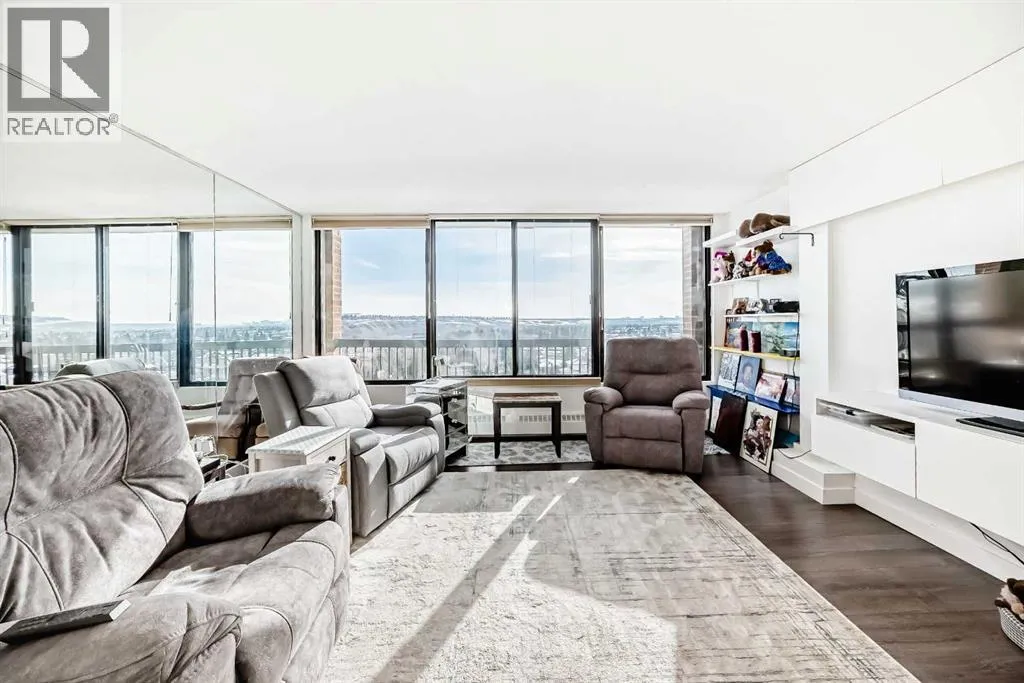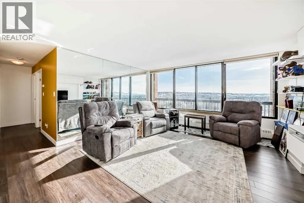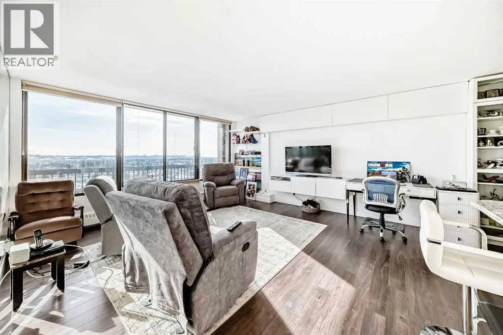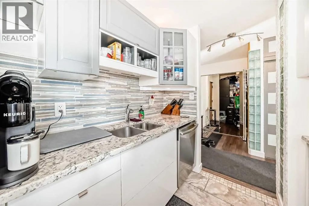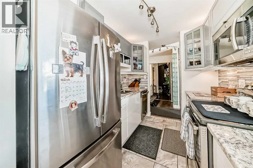 Experience stunning sunrises and sweeping views of the river, city, and valley from this exceptional home in Silverwood on the Parkâa highly desirable, well-managed adult-oriented building constructed with solid concrete and brick. Residents enjoy a secure environment with heated underground parking, visitor parking, and spacious rooftop terraces.This fully renovated, move-in-ready two-bedroom condo blends comfort with upscale design. Featuring high-end finishes and unique custom details, the unit offers under- and over-cabinet lighting, elegant glass accents, and panoramic views from every room.The bright, open-concept layout is complemented by newer flooring, expansive windows, and patio doors that lead to a Juliet balcony overlooking the Bow River Valley. The contemporary kitchen is designed to impress, complete with granite countertops, a stylish glass tile backsplash, soft-close cabinetry, GE Profile stainless steel appliances, and a functional breakfast bar.Relax in the modern bathroom featuring a marble vanity, full tub, shower, and sleek body spray system for a spa-inspired feel. The dining area includes custom LED-lit wine storage, while the living room boasts a built-in entertainment unit. Thoughtfully designed storage solutions, including modular closet systems and sliding glass doors, maximize space throughout.Condo fees cover utilities, secure underground parking, and access to amenities such as a games room, sauna, and a well-equipped fitness center. Ideally situated just steps from Bowness Park and scenic river pathways, with quick access to downtown and an easy drive west to the mountains, this property offers the perfect balance of convenience, style, and location. (id:27476)