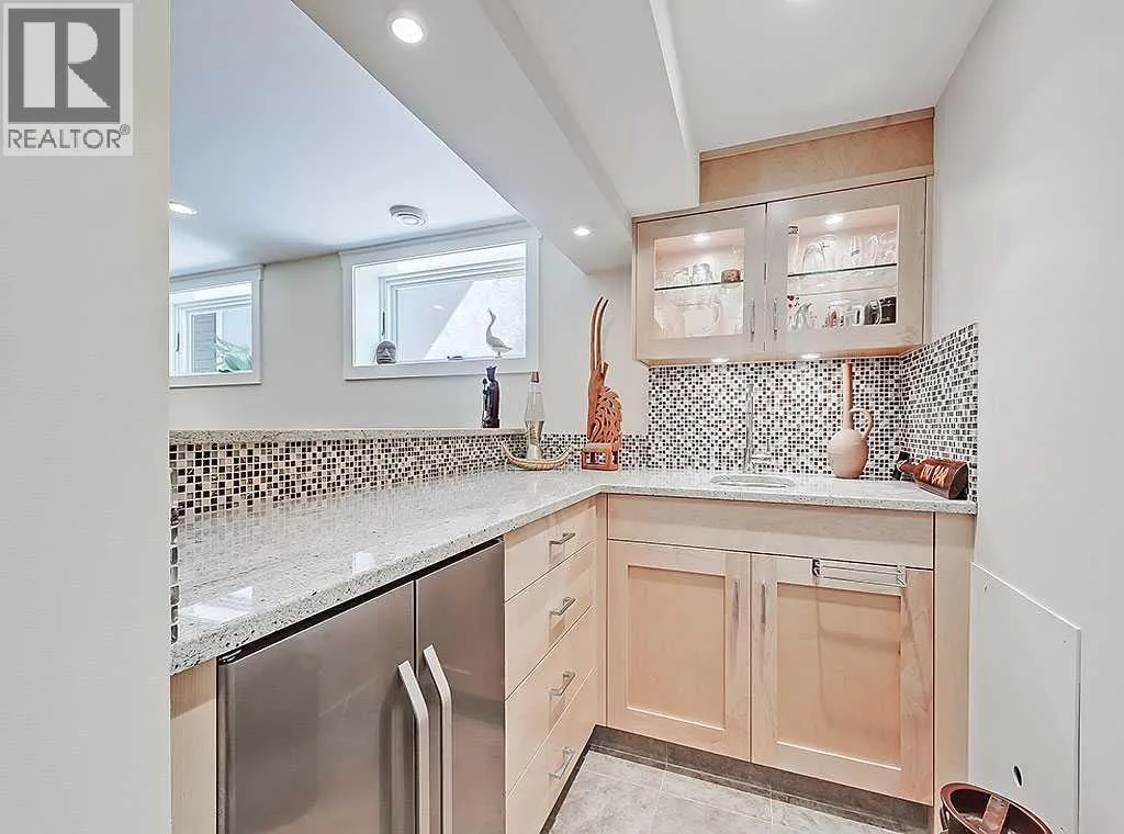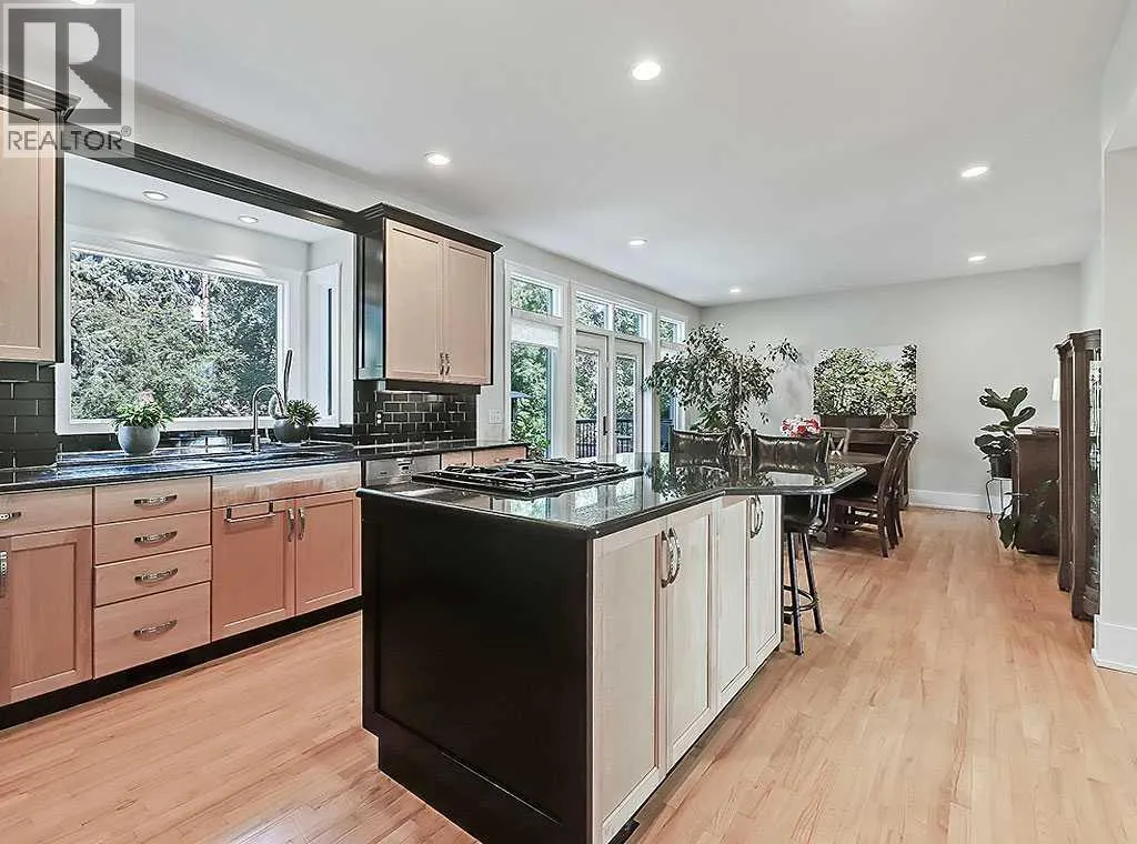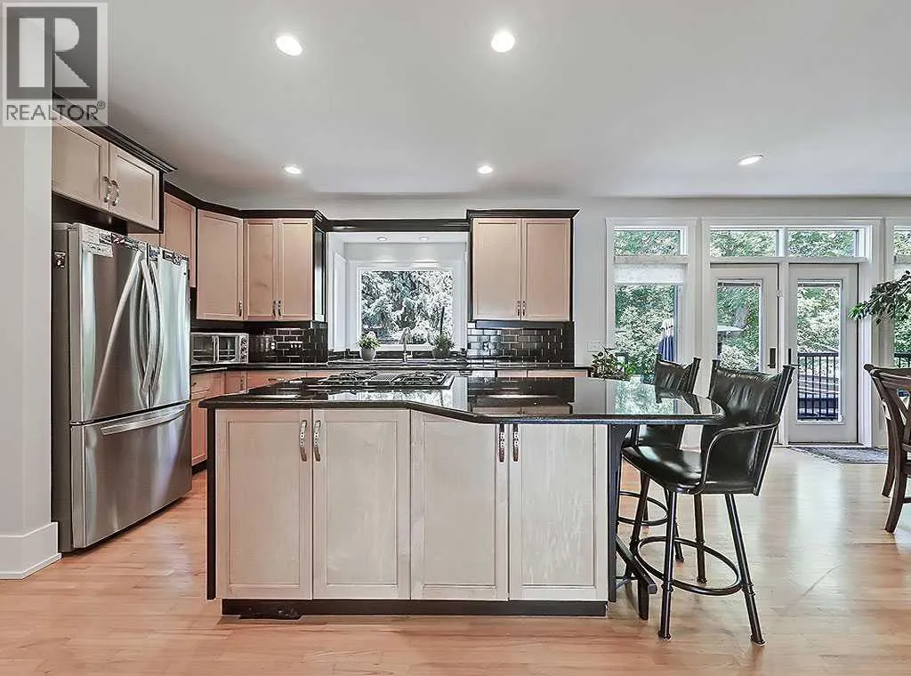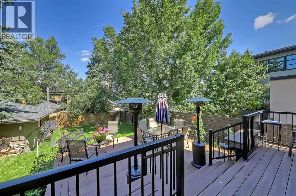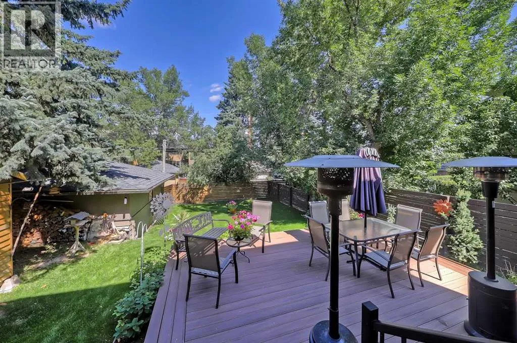 Elboya is one of Calgary's most sought-after inner-city communities, and this home is a standout even within it. With over $300,000 in capital improvements, it delivers the confidence of a new build without the wait.Recent updates include new carpet upstairs and vinyl flooring in the entryway, mudroom, and half bathroom (2025), fresh paint throughout (2025), a new furnace and hot water tank (2023), landscaping and deck (2020), a new roof (2019), and all windows and doors replaced in 2011.The main floor is bright and well-proportioned, with soaring ceilings and an open-concept layout that connects the family room (with gas fireplace) and kitchen â practical for daily life and easy for entertaining.Upstairs, four bedrooms on the same level is a layout families with young children will appreciate. The home sits on a tree-lined street steps from the neighbourhood school â the kind of location that's hard to find and harder to leave.At over 2,500 square feet above grade, and ideally positioned near Britannia Plaza, top-rated schools, and the Elbow River pathway system, this home offers a genuine inner-city lifestyle with an easy downtown commute.The basement is built for enjoyment. A spacious billiards lounge, dedicated media room with projector and surround sound, and a custom granite bar with integrated wine fridge and cold storage room make it a natural gathering space for family and friends.Outside, a massive two-tier Azek composite deck with architectural aluminum railings and an automated In-Lite lighting system sets the tone for summer evenings. The professionally landscaped yard includes a four-zone irrigation system (in the front yard) and a custom 12'x8' cedar shed with matching shake roof â thoughtful details that carry through to every corner of the property.The technical infrastructure has been comprehensively modernized: a three-zone high-efficiency HVAC system with Ecobee smart thermostats and UV air purification (2023), CAT5 and coaxial wiri ng throughout, a 220V EV charging rough-in in the double detached garage, and fully replaced, upsized water and sewer lines with backflow prevention.Truly turnkey homes in Elboya don't become available often. This one is worth seeing in person. (id:27476)