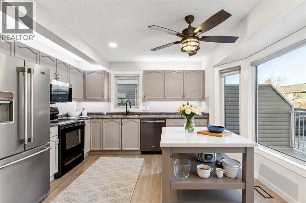 OPEN HOUSE | Saturday April 11, 2-4pm | Welcome to Riverglen Park! This beautifully updated, well-maintained END UNIT is move-in ready and so ideally located you might start bragging to your friends. Youâre just minutes from Quarry Park, shopping, transit, schools, the Bow River pathway system, and the Remington YMCA for easy workouts (or at least good intentions)â¦Extensive updates throughout include newer wide plank flooring, new carpet, modern paint palettes, a fully developed basement, updated appliances, triple pane windows (2023) and moreâso you can skip the renos and go straight to relaxingâ¦.The main level features durable new vinyl plank flooring and a bright living room with a cozy gas fireplaceâperfect for Netflix nights or pretending you read by the fire. This flows into a generous dining area and a kitchen with eating nook, updated countertops, under-cabinet lighting, and sleek black appliances. A handy 2-piece bathroom and in-suite laundry complete this floor (because hauling laundry around is so last decade)â¦.Upstairs, youâll find two exceptionally large bedrooms, each with great closet space, plus a full main bathroomâplenty of room for wardrobes, hobbies, or the shoe collection you âaccidentallyâ keep adding toâ¦.The fully finished basement adds valuable living space with a comfortable rec room featuring a second gas fireplace, a denâideal for a home office, gym, or craft roomâand plenty of storage for everything you donât want to look at every dayâ¦.Outside, enjoy a low-maintenance newer composite deck, perfect for morning coffee, evening BBQs, or just showing off that you have outdoor space. Your assigned parking stall is just steps from the back door, and an additional stall can be rented for only $12 per monthâyes, actual parking you donât have to fight overâ¦.Nature lovers will appreciate the quick access to the Bow River, parks, and pathways, while commuters will love the easy access to major routes and transit. With the Remington YMCA in nearby Qu arry Park, itâs easy to squeeze in a workout, a swim, or a fitness class without crossing half the cityâ¦.Stylishly updated, surprisingly spacious, and seriously convenientâthis end unit checks all the boxes. Book your private viewing today before someone else calls it home. (id:27476)