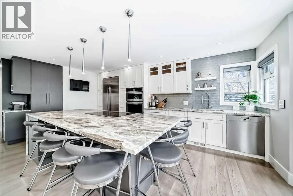 OPEN HOUSE SATURDAY, APR 4, 3-4PM A fully renovated smart home, thoughtfully designed to deliver exceptional comfort, efficiency, and modern living. Seamlessly integrated systems allow for remote control of key features, creating a home that is not only convenient, but also energy-conscious and secure.Extensively upgraded over the years, this residence showcases a high standard of quality and attention to detail. Improvements include spray foam insulation throughout the main level, garage, and basement, new windows, replacement of all poly piping, dual water filtration system, high-efficiency furnace with tankless hot water combination unit, sump pump, and a mini-split heat pump system with air conditioning. Additional features such as central vacuum, updated ductwork, and a durable 30-year roof further enhance the homeâs long-term value.Offering over 2,600 sq ft of developed living space, this 4-bedroom, 3.5-bathroom home is designed to maximize natural light from its desirable southern exposure. The interior blends functionality with refined finishes, including heated bathroom floors, app-controlled comfort systems, and a water softener. A striking linear gas fireplace anchors the living room, adding warmth and modern elegance.The kitchen is both sophisticated and highly functional, featuring a Jenn-Air refrigerator, Monogram induction oven, Braun downdraft ventilation, custom cabinetry, and waterfall dolomite countertops. Flowing effortlessly into the dining and living areas, the layout is clean, bright, and ideal for both everyday living and entertaining.The primary suite offers a private retreat, thoughtfully designed for relaxation, complete with a Bio Bidet toilet in the ensuite. The main bathroom features a jacuzzi tub with inline heater, while two additional bedrooms complete the upper level.The fully developed basement expands the living space with a gym or fourth bedroom, office, recreation room with projector and surround sound wiring, wet bar, full bathroom, and a second laundry area.Exterior upgrades include stucco finished with water-resistant paint, an upgraded garage door, and a Chamberlain MyQ WiFi-enabled opener. Situated on a quiet cul-de-sac, the home is just steps from the Bow River pathways, parks, and Sue Higgins Dog Park, with convenient access to Deerfoot Meadows for shopping and dining. Quick connections to Glenmore and Deerfoot Trail provide easy commuting throughout the city.A rare opportunity to own a meticulously upgraded home that perfectly balances comfort, technology, and lifestyle. Some images have been virtually/digitally staged to illustrate possible furnishings and layout. (id:27476)