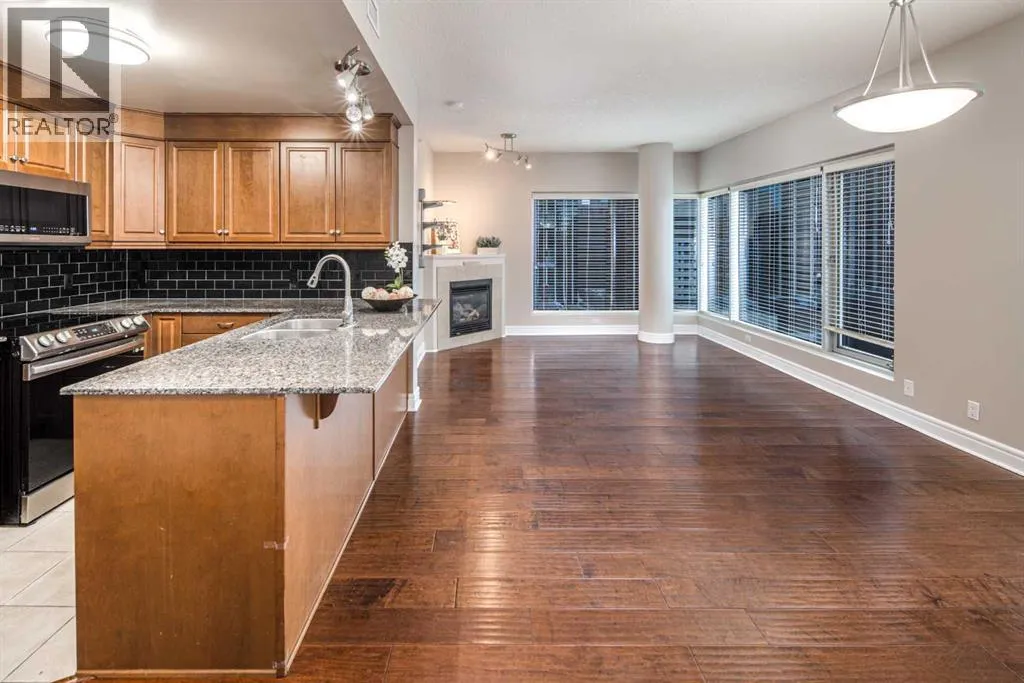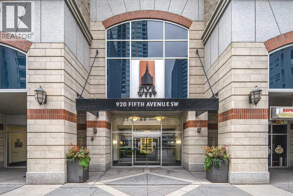 Welcome to the Executive SE Corner Unit in Prestigious Five West â Exceptional Value! Experience downtown living at its finest in this executive, air-conditioned 2-bedroom + den, 2-bathroom corner suite on the 19th floor of the sought-after Five West. This stunning SE-facing unit showcases breathtaking city views and abundant natural light all day long. The gourmet maple kitchen features granite countertops, a breakfast bar, and stainless steel appliances including a refrigerator (2020) and microwave & stove (2023) and opens to a spacious dining area and bright great room with a cozy corner fireplace. Enjoy engineered hardwood floors, floor-to-ceiling south and east-facing windows, and a versatile den off the main entrance, perfect for a home office. The primary bedroom offers a walk-in closet and a luxurious 4-piece ensuite, while the second bedroom is generously sized and features a cheater 3-piece ensuite, ideal for guests or a roommate. Additional highlights include fresh paint throughout, in-suite laundry, 7-day concierge service, a titled heated underground parking stall, and an assigned storage locker. Building amenities include an ownerâs lounge, car wash bay, and indoor visitor parking.Ideally located steps to the LRT, river pathways, and downtown core, this home offers the perfect balance of convenience, comfort, and style. Pride of ownership throughout â an exceptional home for professionals or couples! (id:27476)