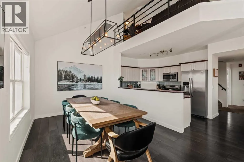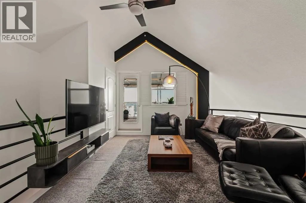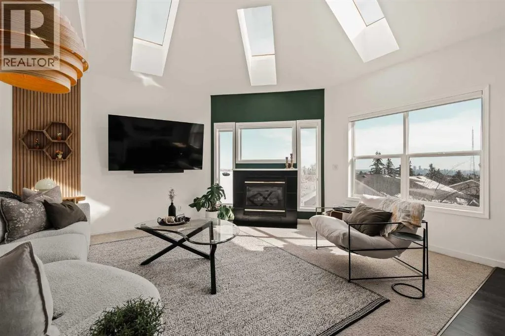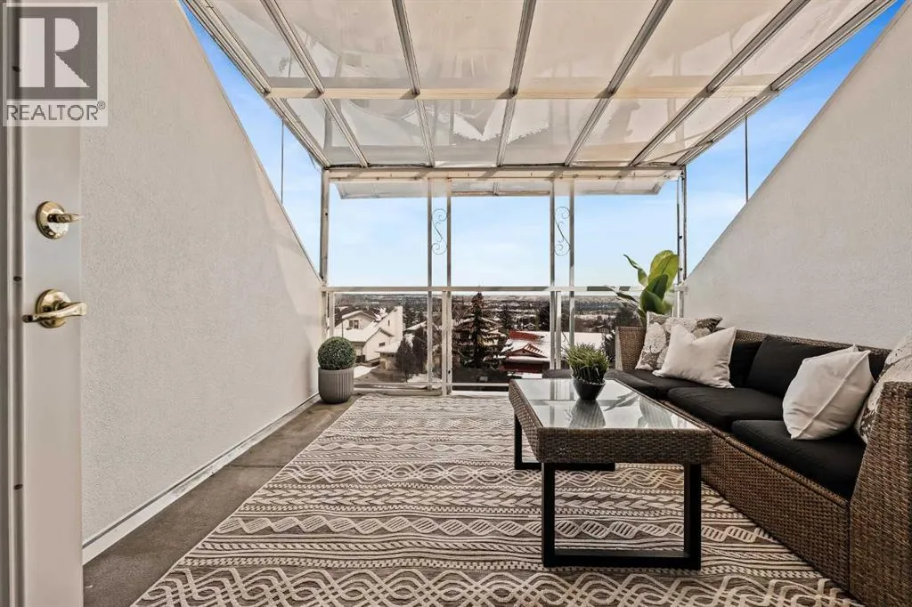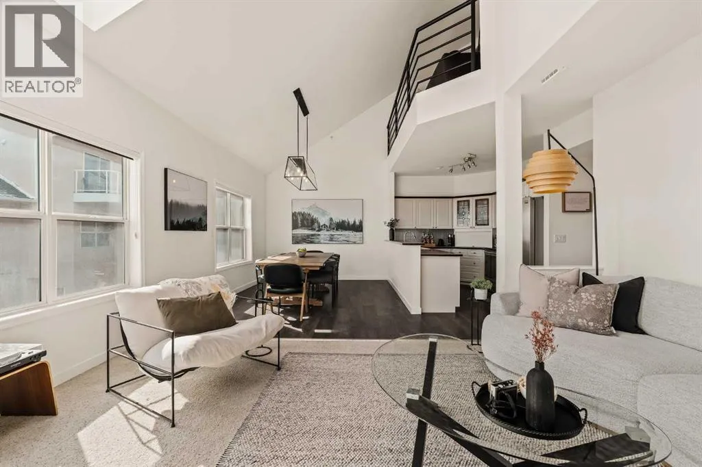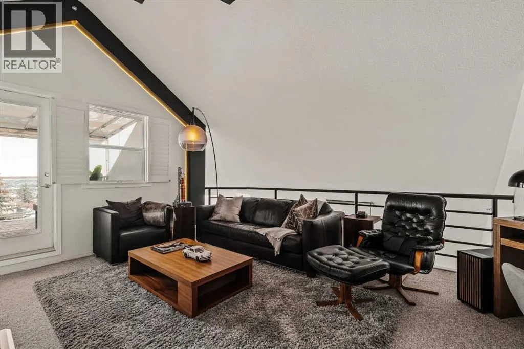 ** OPEN HOUSE CANCELLED Step inside this Patterson Loft and you can immediately feel the difference. Vaulted ceilings and skylights pull natural light through the entire space, creating an elevated atmosphere thatâs hard to replicate. The open concept layout flows effortlessly, anchored by a cozy gas fireplace that adds warmth and intention to the living space. The large dining room allows for a huge table, which makes hosting an easy option for the holidays or game nights. This end-unit penthouse delivers a rare combination of space, light, and uninterrupted city views that genuinely stop you mid-sentence. From sunrise to the evening skyline, this home frames Calgary like a living piece of artâwhether you're in the main living area or unwinding in the sunroom, the view is always the main event. With 2 bedrooms, 2 full bathrooms and in suite laundry thereâs nothing this condo doesnât offer! Then thereâs the feature that really sets this home apart:A loft space overlooking the main floorâperfect as a home office, creative studio, guest zone, or elevated lounge. It adds that architectural edge and character that can be difficult to find. ?There are two separate entrances one on each level which is an extremely practical solution for moving furniture or hosting guests who canât do stairs! Off of your loft is a large storage/utility room, and the enclosed sunroom extends your living space (professionally approved and the ONLY one in the building). Morning coffee, evening wine, or even watching fireworks over the city⦠itâs all better from here. Plus, you have a BBQ gas hookup, making it as functional as it is inviting. With 2 Titled underground parking spots, Visitor parking and the ability to rent a spot outside, it is easy to have guests. And location? Patterson is one of Calgaryâs best-kept secretsâquiet, elevated, and just minutes to downtown via Old Banff Coach Road, giving you the perfect balance of convenience and escape. (id:27476)