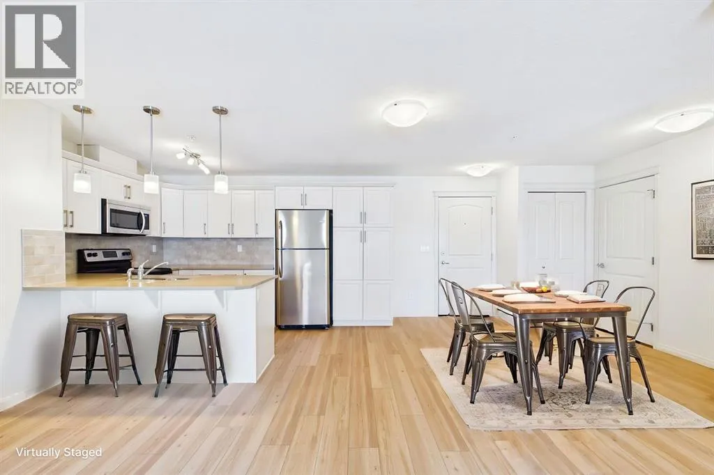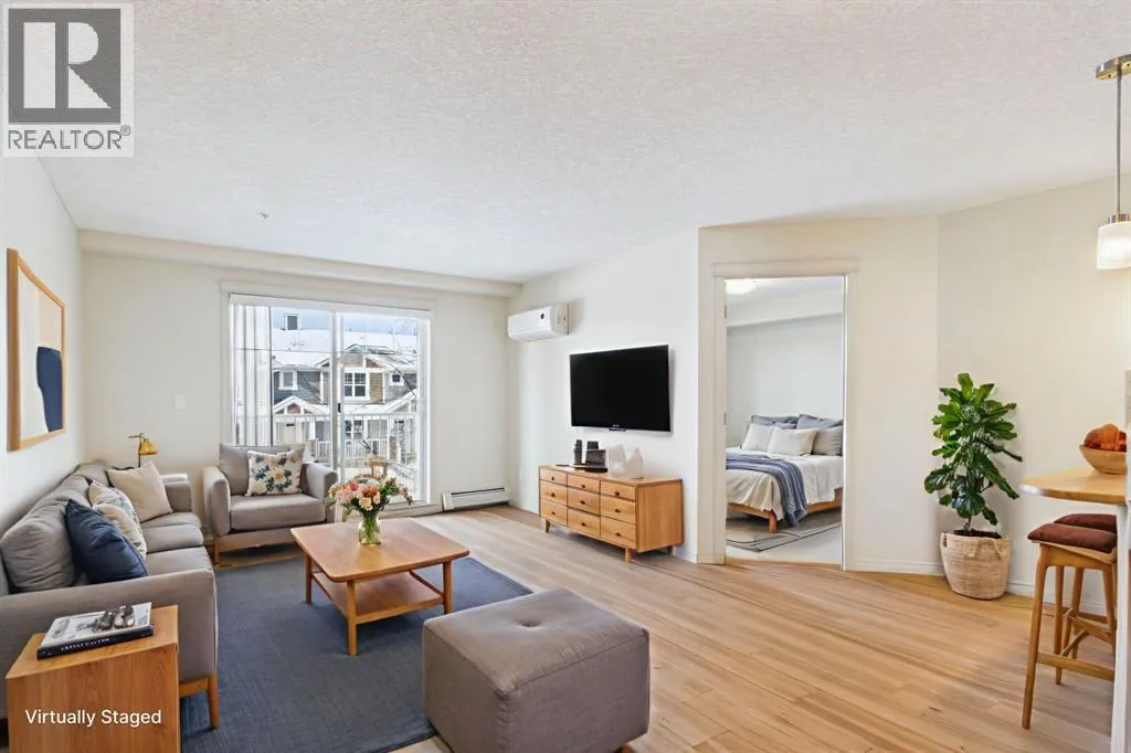Discover the perfect blend of style and convenience in this beautifully updated 2-bedroom, 2-bathroom condo. This bright and airy unit feels brand new, boasting fresh paint and stunning, newly installed luxury vinyl plank flooring that flows seamlessly throughout the open-concept living space and air conditioning. The thoughtful layout provides maximum privacy with bedrooms situated on opposite sides of the main living area, making it ideal for roommates, guests, or a dedicated home office. Situated in the heart of Cranston, you are just steps away from grocery stores, local dining, and the extensive pathway system of Fish Creek Park, with easy access to the South Health Campus and Deerfoot Trail. This gorgeous move-in-ready home offers a maintenance-free lifestyle in one of Southeast Calgaryâs premier master-planned communities. (id:27476)