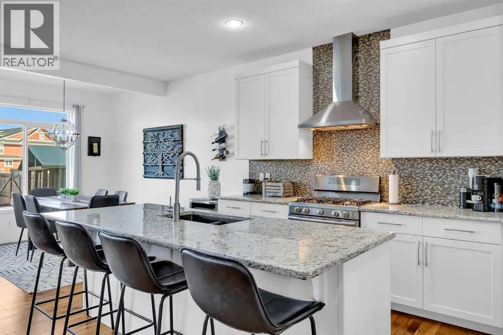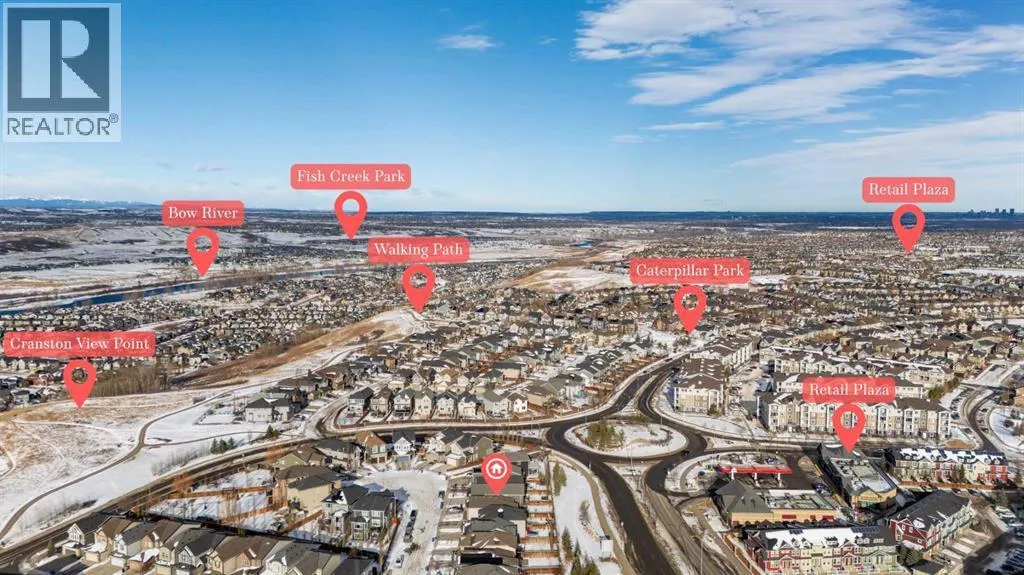 Cul-de-sac location | South-facing front | Steps to greenspace | Quick Access to AmenitiesWelcome to this well-maintained, move-in ready detached home in the sought-after community of Cranston SE Calgary. Offering over 1,860 sq ft above grade plus a fully finished basement, this 4-bedroom, 3.5-bathroom home delivers a spacious and versatile layout, ideally positioned with no direct rear neighbors and convenient access to nearby shopping, amenities, and major roadwaysâperfect for families and commuters alike.The dining area leads to a sunny backyard with open sightlines, creating a great space for outdoor enjoyment. With no direct rear neighbors, the yard offers a sense of openness and added privacy.Upstairs, you will find generously sized bedrooms and functional family space, while the fully finished basement includes a fourth bedroom, full bathroom, and a large recreation area ideal for guests, a home office, or additional living space.Additional features include a double attached garage, proximity to schools, parks, pathways, and quick access to major routes for an easy commute. Located in one of SE Calgaryâs most desirable communities, Cranston offers strong amenities, established infrastructure, and excellent long-term value.This is a great opportunity to own a fully finished home in a well-connected and family-friendly neighborhood. Book your private showing today. (id:27476)