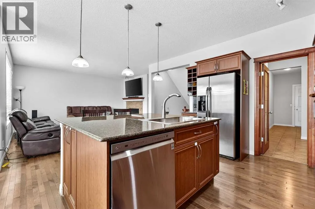 Welcome to this large two-storey family home in the sought-after community of Silverado, offering a perfect blend of comfort, space, and functionality.Step inside to a bright and inviting main floor featuring rich hardwood flooring, large windows, and a thoughtful layout designed for everyday living and entertaining. The spacious living room is anchored by a stunning double-sided fireplace that flows seamlessly into a versatile bonus roomâideal as a family lounge, playroom, or home office. The chef-inspired kitchen boasts granite countertops, a large central island, electric cooktop, built-in oven, and a convenient walk-through pantry, all complemented by ample cabinetry and storage.Upstairs, youâll find three generously sized bedrooms, including a well-appointed primary retreat, an additional bonus room and full bathroom plus dedicated office spaceâperfect for growing families or those working from home.The fully finished basement expands your living space with high ceilings, a cozy fireplace, a large bedroom with a connecting bathroom, laundry room with sink and abundant storage options.Enjoy the sunny south-facing, fully fenced backyard, complete with a deck and mature trees. Freshly painted and move-in ready, this home also features a double attached garage and was designed to meet the needs of modern family living for those looking to be in the incredible community of Silverado- with multiple schools nearby and great access to major shopping and traffic routes. (id:27476)