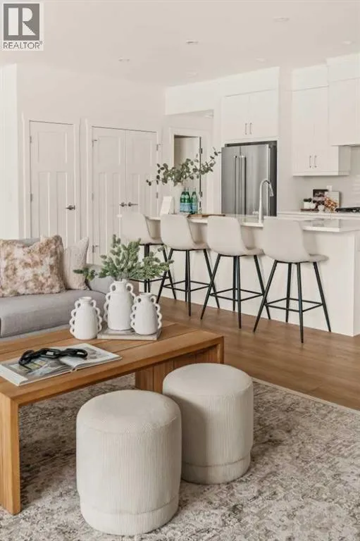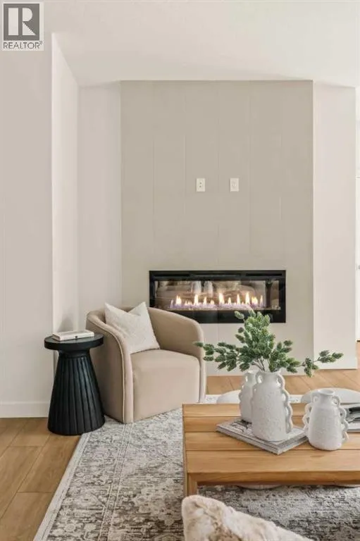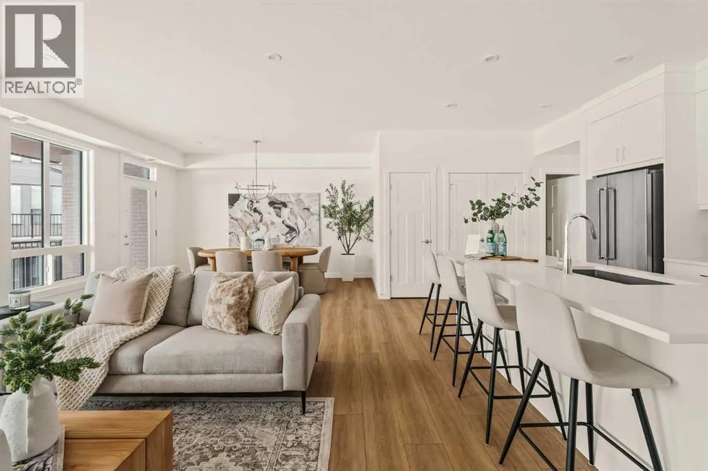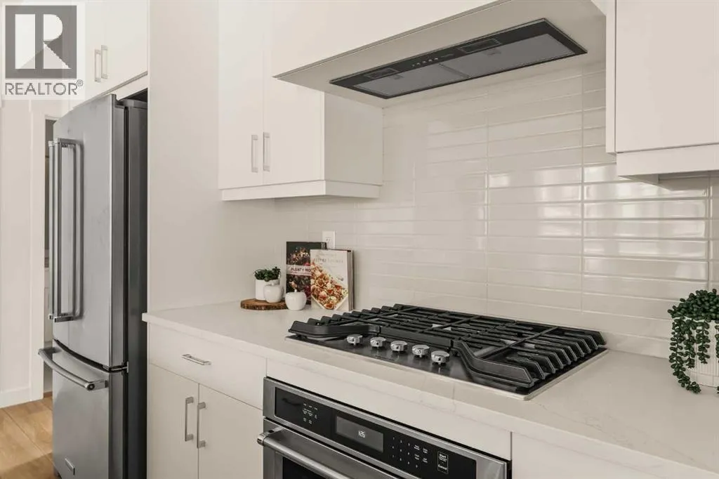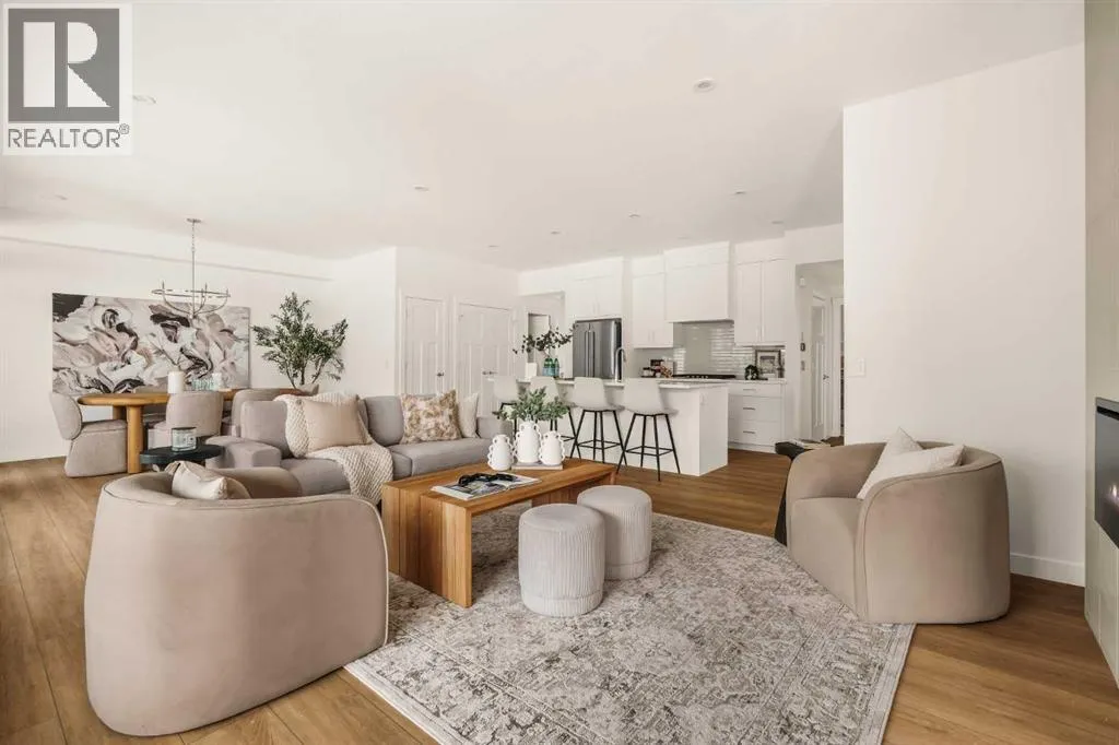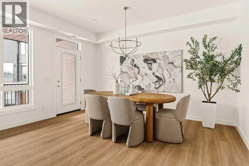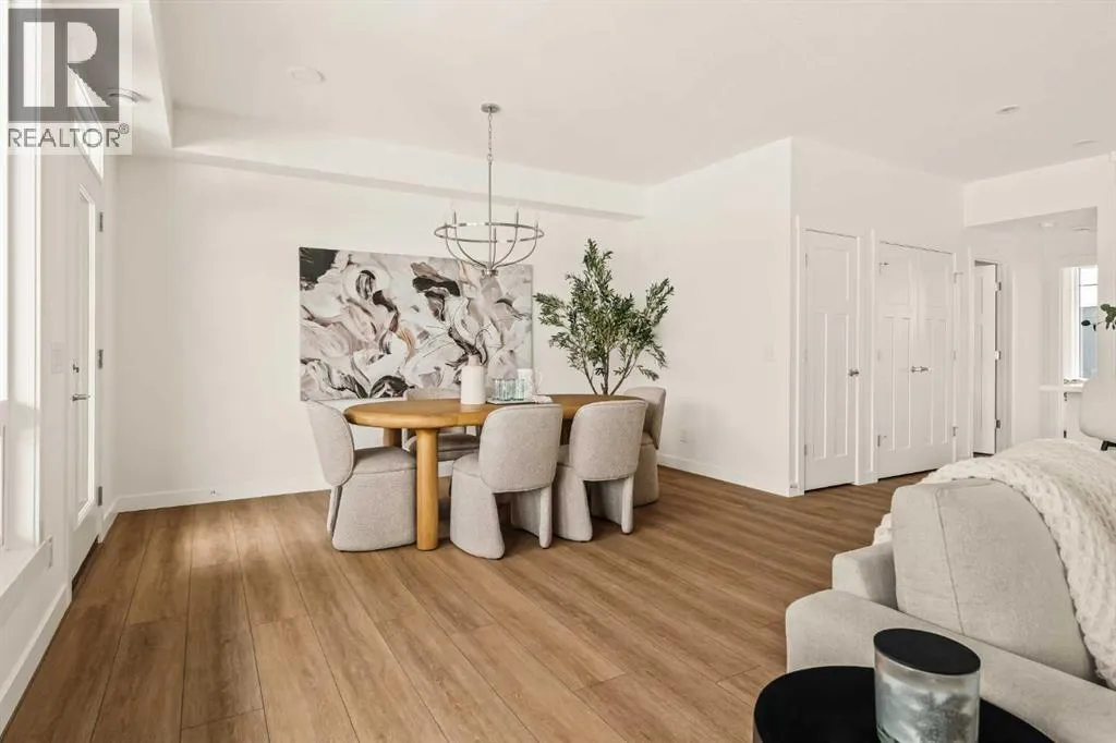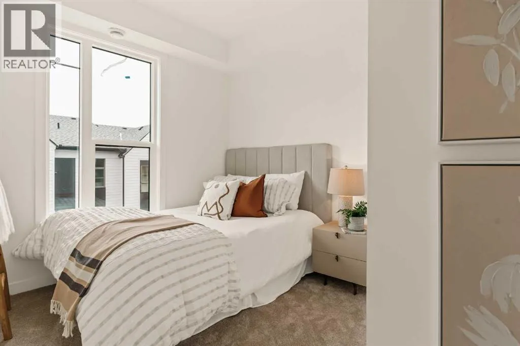 Offering bungalow-style living at its finest - the brand new Hyde at Crown Park presents a rare and refined take on single-level living. This is an exceptional opportunity to own one of the final brand-new bungalow-style townhomes in this highly sought-after inner-city community. Offering nearly 1,600 sq. ft. on a single level, this thoughtfully designed home features 3 bedrooms, 2 bathrooms, an oversized private double attached garage, and exceptional storage throughout - perfectly tailored for those looking to downsize without sacrificing the space, comfort, and functionality of a larger home. Set in the heart of Crown Park, this residence is ideally positioned with a sun-filled southwest-facing balcony overlooking the central park, just minutes from downtown Calgary. Itâs the perfect balance of lock-and-leave convenience and vibrant inner-city living. The main living space is designed for both everyday ease and effortless entertaining. A timeless white kitchen anchors the home, seamlessly connecting to the dining and living areas, while an expansive wall of southwest-facing windows floods the space with natural light. Elevated finishes include quartz countertops and a premium built-in appliance package featuring an integrated hood fan, a gas cooktop, and a built-in oven. The spacious living room centers around a striking floor-to-ceiling tiled fireplace and offers ample room for gathering, while the generous dining area comfortably accommodates a full-size table for hosting family and friends. Resilient, warm-toned vinyl plank flooring flows throughout the main living area, making it ideal for children and pets. Thoughtfully designed for privacy, the primary retreat is tucked away from the secondary bedrooms, separated by the laundry area. This serene space features a large walk-in closet and a spa-inspired ensuite with dual vanities and a walk-in shower with 10mm glass. Two additional bedrooms provide flexibility for guests, a home office, or media room, support ed by a well-appointed full bathroom. A dedicated laundry room with added cabinetry and folding space enhances everyday functionality. Outdoor living is equally impressive with an ~26â x 8â covered southwest-facing balcony, complete with a gas line, hose bib, and A/C rough-in - designed to maximize sunlight and usability throughout the seasons. The lower level offers access to the oversized double attached garage along with two substantial storage areas - a rare and valuable feature in bungalow-style living. Located within one of Calgaryâs most exciting new inner-city communities, this home offers a true low-maintenance, single-level lifestyle backed by full builder warranty and Alberta New Home Warranty. Opportunities like this are exceptionally rare - single-level townhomes with private double garages, in a location like this, simply donât come available often. (id:27476)