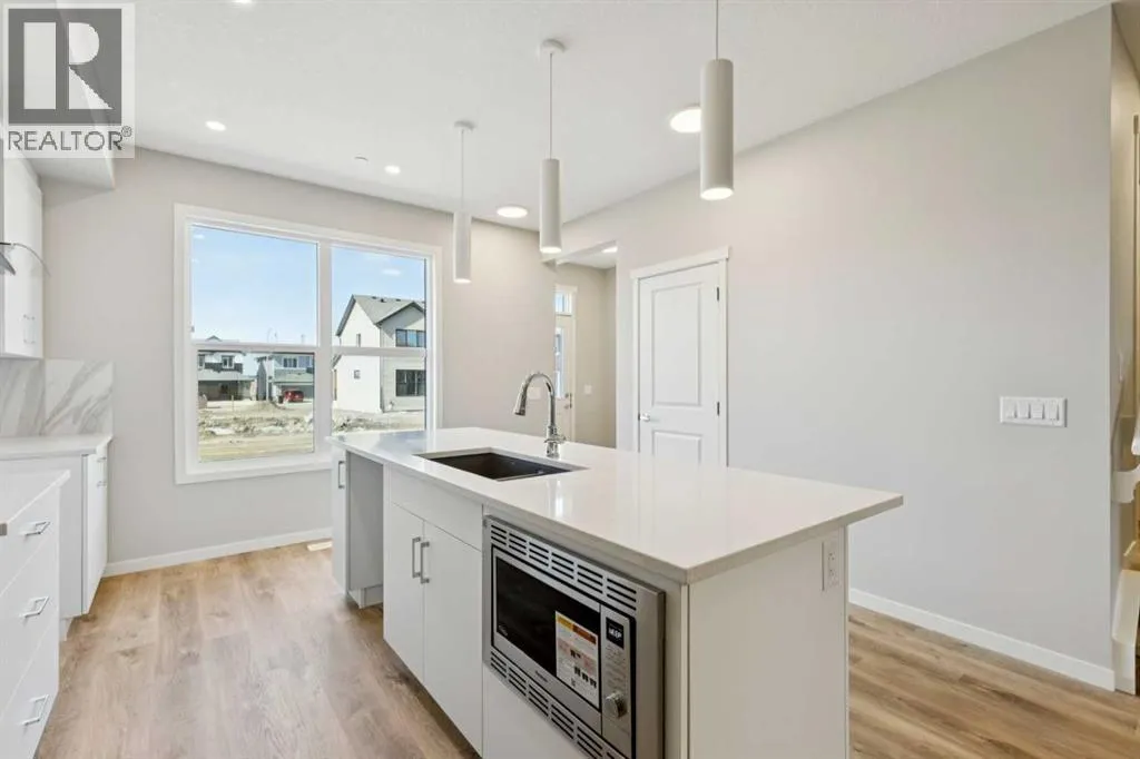 Welcome to The Heath at 493 Hotchkiss Drive SE, where timeless design meets modern comfort in one of Calgaryâs fastest-growing communities. This beautifully crafted, move-in-ready home offers the perfect blend of style and functionality for everyday living and effortless entertaining.A bright front foyer with a window welcomes you inside, filling the space with natural light. The main floor features a versatile flex room with a swing doorâideal for a home office, study, or private retreat. The thoughtfully designed rear kitchen creates a seamless flow for hosting, complete with quartz countertops, stainless steel appliances, a chimney-style hood fan, built-in microwave, and pot lights for a polished finish.Upstairs, enjoy the convenience of a dedicated laundry room and well-planned living spaces tailored to modern family life. Elegant staircase railings add a refined touch throughout the home.The basement is full of potential, offering 9-foot foundation walls, a 3-piece rough-in, wet bar rough-in, and a separate side entranceâproviding excellent opportunities for future development. Additional highlights include an exterior BBQ gas line, perfect for outdoor entertaining.Located in the vibrant community of Hotchkiss, youâll appreciate quick access to Deerfoot Trail, Stoney Trail, and Macleod Trail, along with close proximity to shopping, dining, and everyday amenities. Enjoy over 51 acres of parks, pathways, and wetlands, offering year-round outdoor recreation.This is your opportunity to own a brand-new home in a community that combines natural beauty with urban convenience.First-time buyers may be eligible for a GST rebateâcontact your Realtor® or sales team for more information. (id:27476)