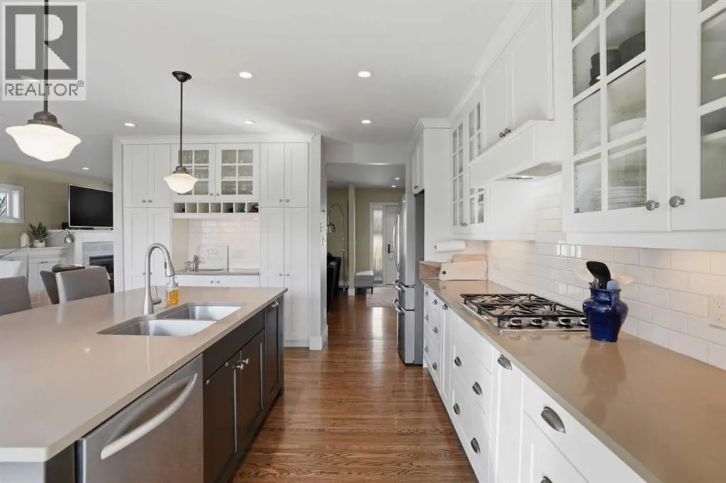 WOW! This one-of-a-kind raised bungalow is ideally situated on a quiet cul-de-sac in desirable Richmond, inner-city Calgary, on a generous 50 x 110 ft lot with south-facing backyard and quadruple heated garage! Offering over 2,400 sq. ft. of fully developed living space, this luxurious home features 2 bedrooms, 2 bathrooms, and a stylish basement bachelor/studio (illegal) suite with separate entry! Extensively renovated down to the studs (2011â2014), this residence blends modern efficiency with upscale finishings, including: oversized Low-E argon vinyl windows and doors, concrete board siding (with R24 upgraded exterior wall insulation), high efficiency furnace, central air conditioning, instant water on demand system, 200AMP electrical service, 30-year shingles, R60 attic insulation, central vacuum system, natural gas fireplace, quartz countertops throughout, top-of-the-line stainless steel appliances, steam shower, refinished oak hardwood floors, an in-ceiling speaker system, dimmable lighting, Hunter Douglas window treatment package, and thoughtful custom storage solutions throughout! Outside, enjoy a private south-facing backyard with a two-tier cedar deck, two natural gas hookups, and an exposed aggregate patio with hot tub. Completing the property is an exceptional natural gas heated 4-car garage with high ceilings (10â) and door (8â), extensive storage (including attic storage), on a reinforced concrete base â ideal for car enthusiasts or hobbyists. Minutes to major roadways, and all amenities that inner-city Calgary has to offer - walking distance to trendy Marda Loop (10 minutes) and the downtown core (30 minutes)! Donât miss out on this rare opportunity. Call today to book your showing. (id:27476)