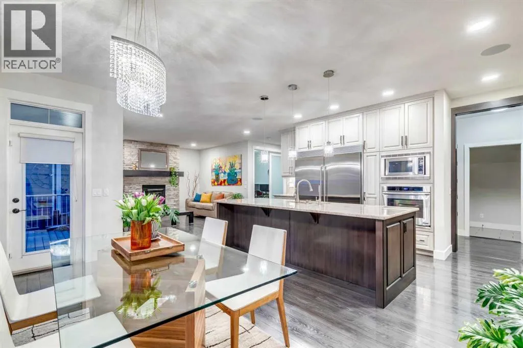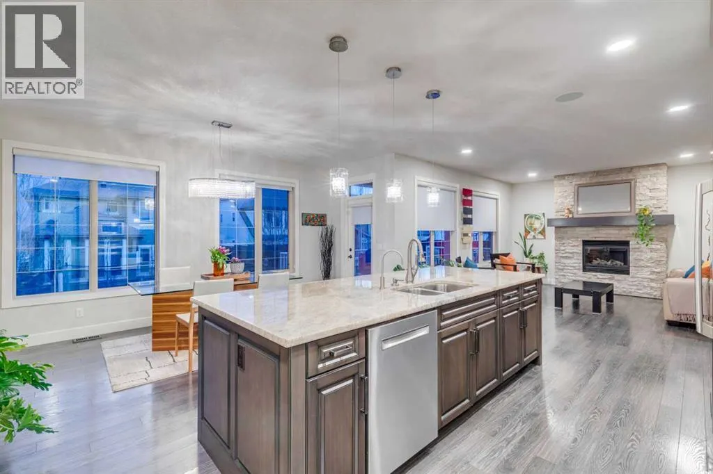STEPS TO MAIN BEACH IN MAHOGANY ~ Easy semi private lake access...Welcome to this exceptional triple garage home offering space, function, and standout features at every turn. A charming front porch leads into a spacious entryway, setting the tone for the thoughtful layout. Just off the entrance, a private office with French doors provides the perfect work-from-home setup. The main living area is warm and inviting, anchored by a large gas fireplace and seamlessly connected to a beautifully designed kitchen featuring granite countertops, modern appliances, extensive cabinetry, and a massive island ideal for entertaining. The walk-through pantry offers incredible storage and convenient access to the finished triple garage and a nearby half bath. The bright dining area is framed by large windows and opens onto a multi-level deck, designed for both relaxation and entertaining, complete with a pergola-covered hot tub area and additional storage below. Upstairs, a generous bonus room creates flexible living space, while double doors lead to a spacious primary retreat with a luxurious ensuite boasting a soaking tub, walk-in shower, and direct access to the walk-in closet. The upper level also includes a well-appointed laundry room with built-in storage and counters, along with three additional bedrooms and a full bathroom, all offering ample space, natural light, and large closets. The fully finished basement adds over 1,100 sq ft of living space, including two more bedrooms with walk-in closets, a full bathroom, and a large open area perfect for recreation or guests. Additional features include air conditioning, laminate flooring, two furnaces, a water softener, and built-in vacuum. Located in the vibrant lake community of Mahogany, this home benefits from private beach access, excellent nearby amenities, quick access to the Mahogany Beach Club, and a street that leads directly toward the lake. Residents enjoy year-round activities, beautiful pathways, and one of Calgaryâ s most sought-after community atmospheres. (id:27476)